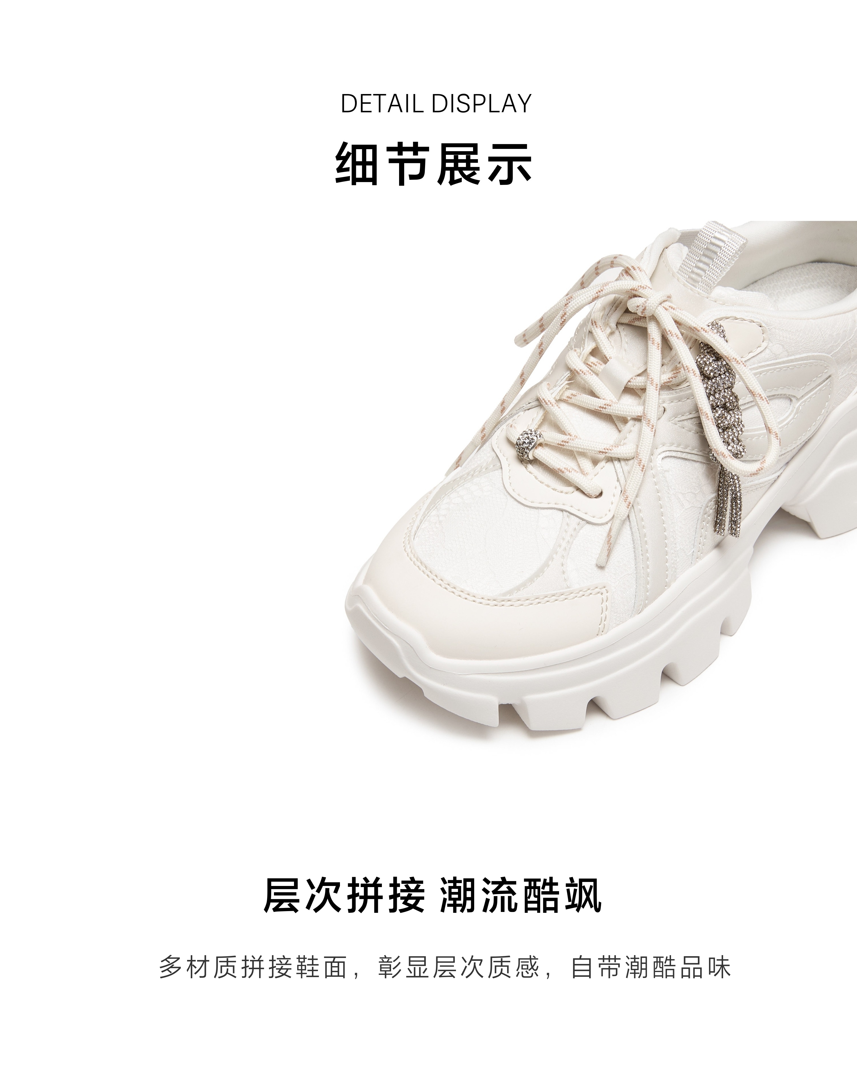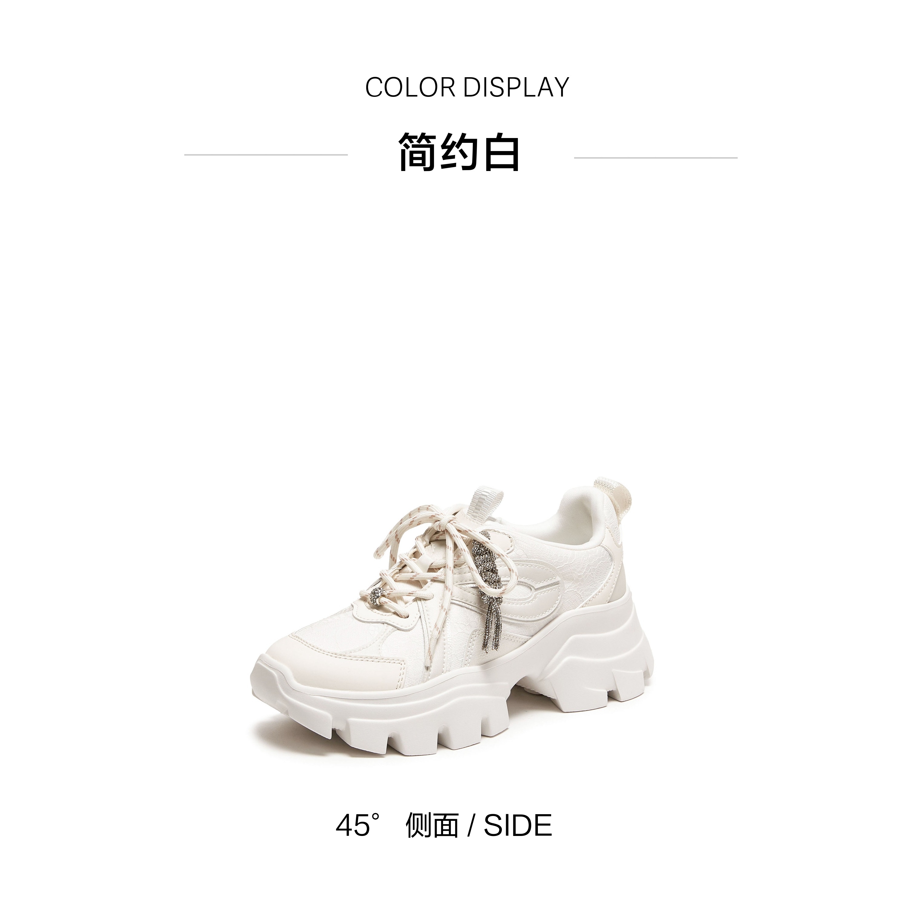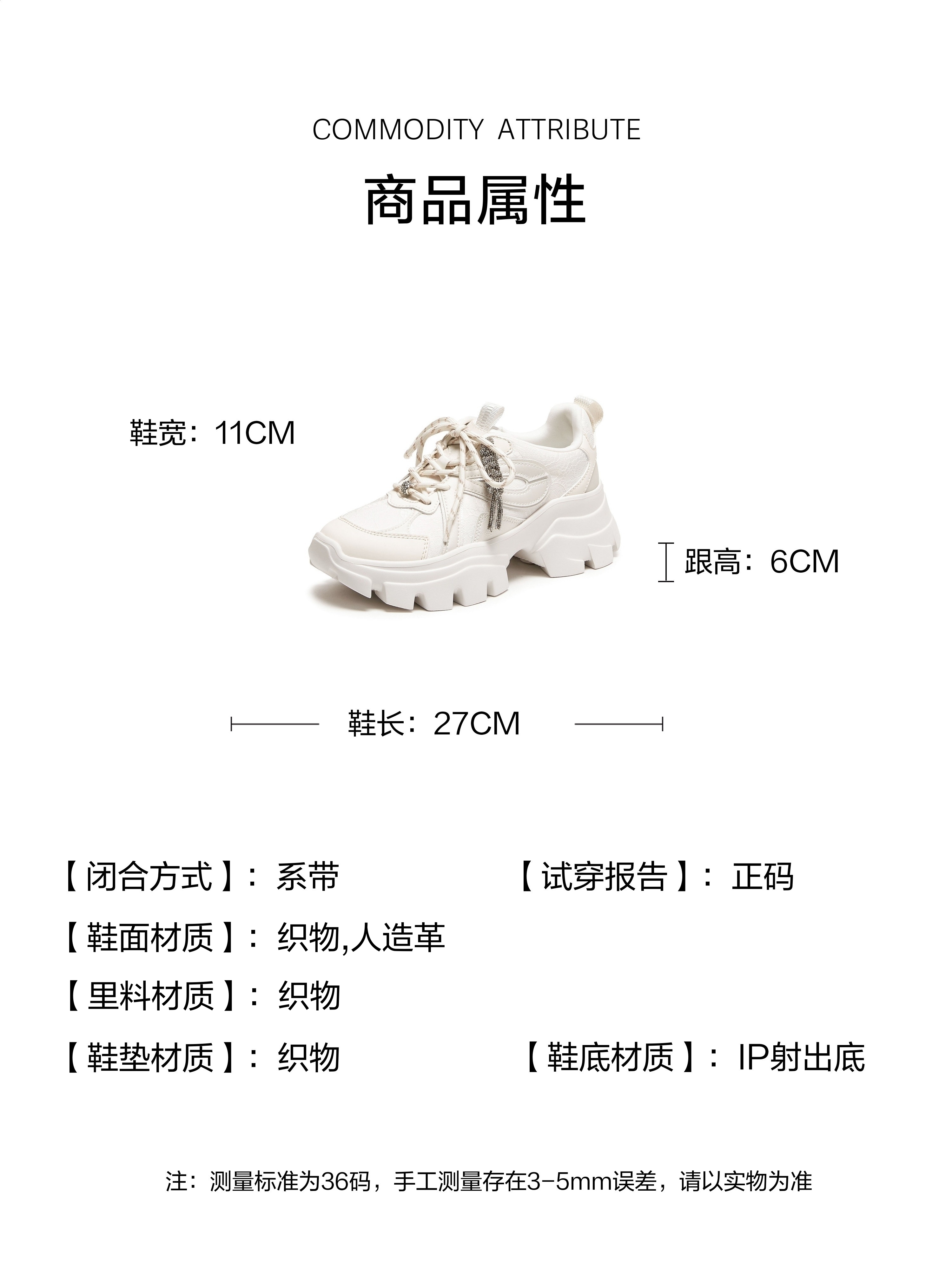 | 风格:时尚潮流 | 跟高数值:6CM | 色系:白色 | 适用人群:成人 | 配跟:无 |