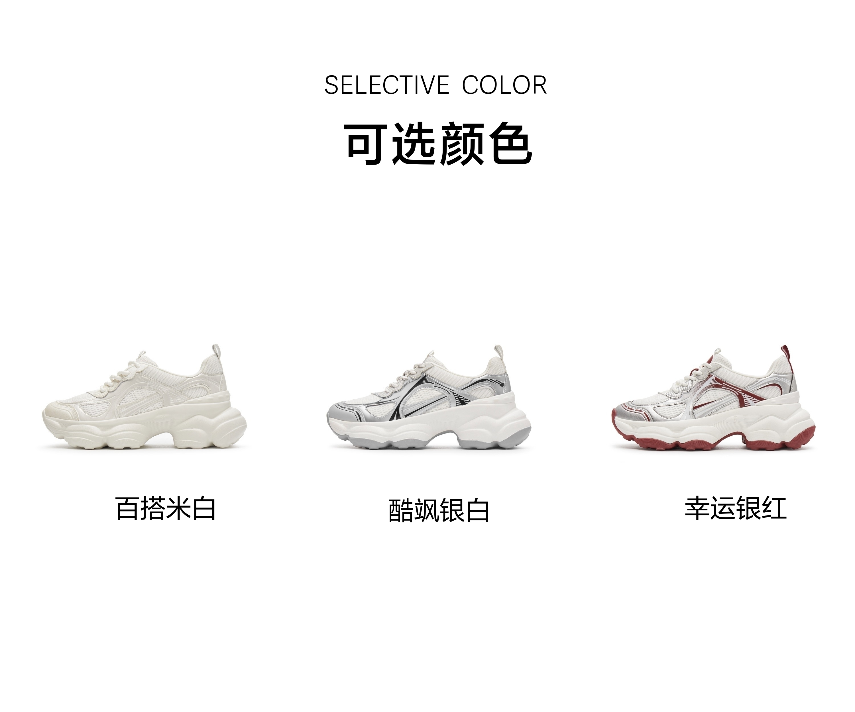 | 上市时间:2025年春季 | 生产/经销/进口厂家:丽荣鞋业(深圳)有限公司 | 鞋类流行款式:老爹鞋 | 鞋头款式:圆头 | 执行标准:舒适运动鞋Q/LR002-2023 |