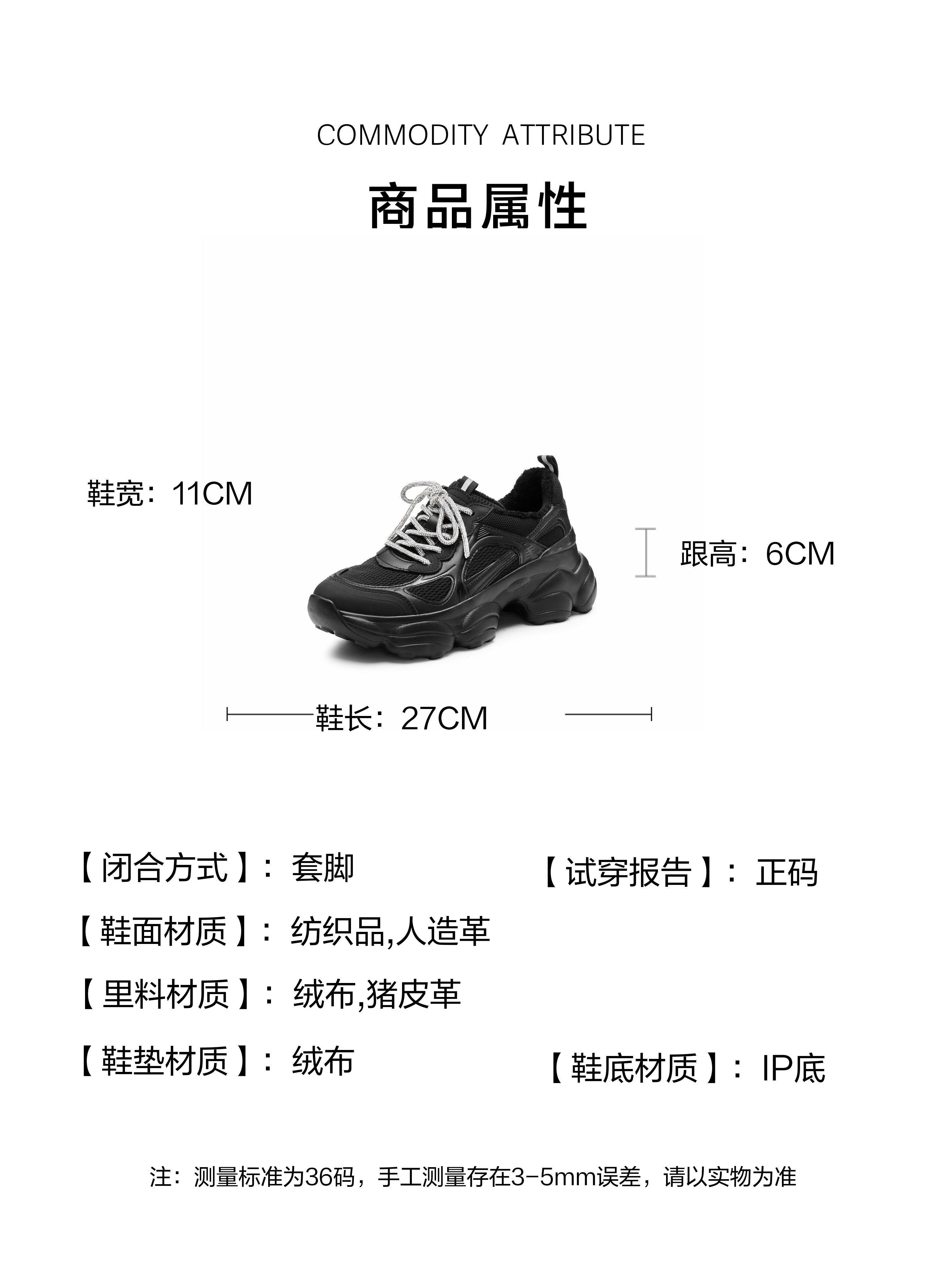 | 鞋垫材质:绒布 | 前掌高度:4.5CM | 防水台高度:4.5CM | 鞋类流行款式:老爹鞋 |