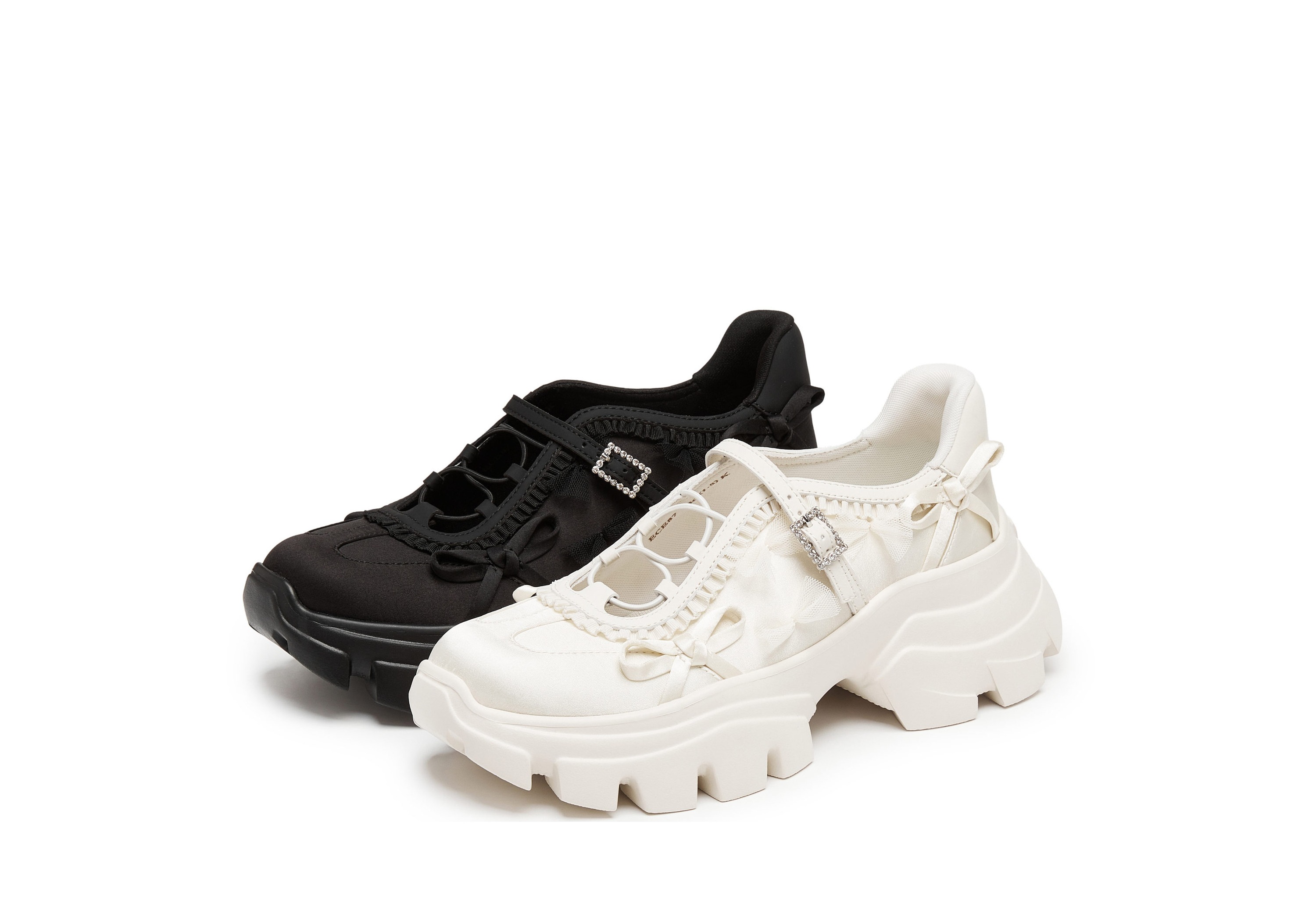| 鞋跟形状:厚底 | 鞋面材质:人造革织物 | 流行元素:蝴蝶结水钻 | 参考鞋长(女):28.5CM | 参考鞋宽(女):11.5CM |
