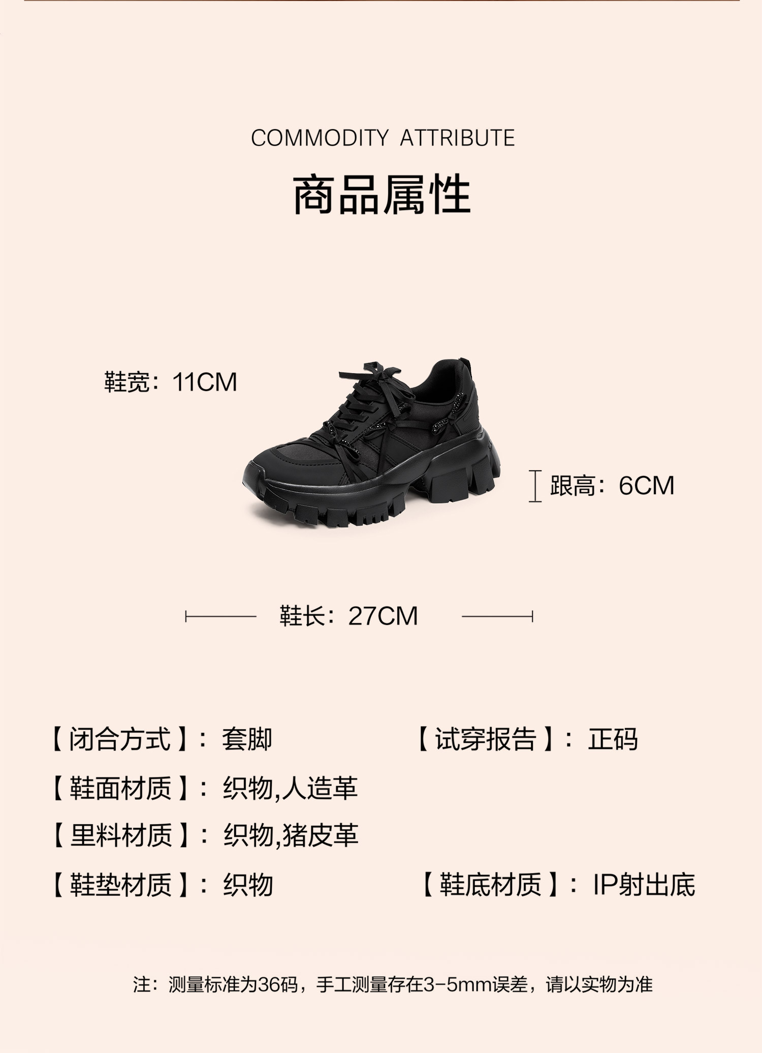 | 鞋垫材质:织物 | 皮质特征:织物/人造革 | 鞋类流行款式:老爹鞋 |