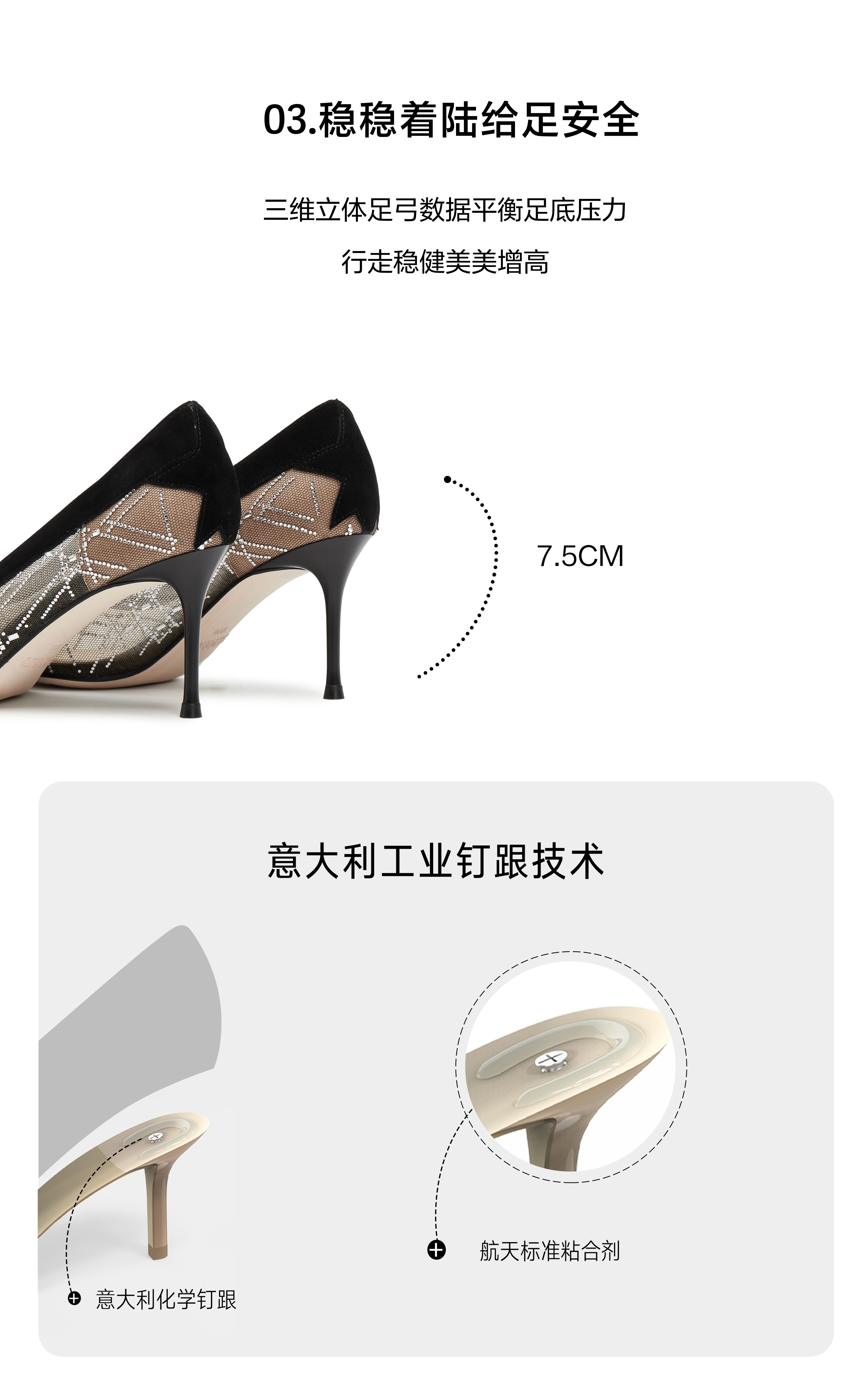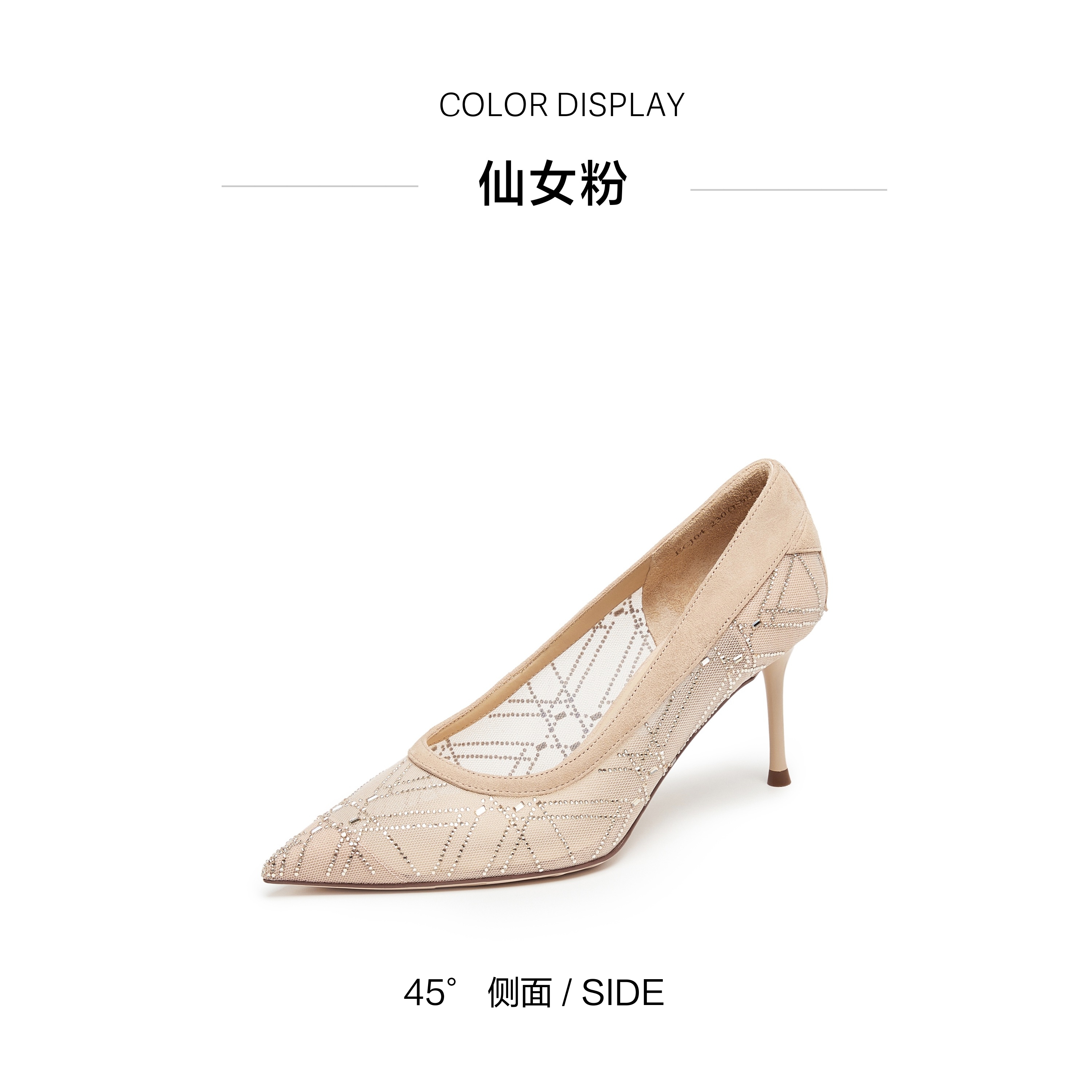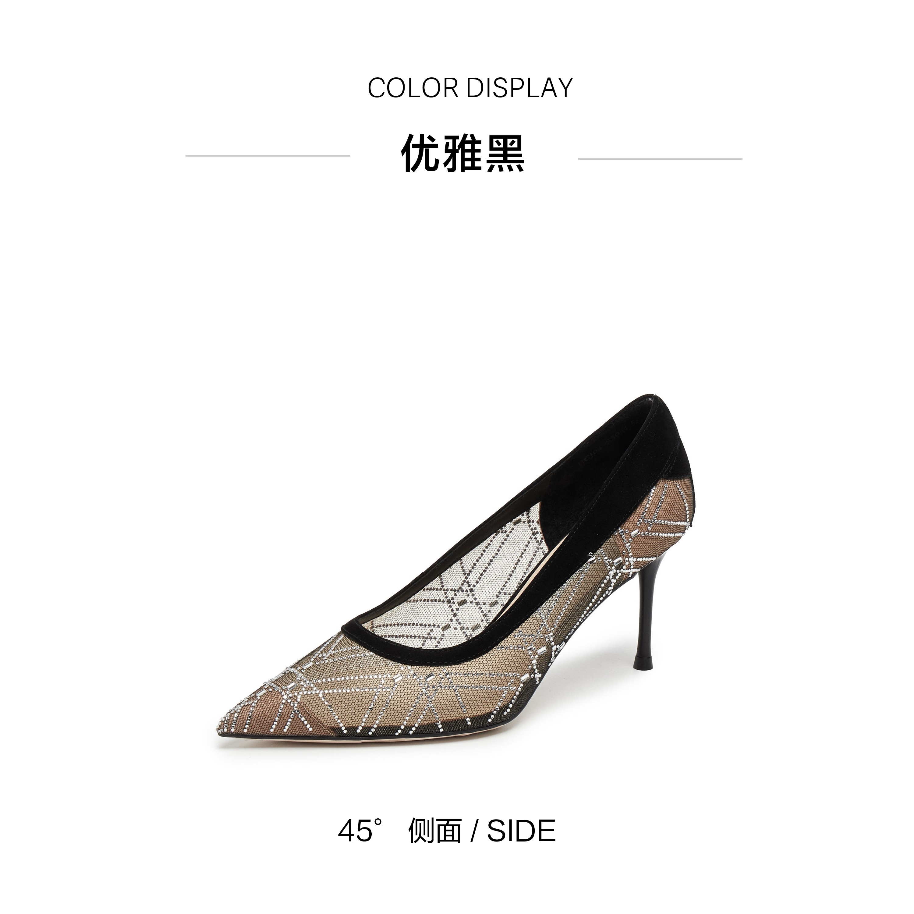 | 鞋头款式:尖头 | 鞋底材质:橡胶底 | 鞋面图案:纯色 | 内增高:无 | 鞋跟形状:细跟 |