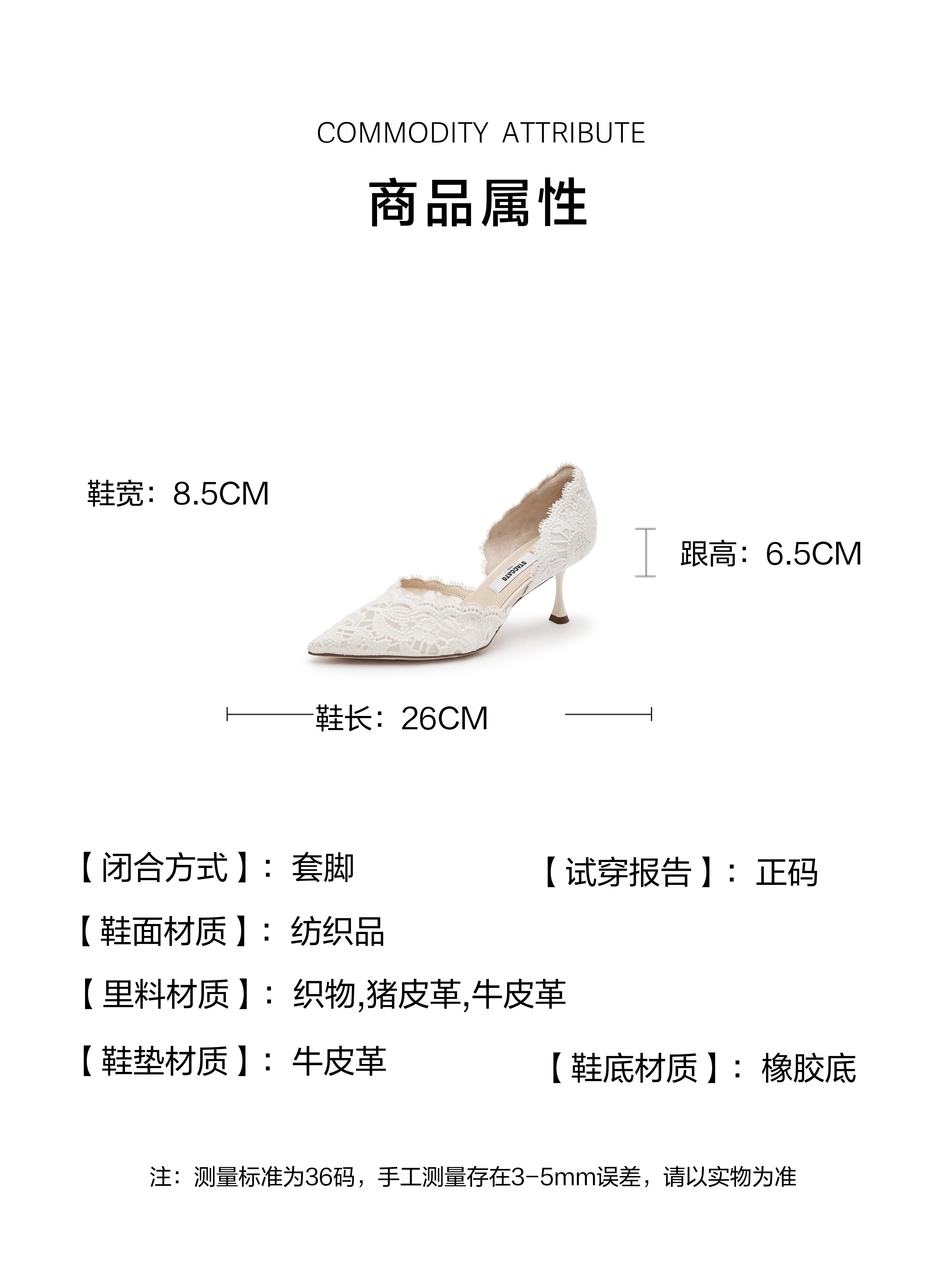 | 流行元素:蕾丝 | 参考鞋长(女):26CM | 参考鞋宽(女):8.5CM | 闭合方式:套脚 | 风格:OL通勤 |