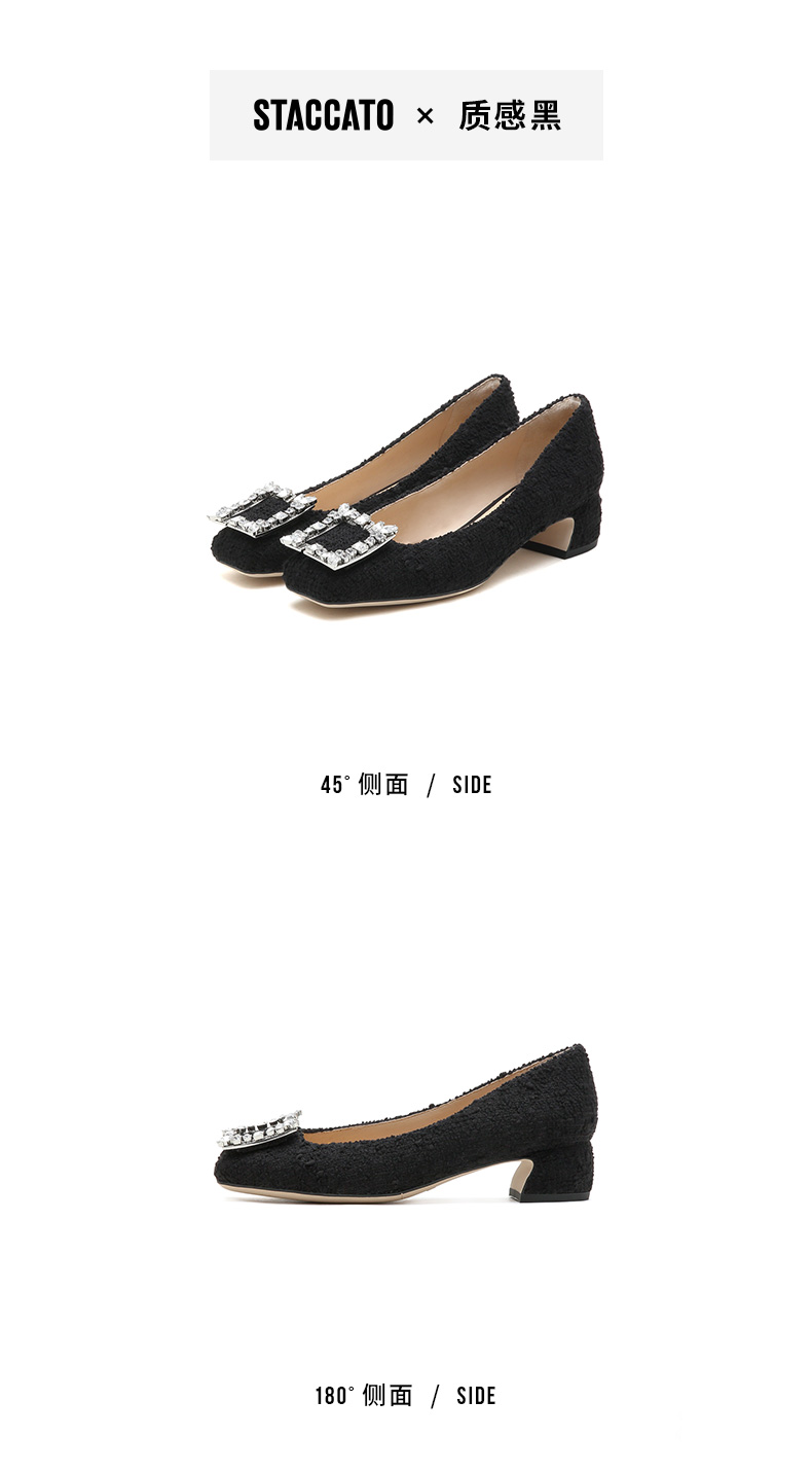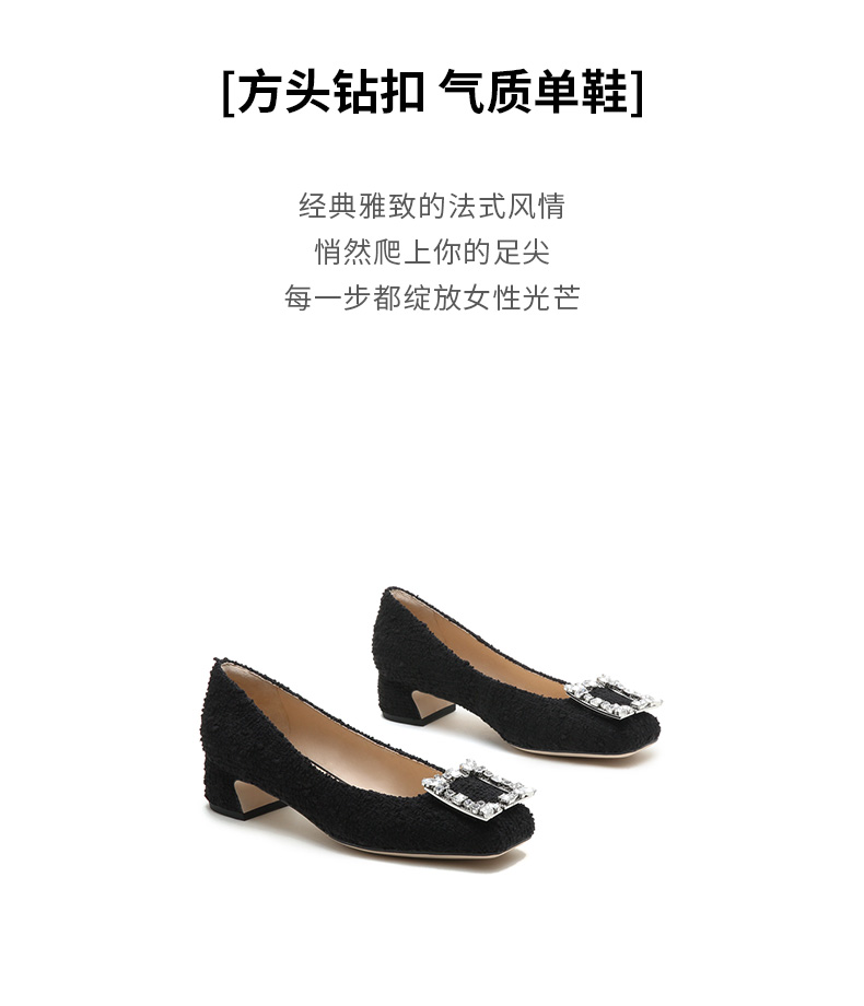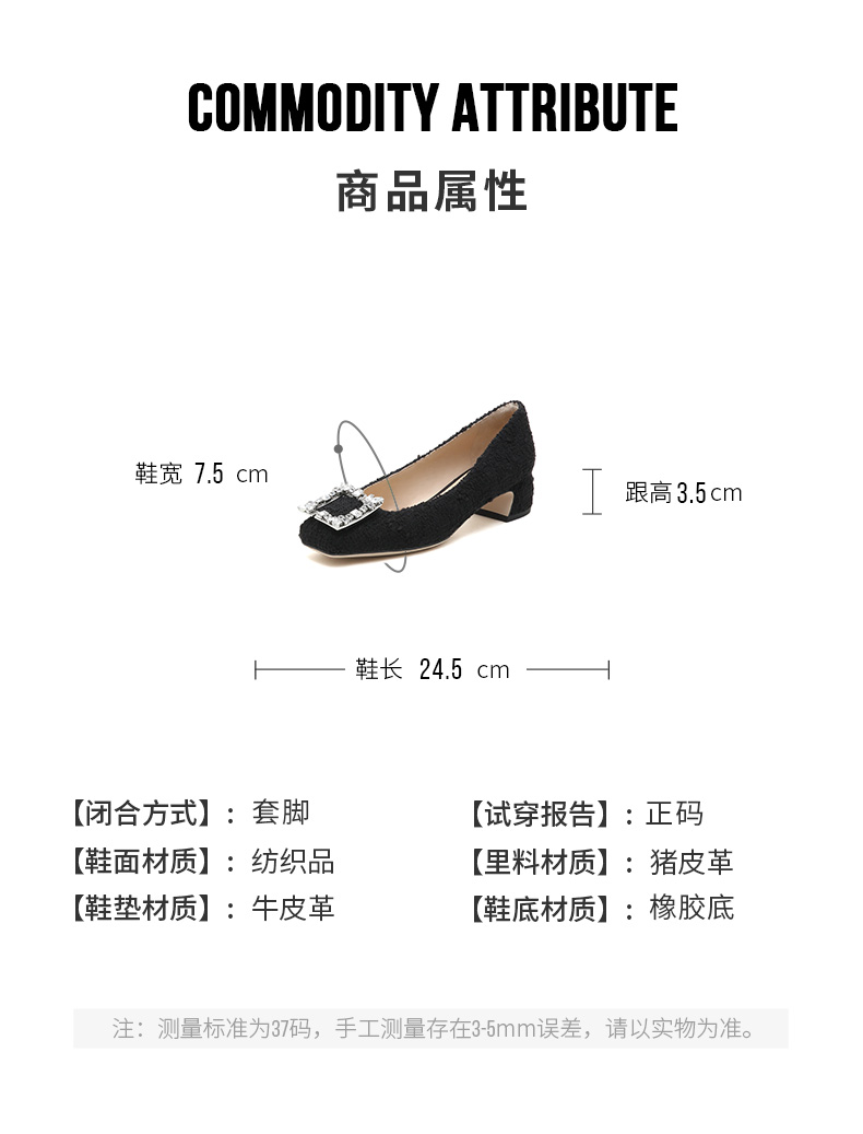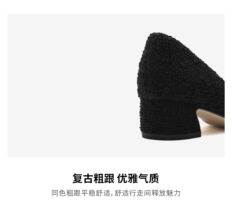 | 鞋头款式:方头 | 鞋底材质:橡胶底 | 鞋面图案:纯色 | 内增高:无 | 鞋跟形状:粗跟 |
