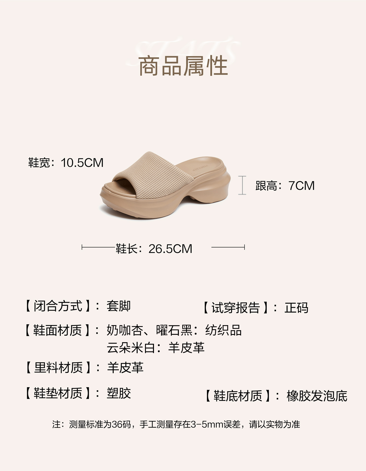 | 皮质特征:织物 | 防水台高度:4CM | 鞋类流行款式:凉拖鞋 |
