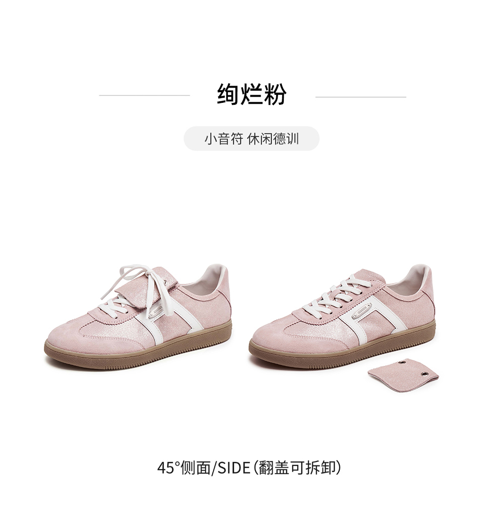 | 鞋跟形状:平跟 | 鞋面材质:羊皮革牛剖层革 | 流行元素:撞色 | 参考鞋长(女):25CM | 参考鞋宽(女):9CM |