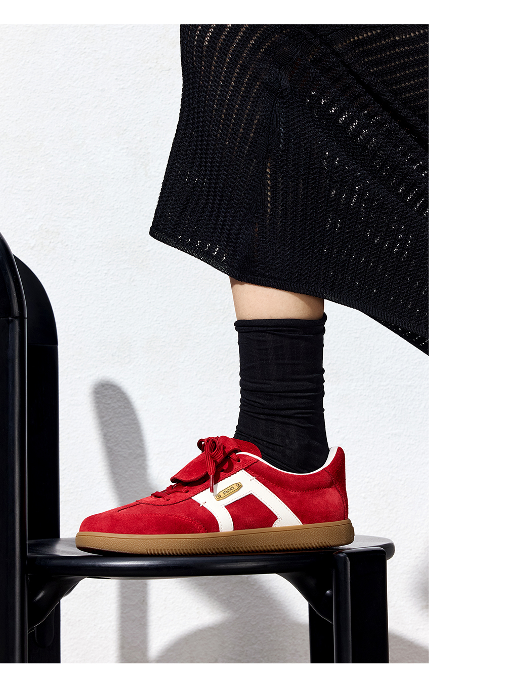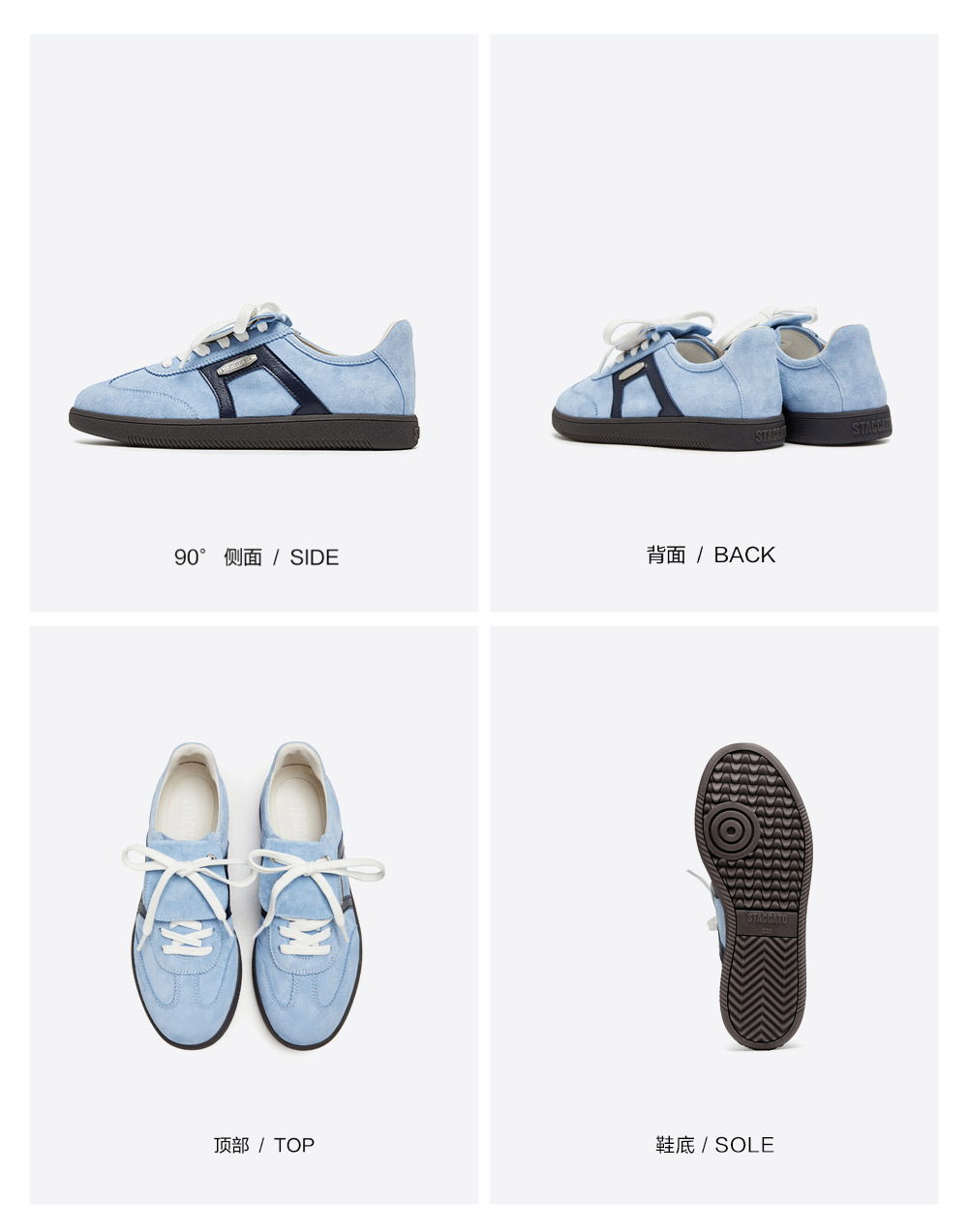 | 鞋跟形状:平跟 | 鞋面材质:羊皮革牛剖层革 | 流行元素:撞色 | 参考鞋长(女):25CM | 参考鞋宽(女):9CM |
