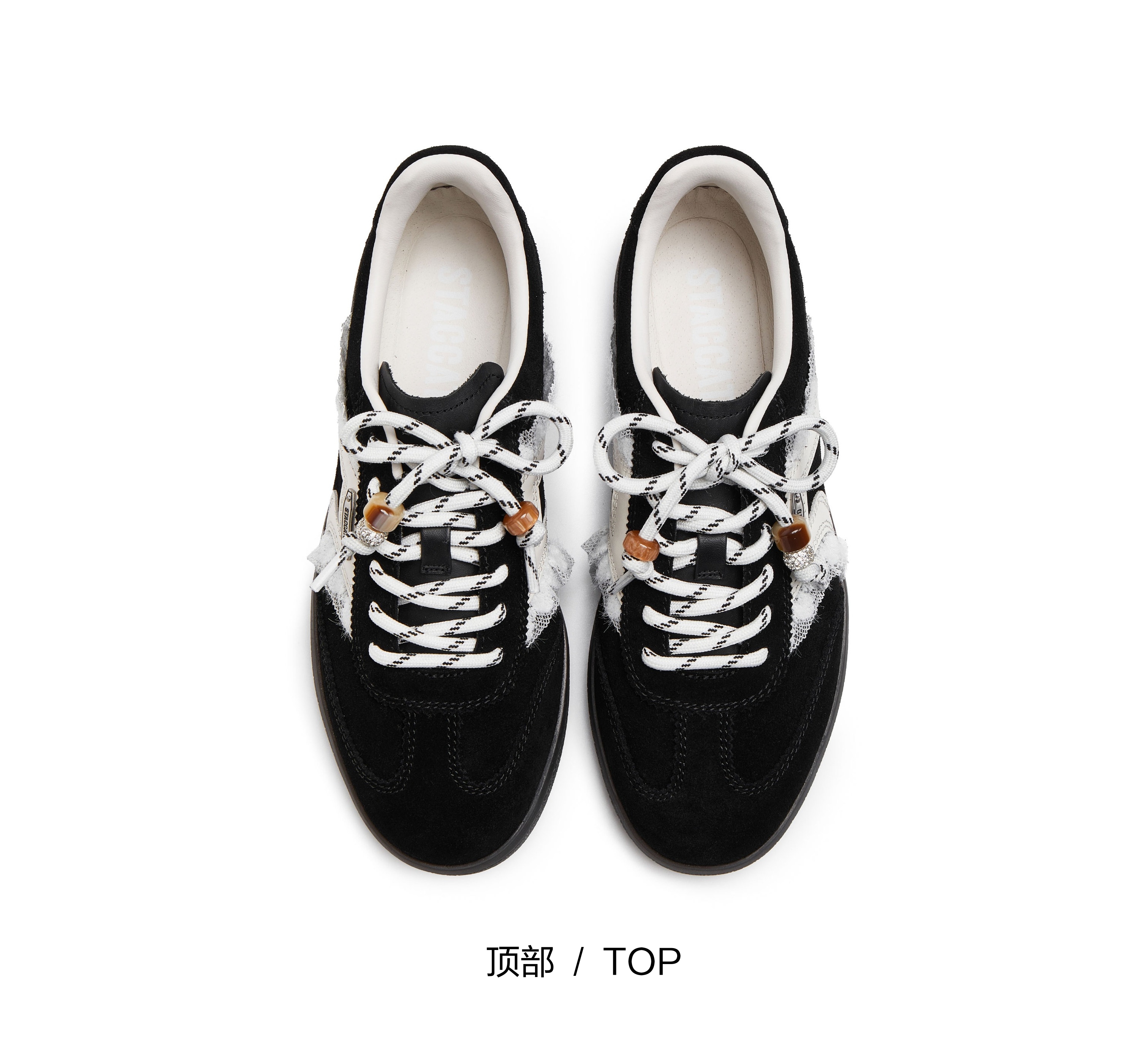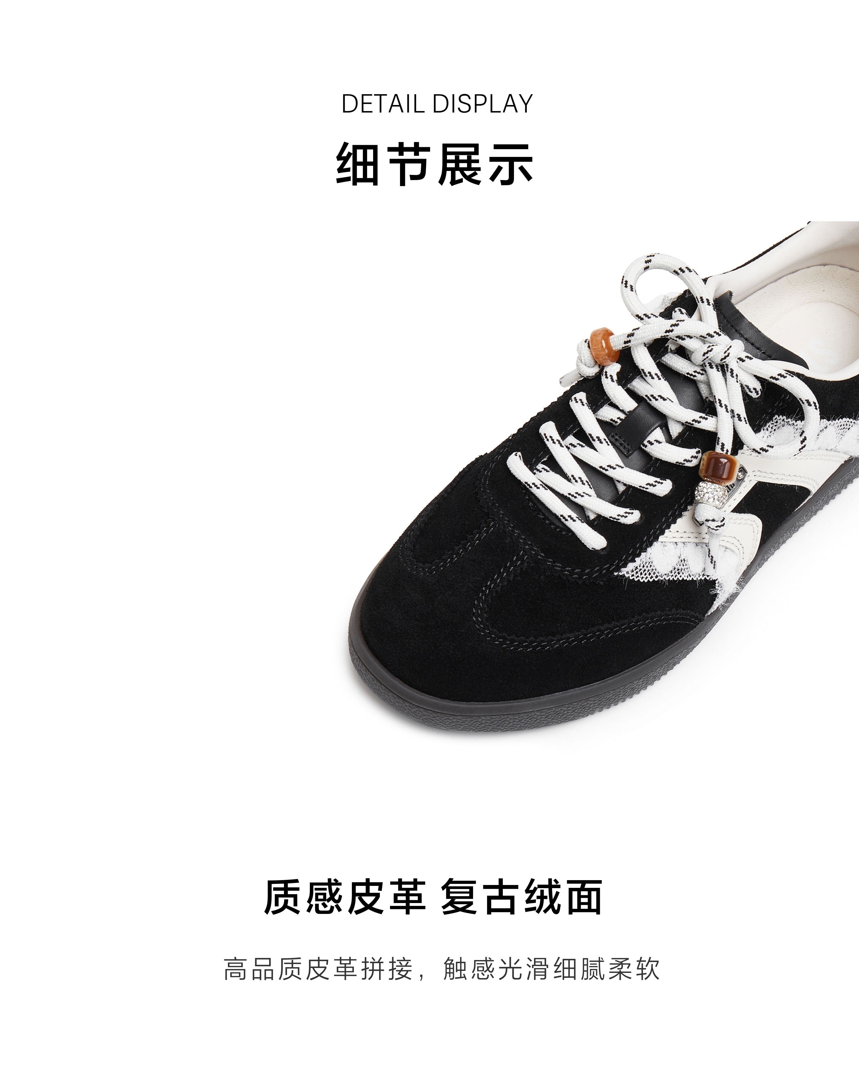 | 鞋跟形状:平跟 | 鞋面材质:牛皮革牛剖层革 | 流行元素:串珠蕾丝 | 参考鞋长(女):25CM | 参考鞋宽(女):9CM |