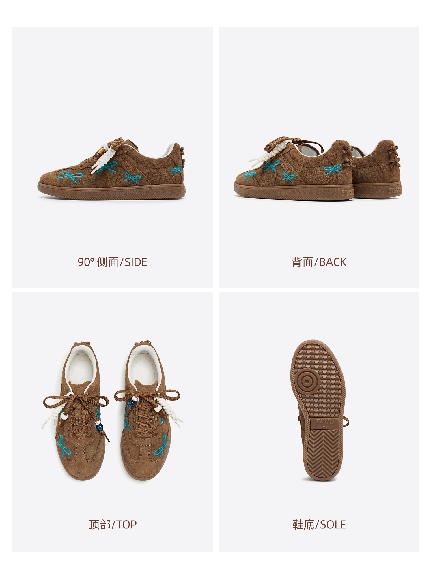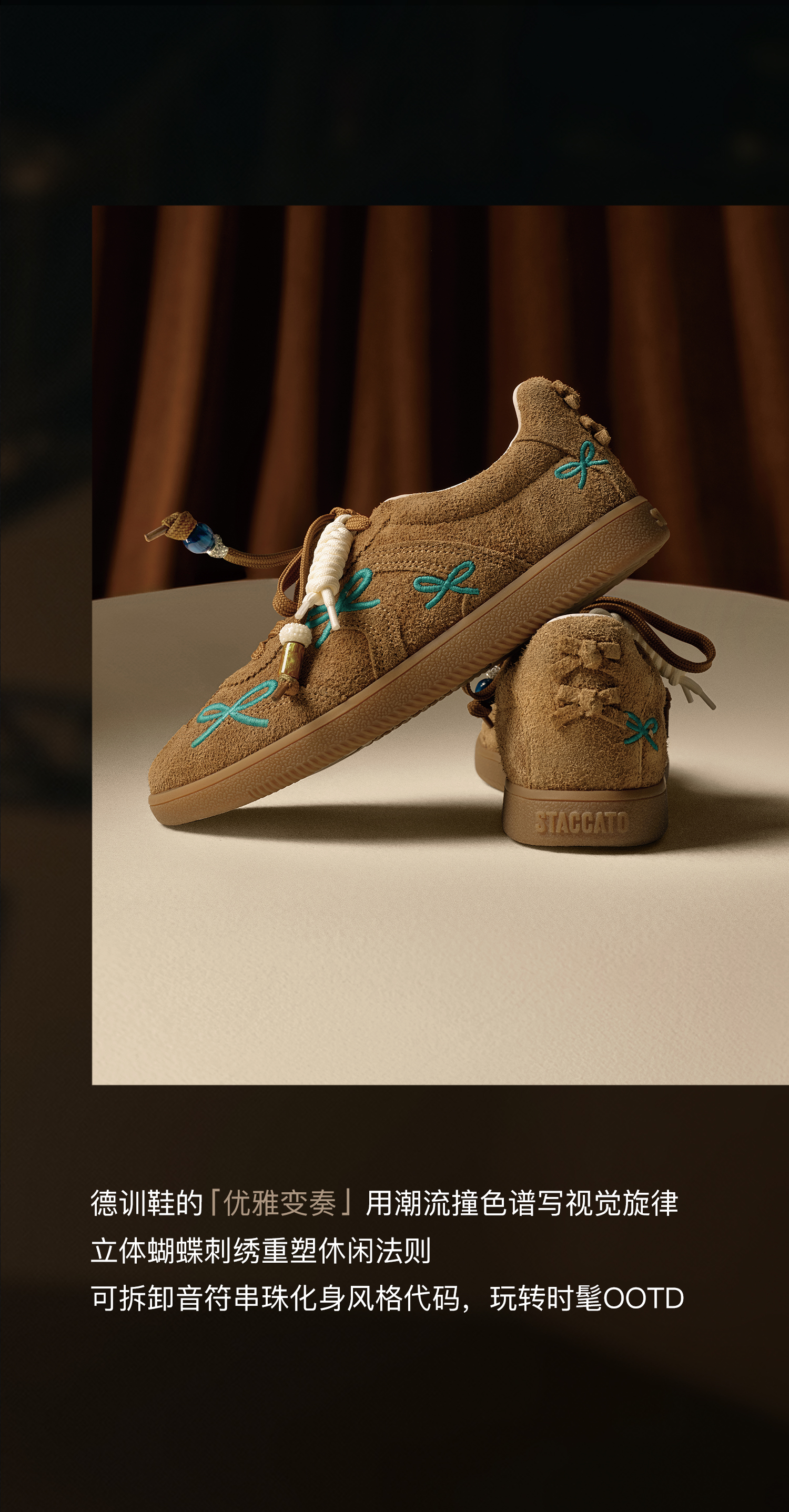 思加图(STACCATO),一个代表着年轻时尚、多元化的时装鞋履品牌,目标将时尚潮流带到女性的现实生活中。“STACCATO”是乐章上的音符,轻轻一点,谱出优美的旋律,为音乐带来多样性。穿上STACCATO单鞋的时代女性,踏出自信又轻松的脚步,犹如跳跃的音符,反映年轻与时尚的生活态度。目前品牌开设门店已超1100家,遍布中国、韩国、澳洲、新加坡、马来西亚、罗马尼亚、沙特阿拉伯等地。