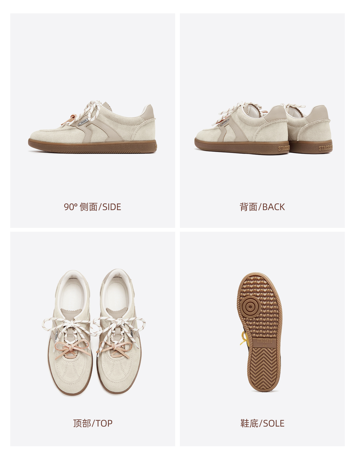 思加图(STACCATO),一个代表着年轻时尚、多元化的时装鞋履品牌,目标将时尚潮流带到女性的现实生活中。“STACCATO”是乐章上的音符,轻轻一点,谱出优美的旋律,为音乐带来多样性。穿上STACCATO单鞋的时代女性,踏出自信又轻松的脚步,犹如跳跃的音符,反映年轻与时尚的生活态度。目前品牌开设门店已超1100家,遍布中国、韩国、澳洲、新加坡、马来西亚、罗马尼亚、沙特阿拉伯等地。