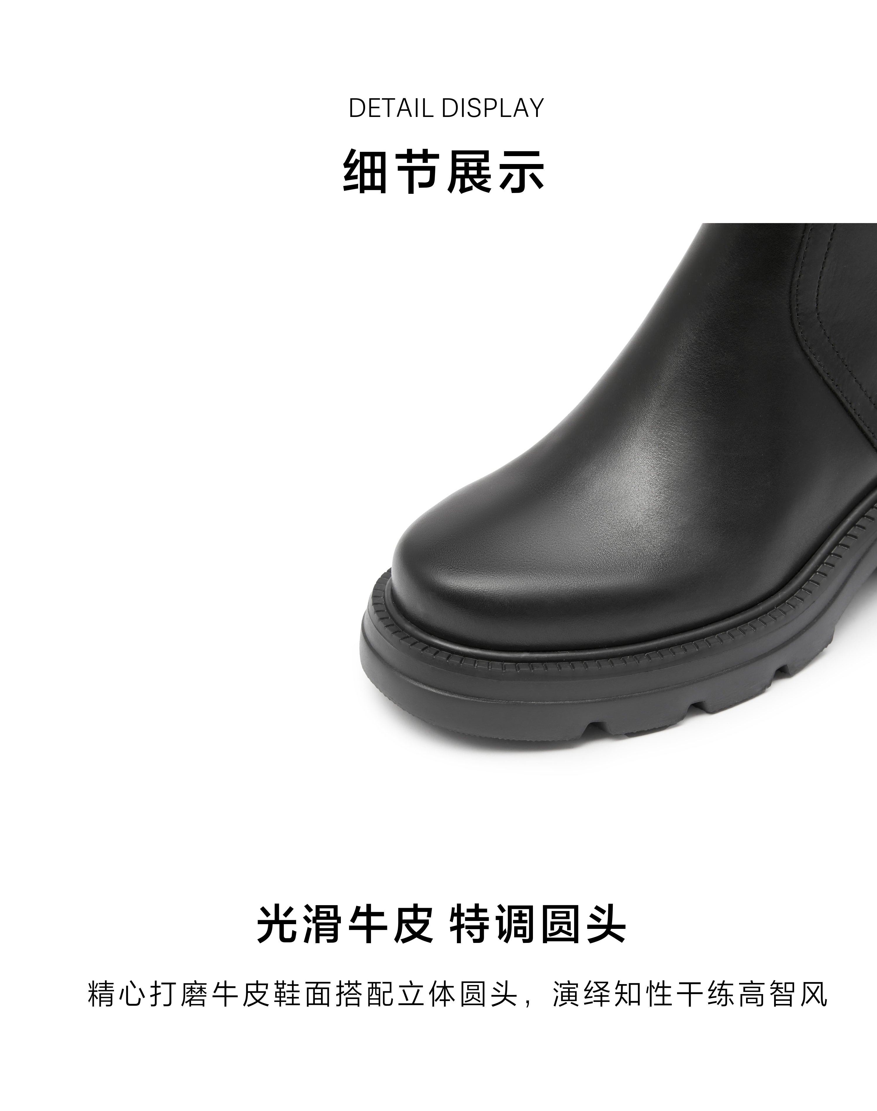 | 鞋底材质:IP底 | 靴筒内里材质:猪皮革 | 内增高:无 | 鞋面材质:牛皮革 | 闭合方式:后拉链 |