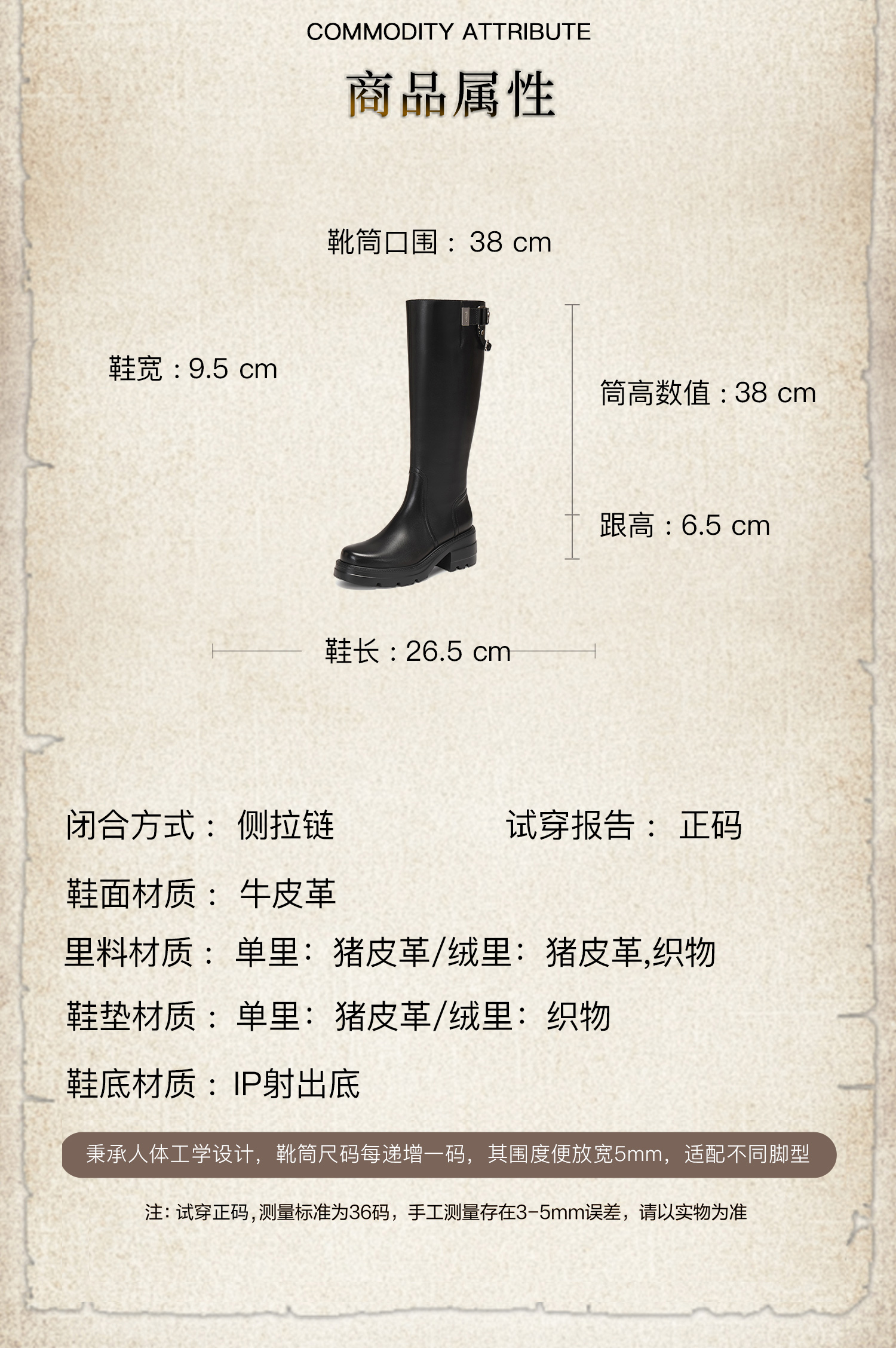 | 配跟:无 | 靴筒口围:38CM | 上市时间:2025年冬季 | 鞋类流行款式:骑士靴 | 鞋头款式:圆头 |
