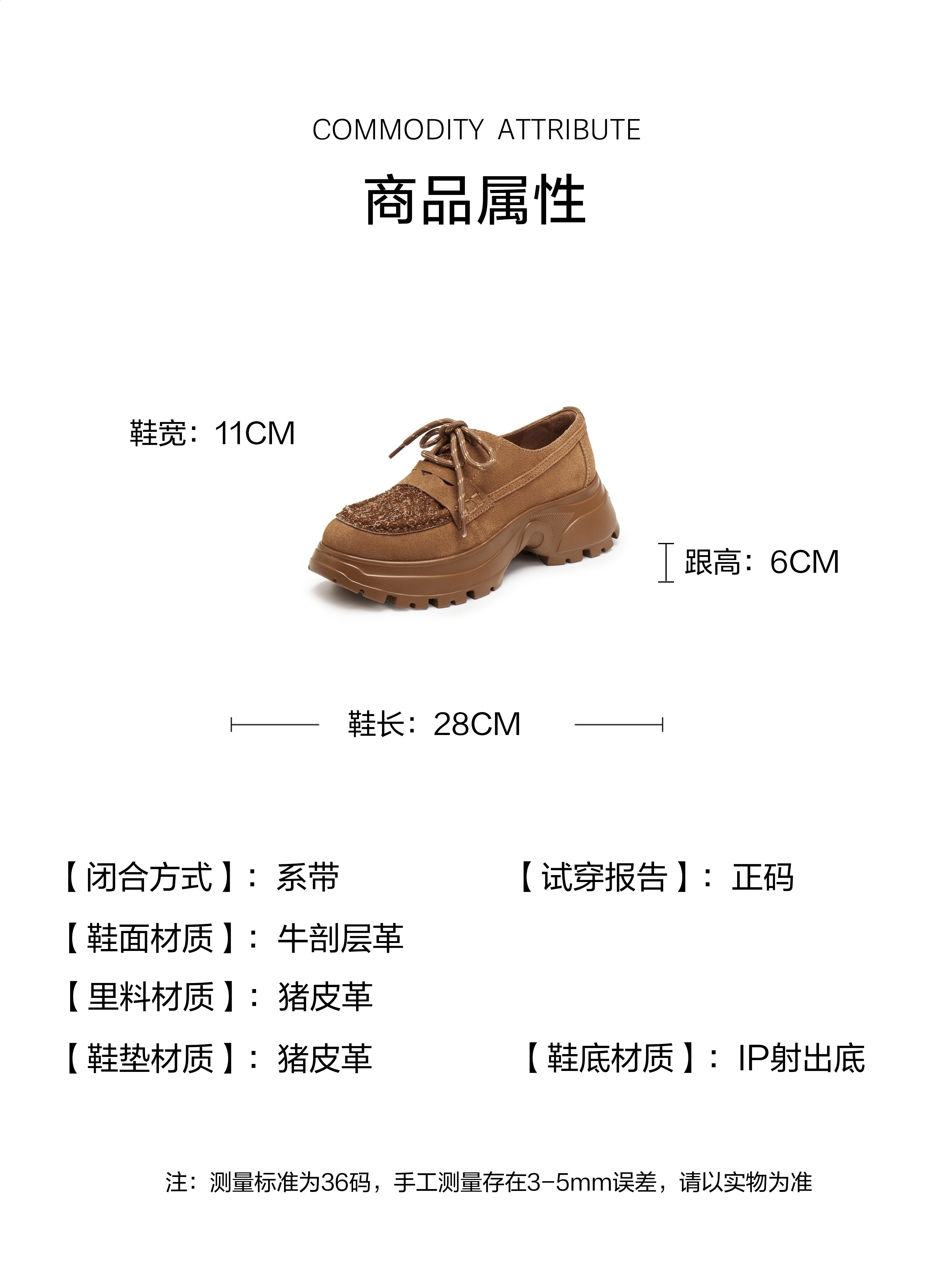 | 鞋跟形状:厚底 | 鞋面材质:牛剖层革 | 流行元素:毛皮 | 参考鞋长(女):28CM | 参考鞋宽(女):11CM |