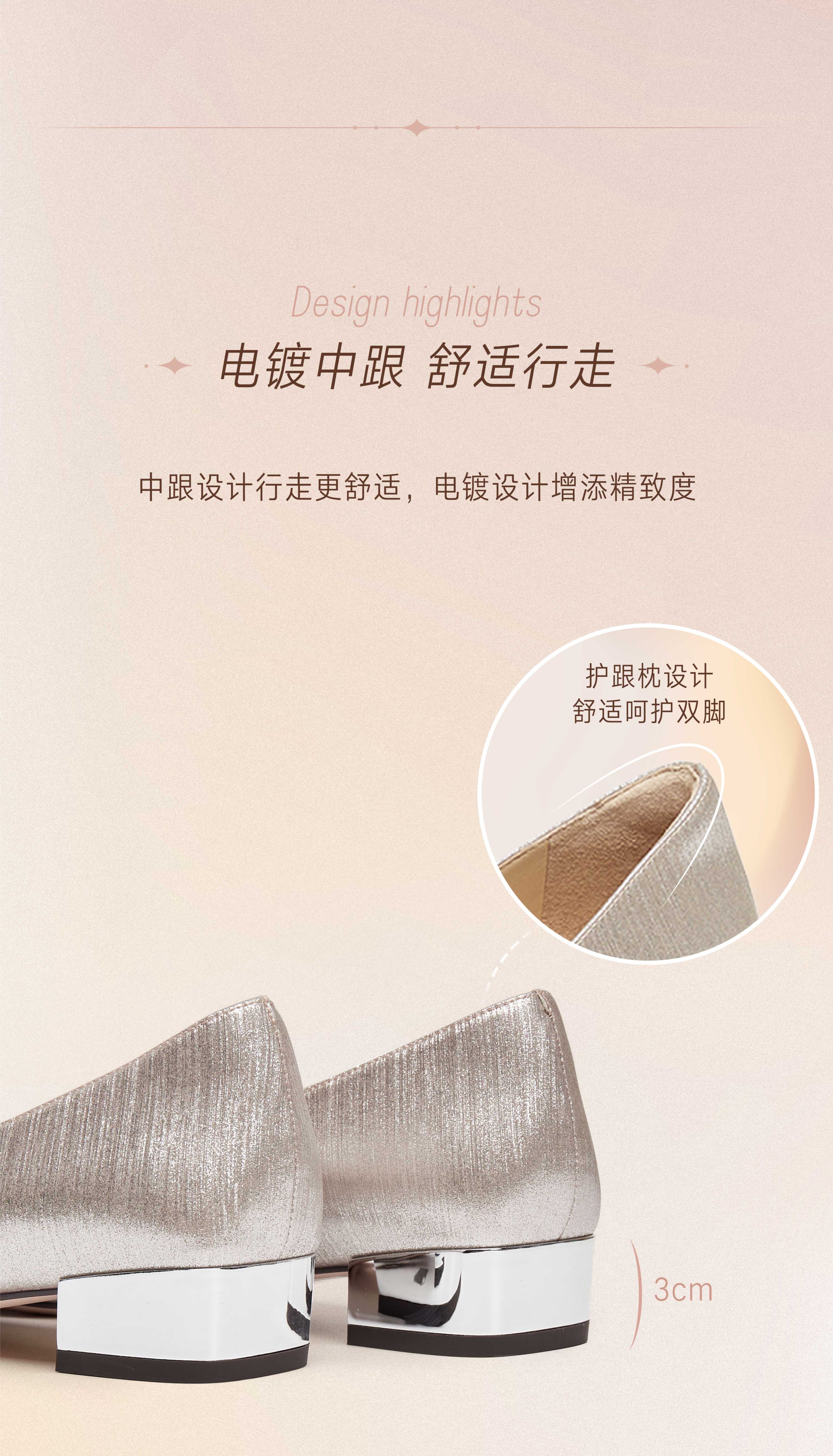 | 风格:时尚潮流 | 跟高数值:3CM | 色系:金色 | 配跟:无 | 性别:女子 |