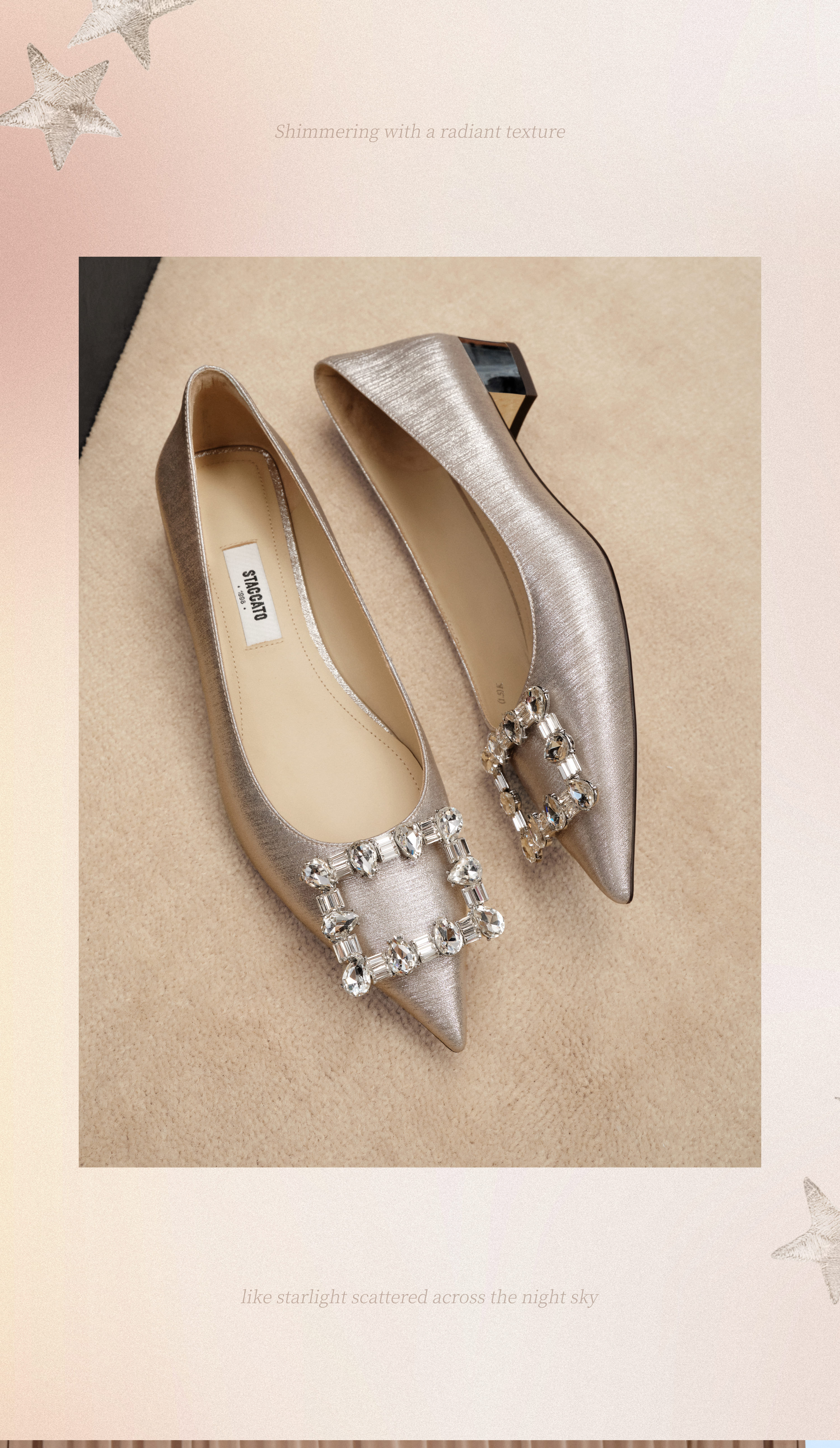 思加图(STACCATO),一个代表着年轻时尚、多元化的时装鞋履品牌,目标将时尚潮流带到女性的现实生活中。“STACCATO”是乐章上的音符,轻轻一点,谱出优美的旋律,为音乐带来多样性。穿上STACCATO单鞋的时代女性,踏出自信又轻松的脚步,犹如跳跃的音符,反映年轻与时尚的生活态度。目前品牌开设门店已超1100家,遍布中国、韩国、澳洲、新加坡、马来西亚、罗马尼亚、沙特阿拉伯等地。