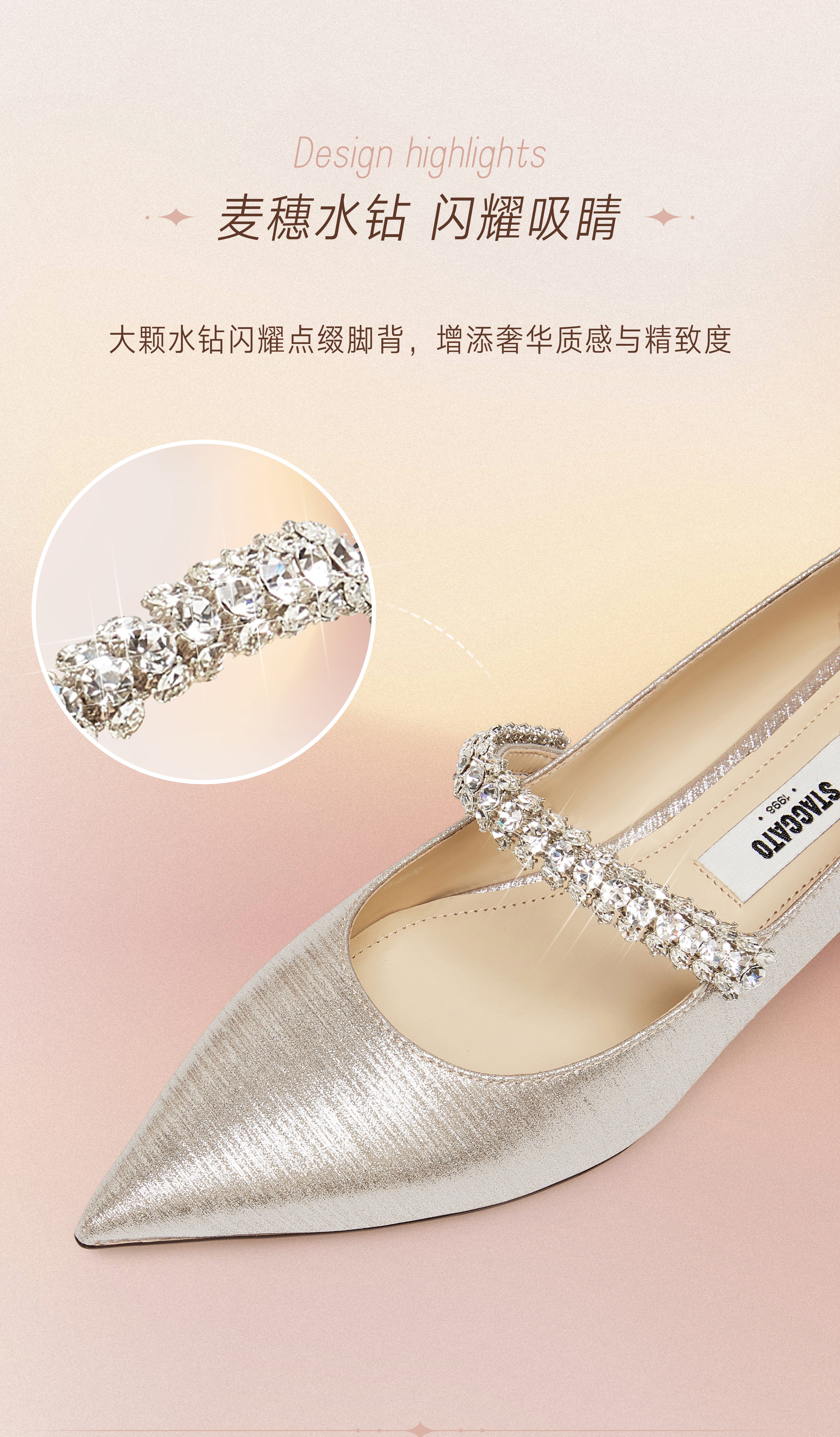 思加图(STACCATO),一个代表着年轻时尚、多元化的时装鞋履品牌,目标将时尚潮流带到女性的现实生活中。“STACCATO”是乐章上的音符,轻轻一点,谱出优美的旋律,为音乐带来多样性。穿上STACCATO单鞋的时代女性,踏出自信又轻松的脚步,犹如跳跃的音符,反映年轻与时尚的生活态度。目前品牌开设门店已超1100家,遍布中国、韩国、澳洲、新加坡、马来西亚、罗马尼亚、沙特阿拉伯等地。