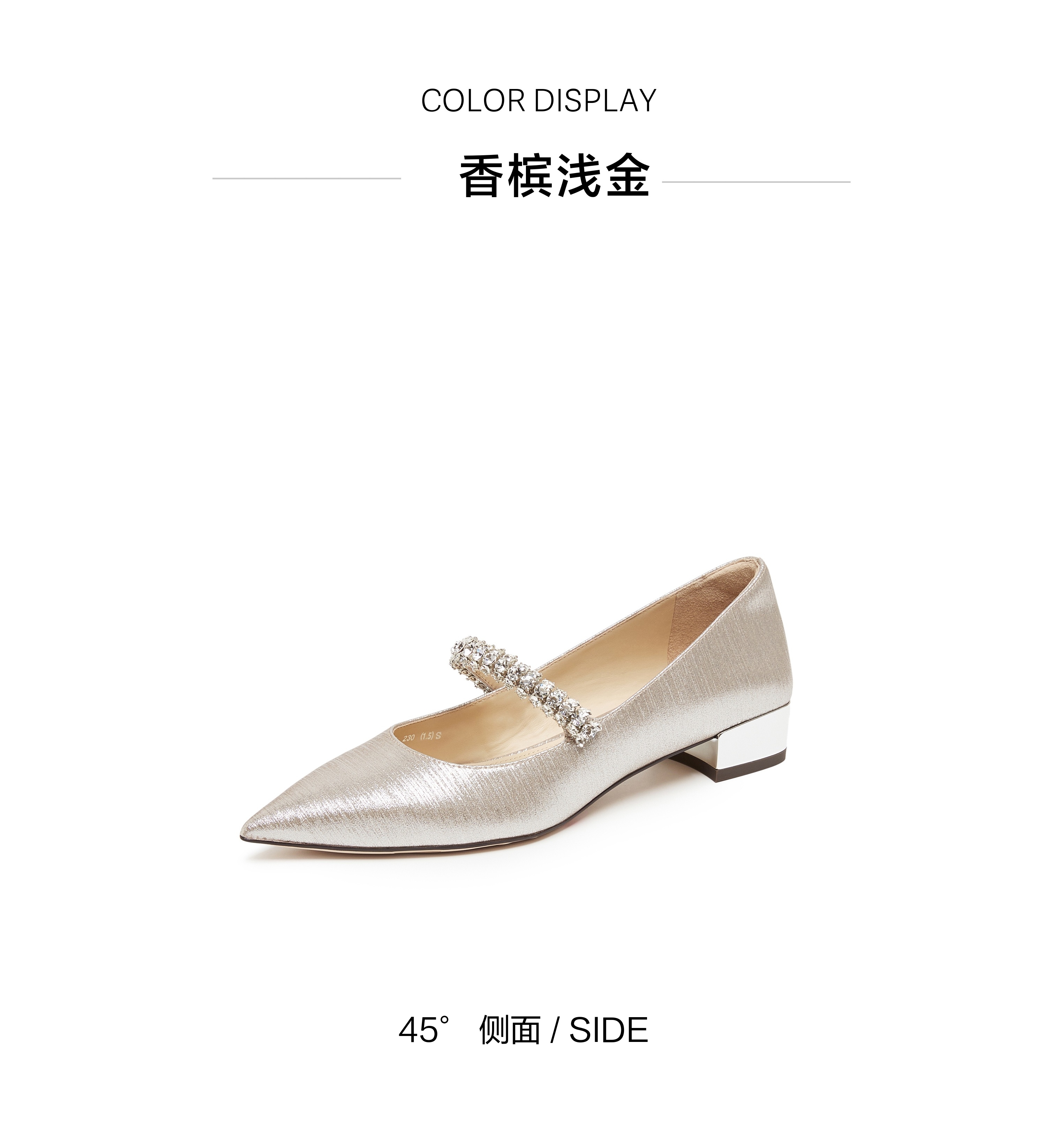 | 风格:时尚潮流 | 跟高数值:3CM | 色系:金色 | 配跟:无 | 性别:女子 |