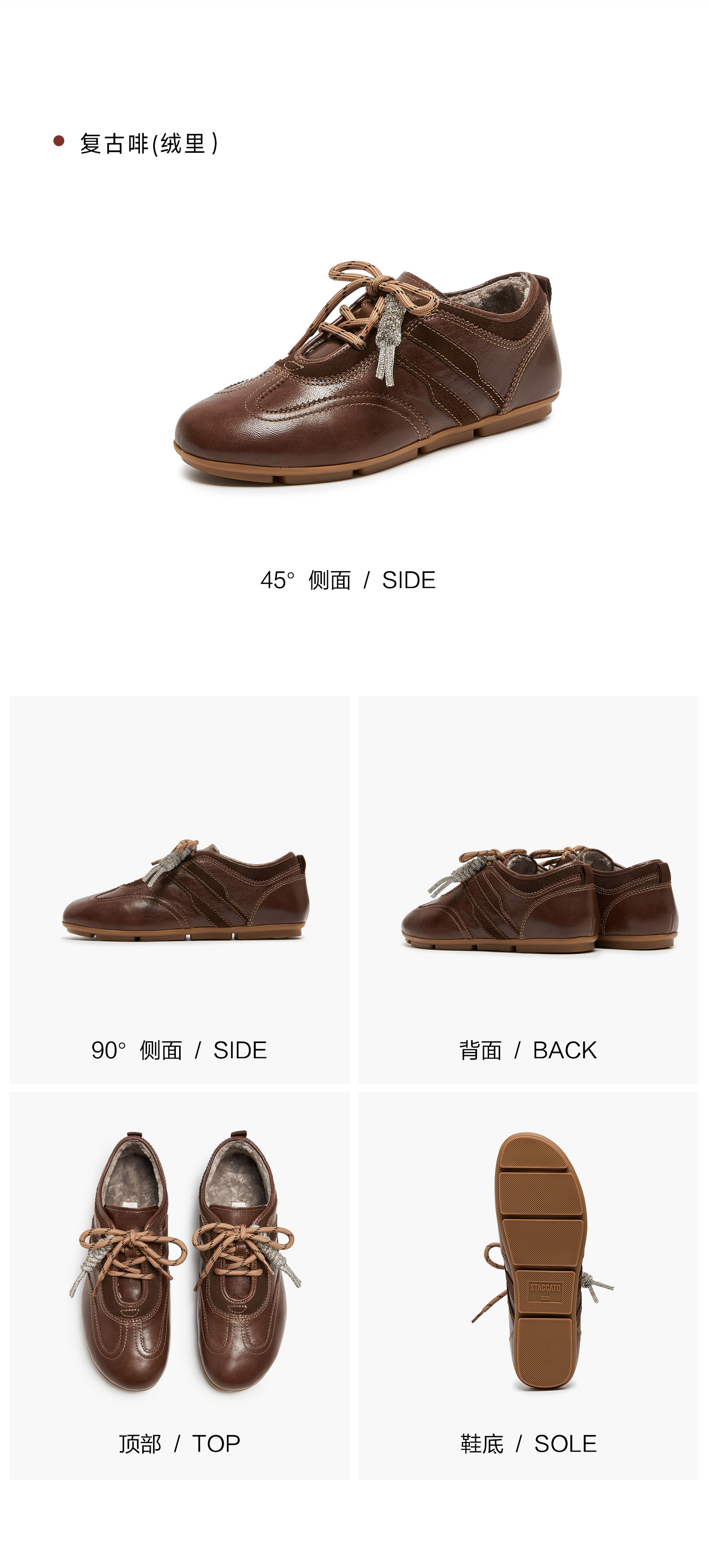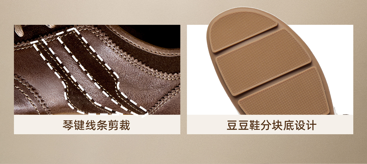 | 鞋帮:低帮 | 鞋底材质:橡胶底 | 内增高:无 | 鞋面材质:牛剖层革羊皮革 | 闭合方式:系带 |