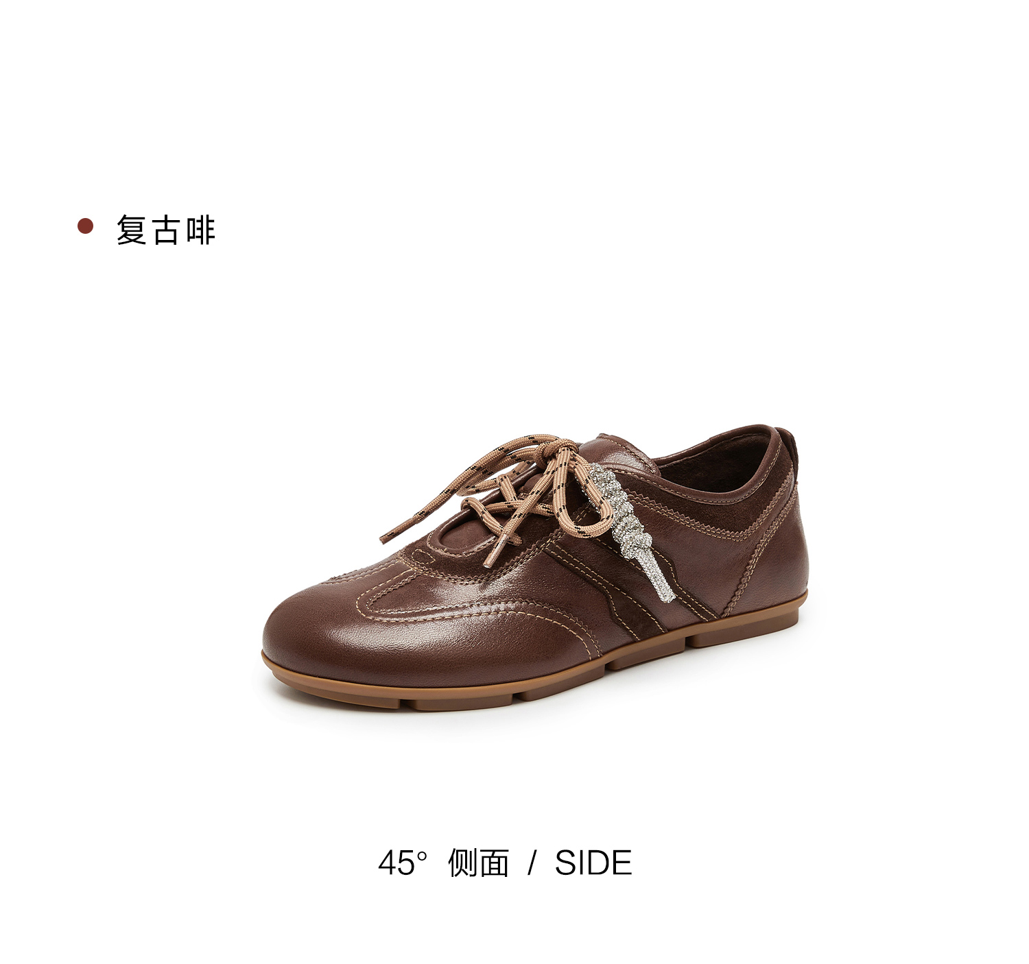 | 鞋帮:低帮 | 鞋底材质:橡胶底 | 内增高:无 | 鞋面材质:牛剖层革羊皮革 | 闭合方式:系带 |