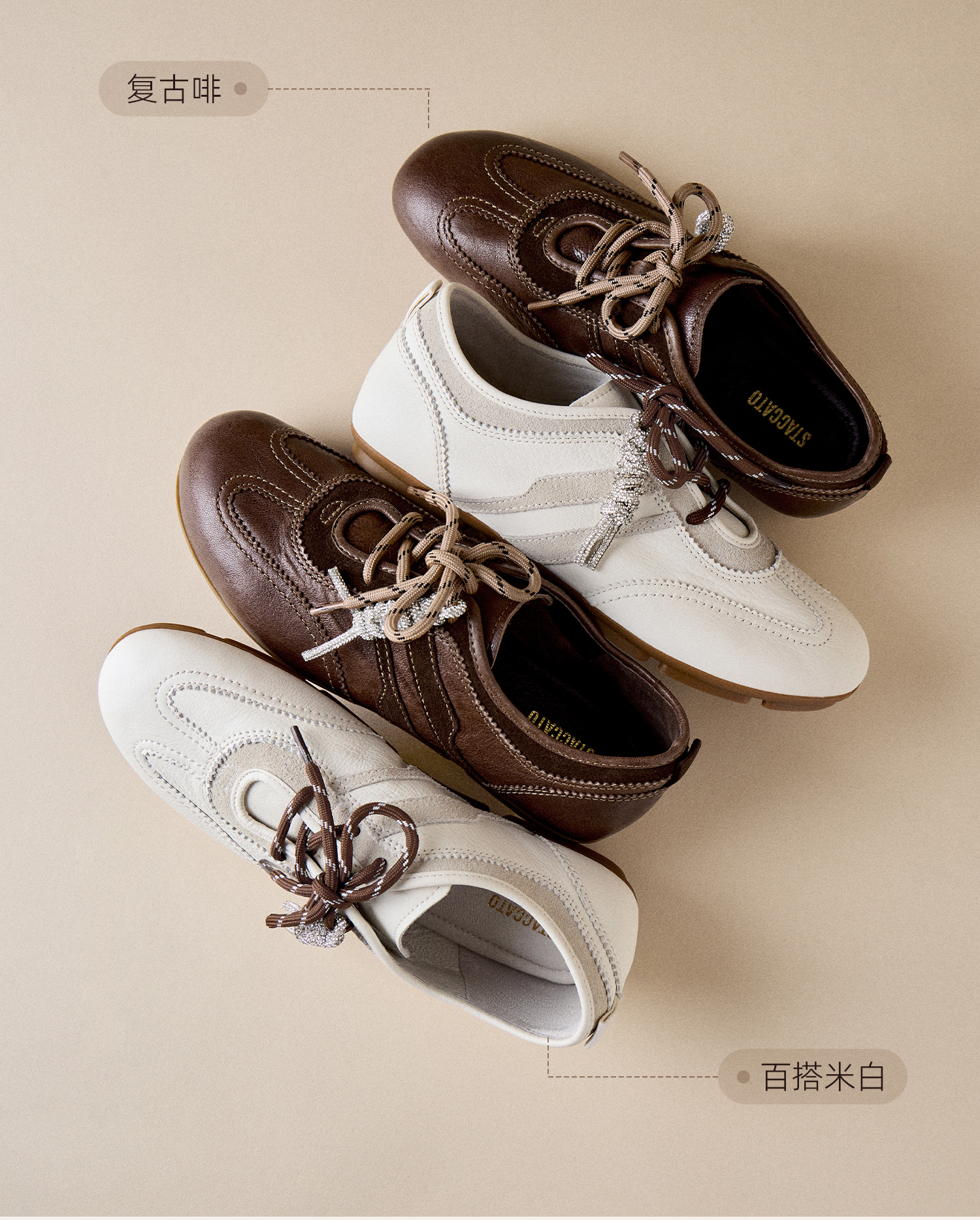思加图(STACCATO),一个代表着年轻时尚、多元化的时装鞋履品牌,目标将时尚潮流带到女性的现实生活中。“STACCATO”是乐章上的音符,轻轻一点,谱出优美的旋律,为音乐带来多样性。穿上STACCATO单鞋的时代女性,踏出自信又轻松的脚步,犹如跳跃的音符,反映年轻与时尚的生活态度。目前品牌开设门店已超1100家,遍布中国、韩国、澳洲、新加坡、马来西亚、罗马尼亚、沙特阿拉伯等地。