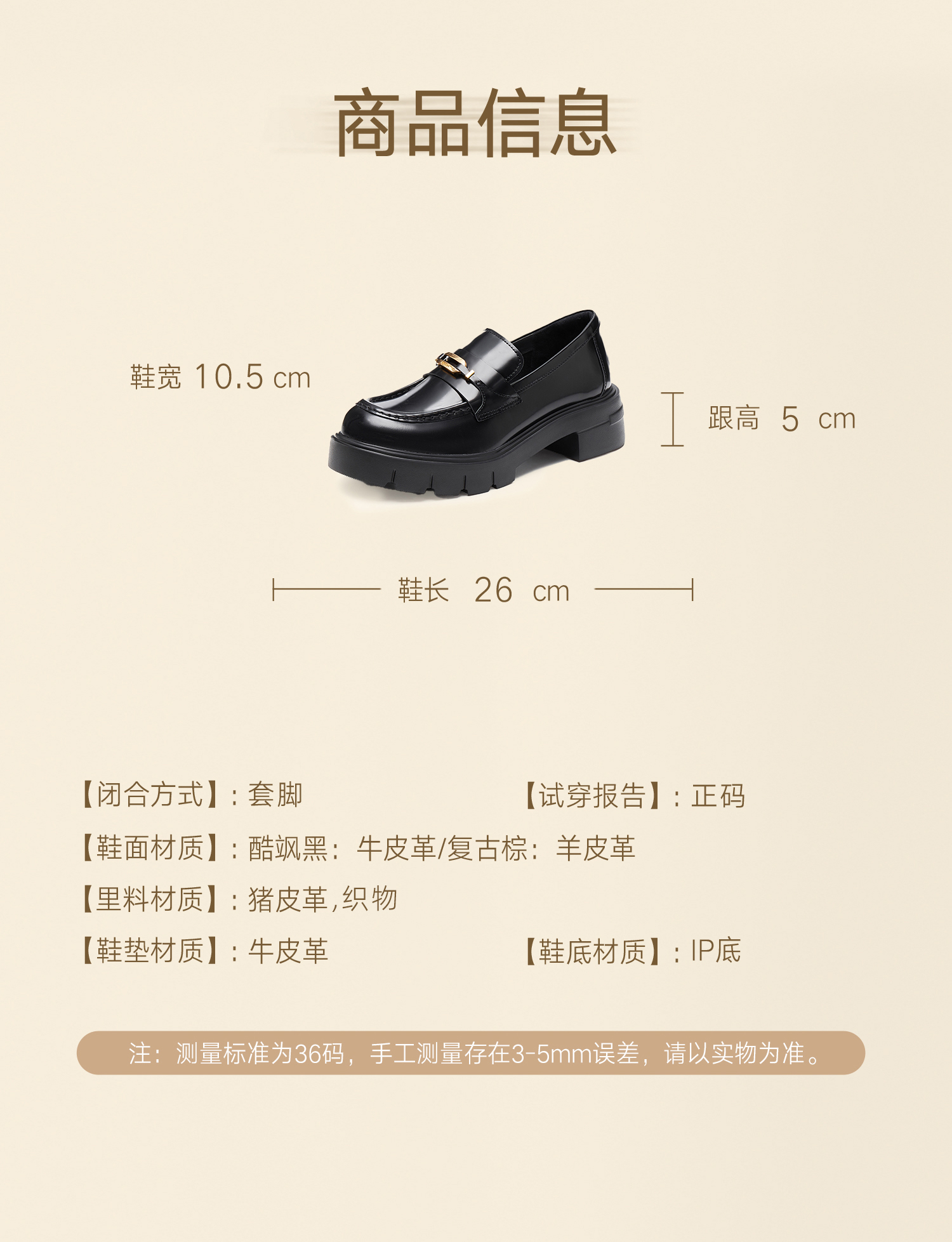 | 鞋垫材质:牛皮革 | 皮质特征:光面皮 | 鞋类流行款式:乐福鞋 |