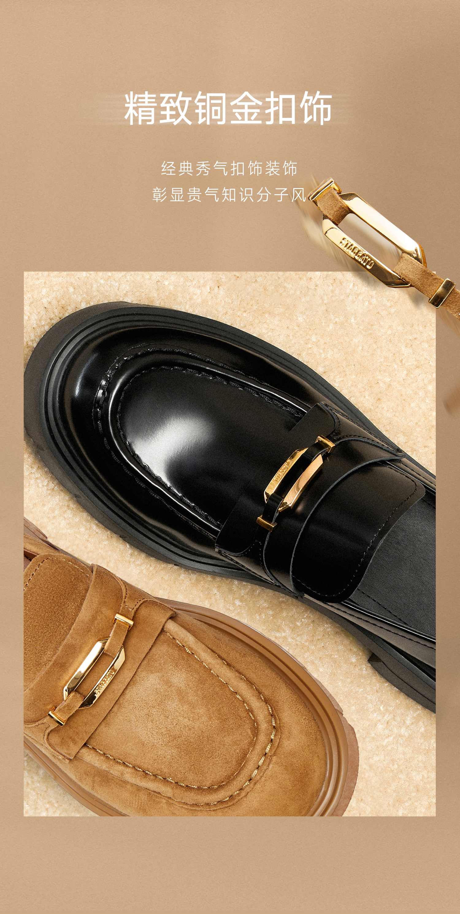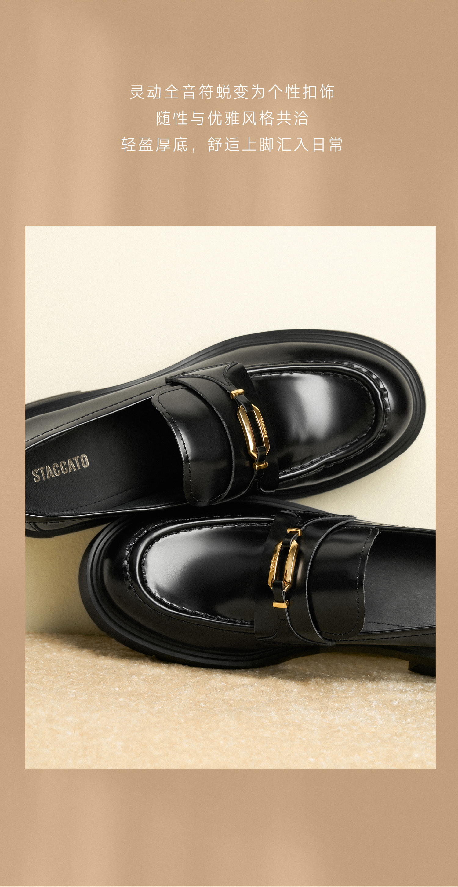 思加图(STACCATO),一个代表着年轻时尚、多元化的时装鞋履品牌,目标将时尚潮流带到女性的现实生活中。“STACCATO”是乐章上的音符,轻轻一点,谱出优美的旋律,为音乐带来多样性。穿上STACCATO单鞋的时代女性,踏出自信又轻松的脚步,犹如跳跃的音符,反映年轻与时尚的生活态度。目前品牌开设门店已超1100家,遍布中国、韩国、澳洲、新加坡、马来西亚、罗马尼亚、沙特阿拉伯等地。