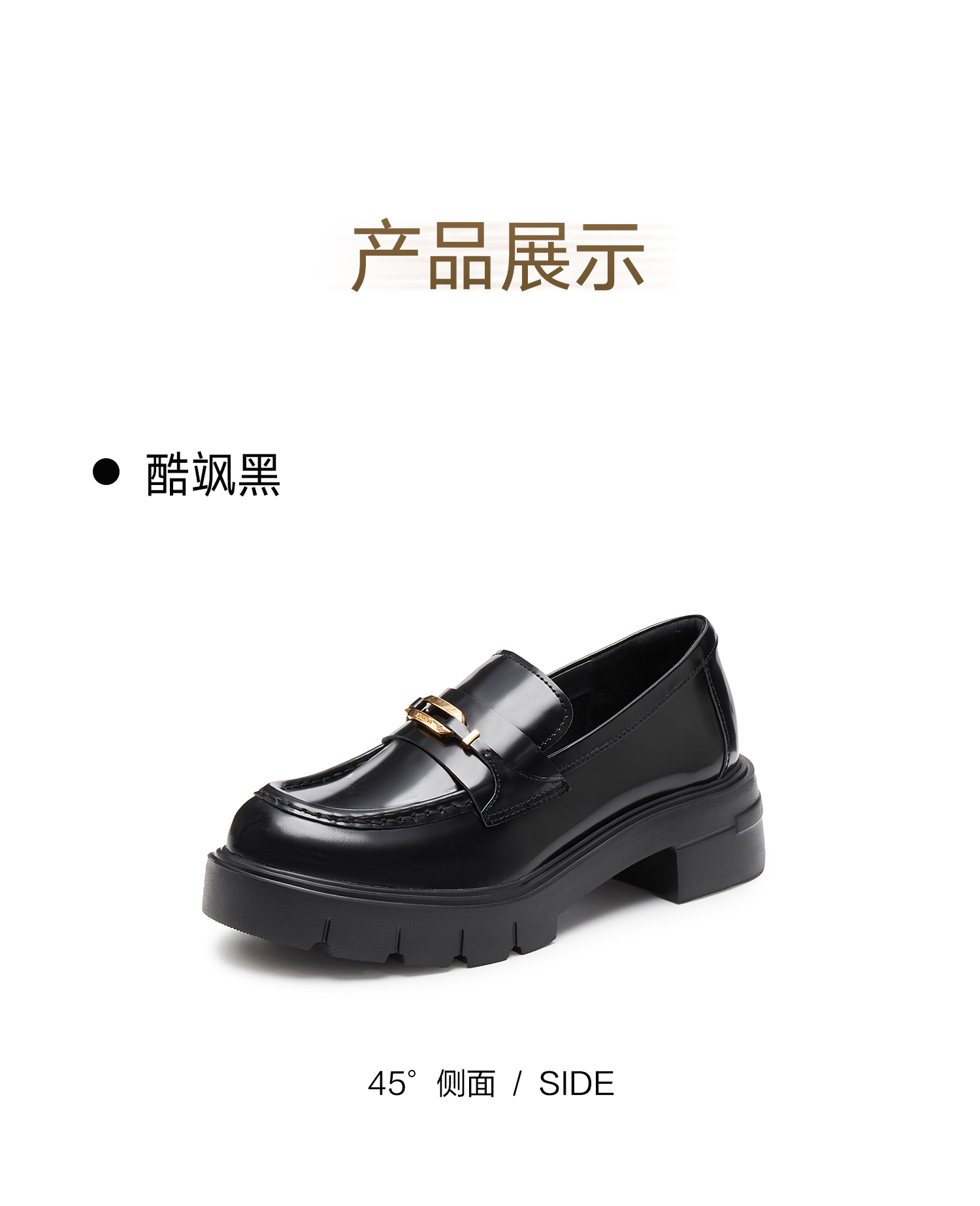 | 鞋跟形状:厚底 | 鞋面材质:羊皮革 | 流行元素:金属装饰 | 参考鞋长(女):26CM | 参考鞋宽(女):10.5CM |