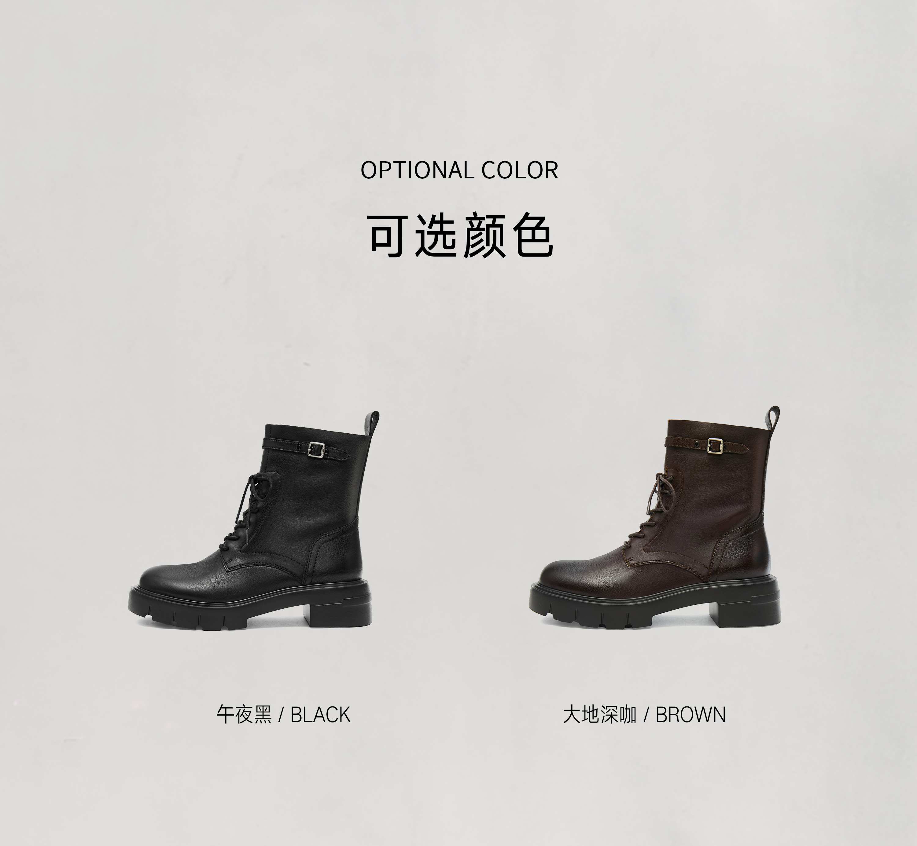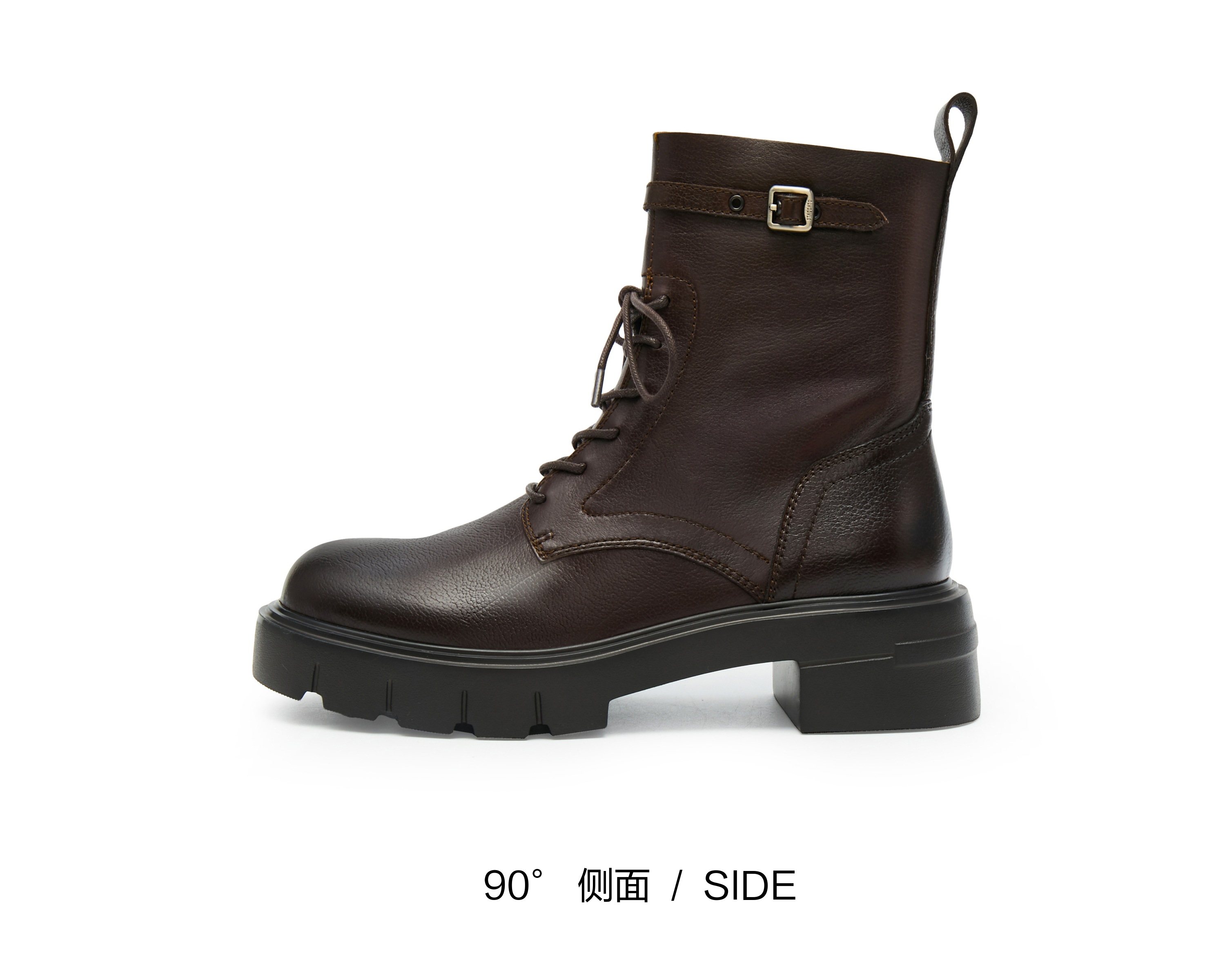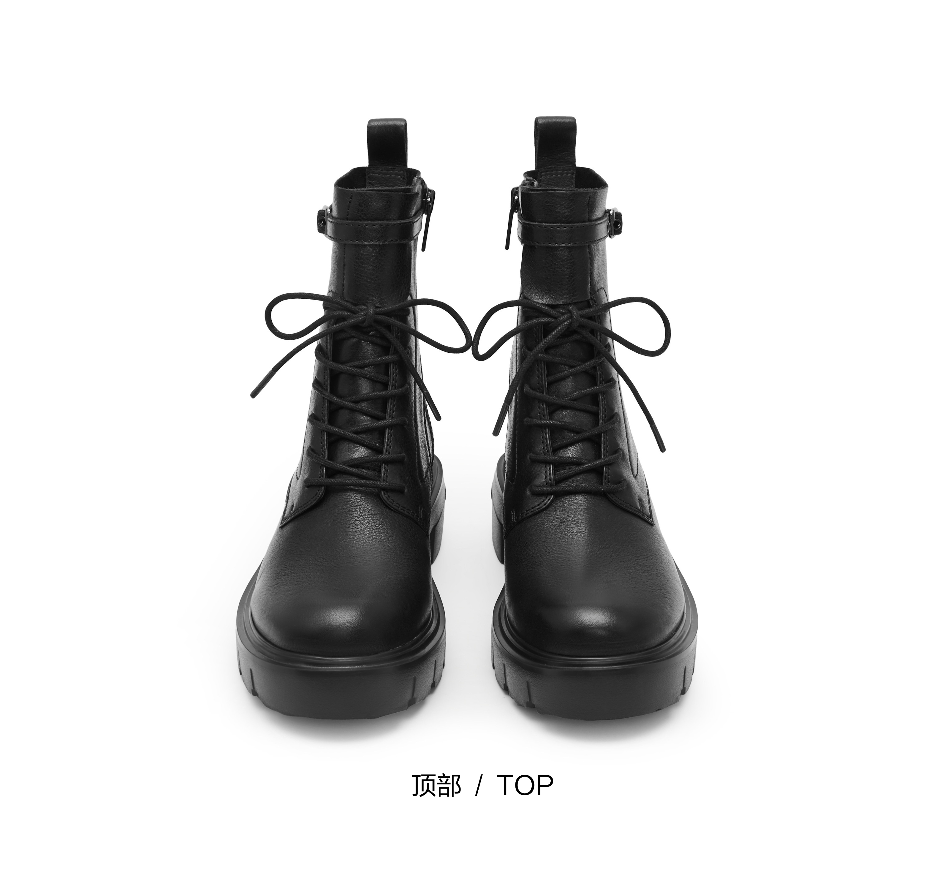 | 鞋底材质:IP底 | 靴筒内里材质:猪皮革 | 内增高:无 | 鞋面材质:牛皮革 | 闭合方式:系带侧拉链 |