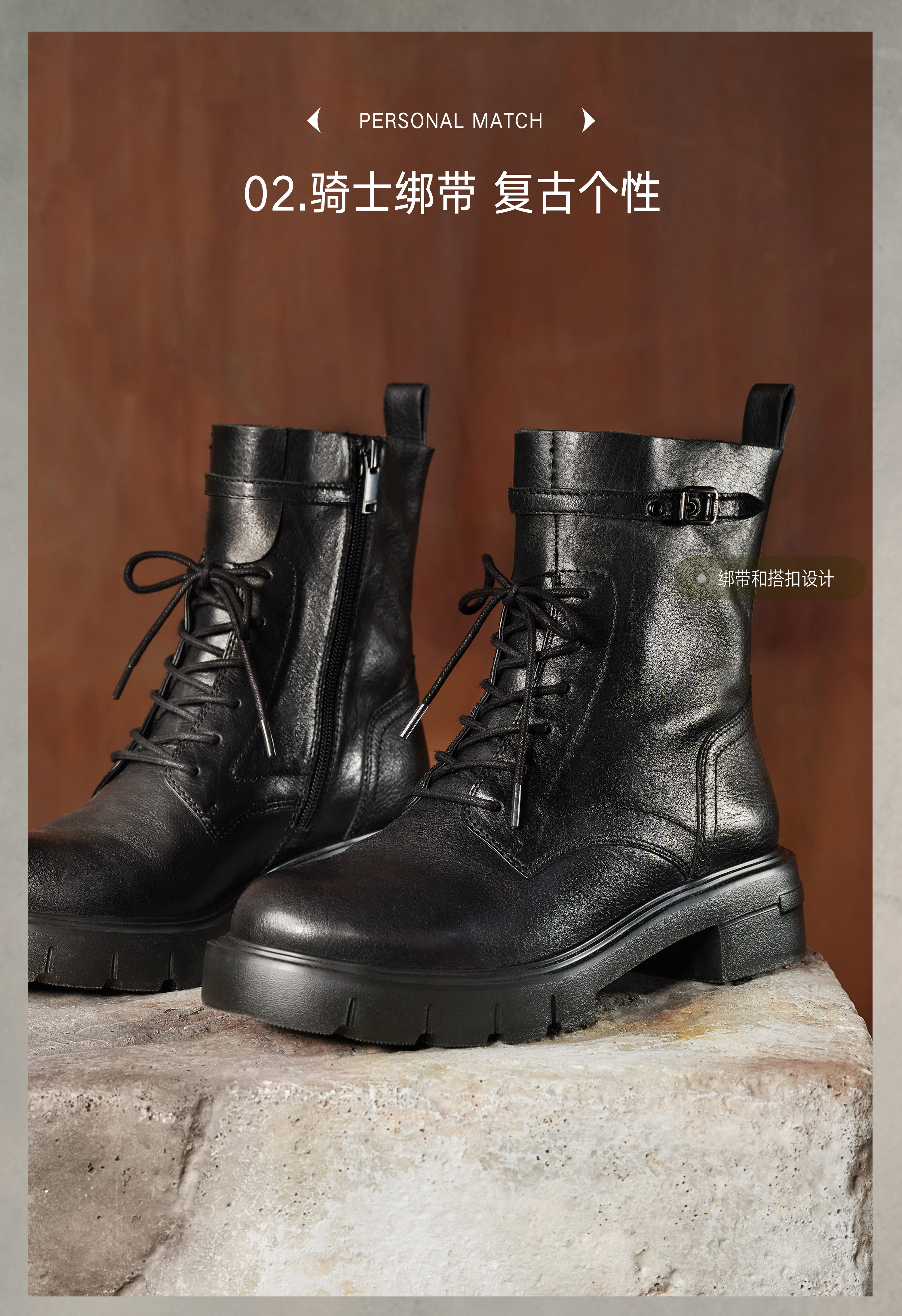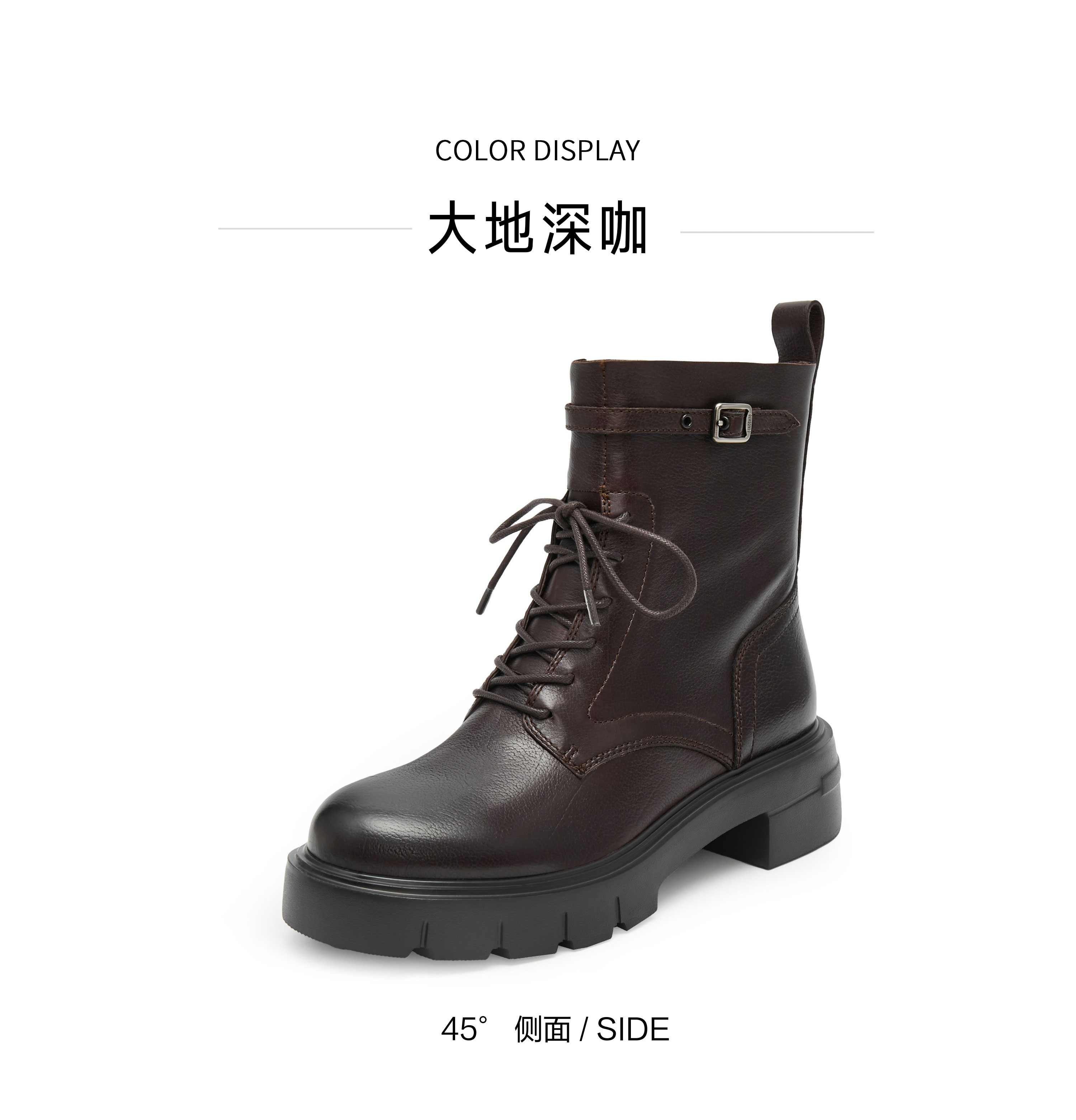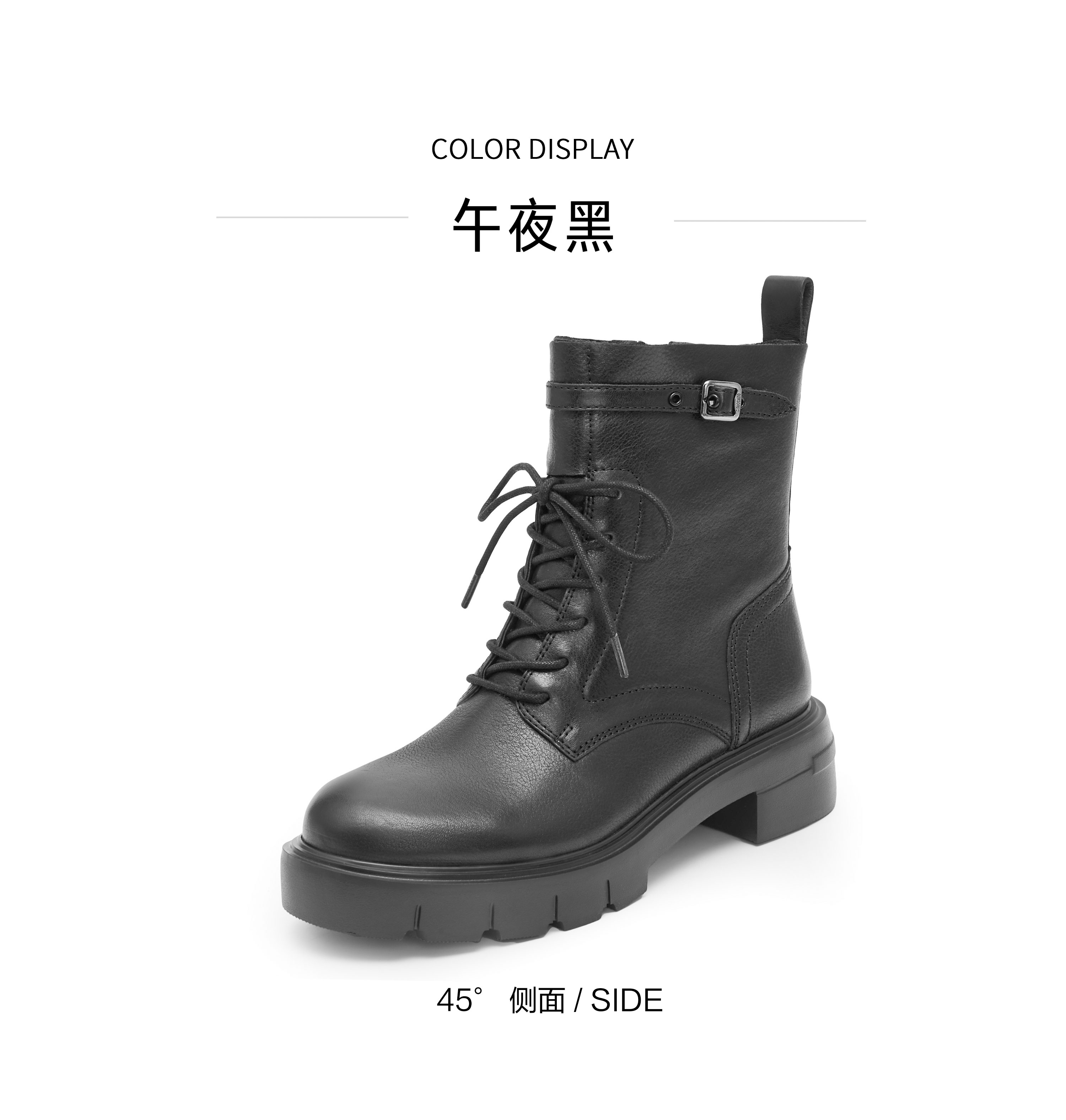 | 鞋底材质:IP底 | 靴筒内里材质:猪皮革 | 内增高:无 | 鞋面材质:牛皮革 | 闭合方式:系带侧拉链 |