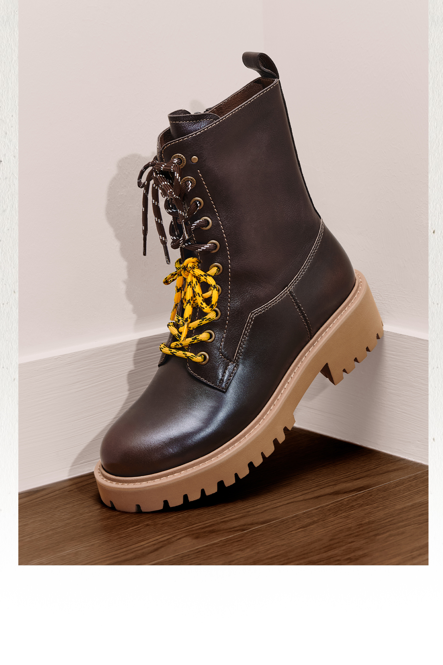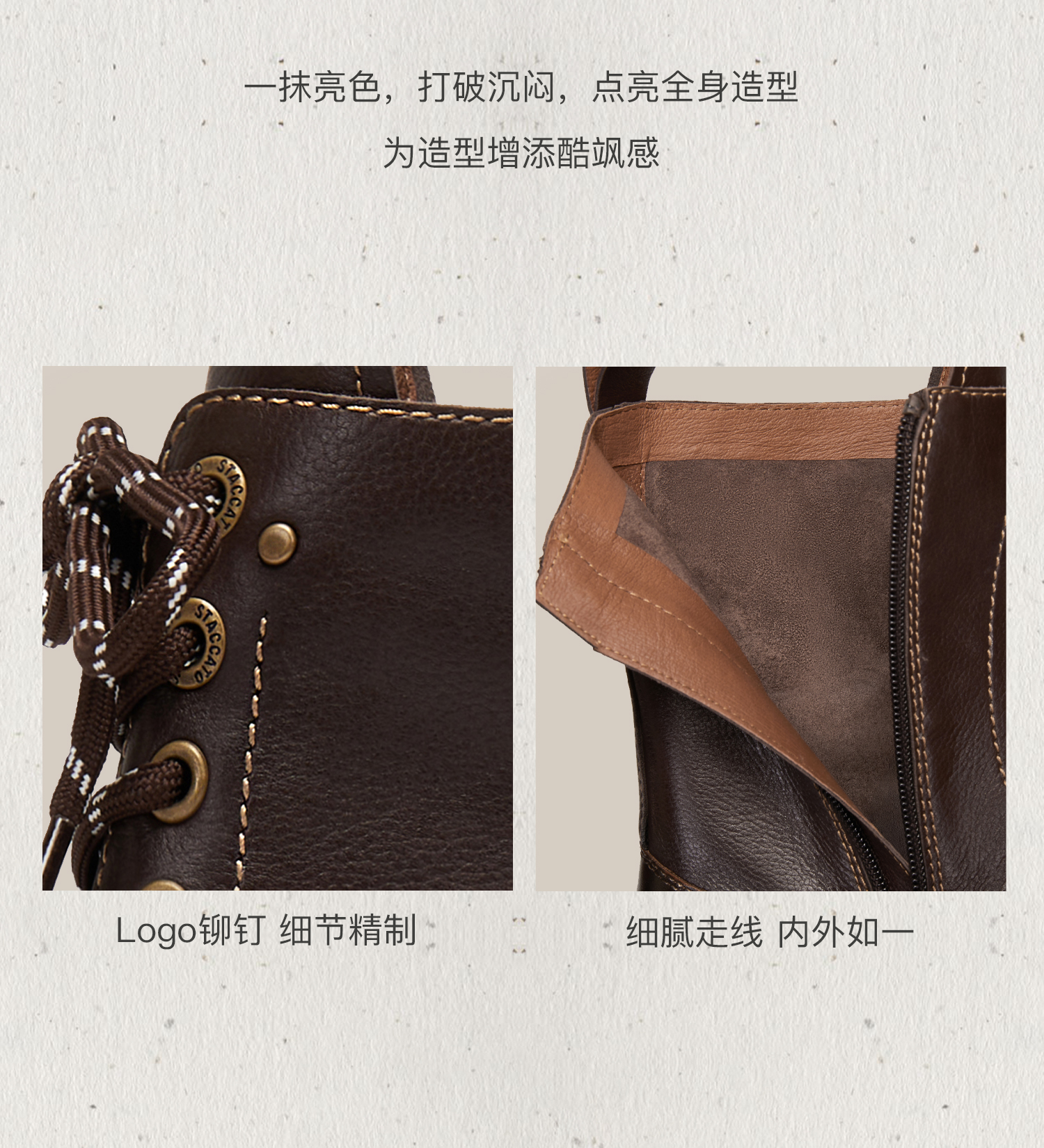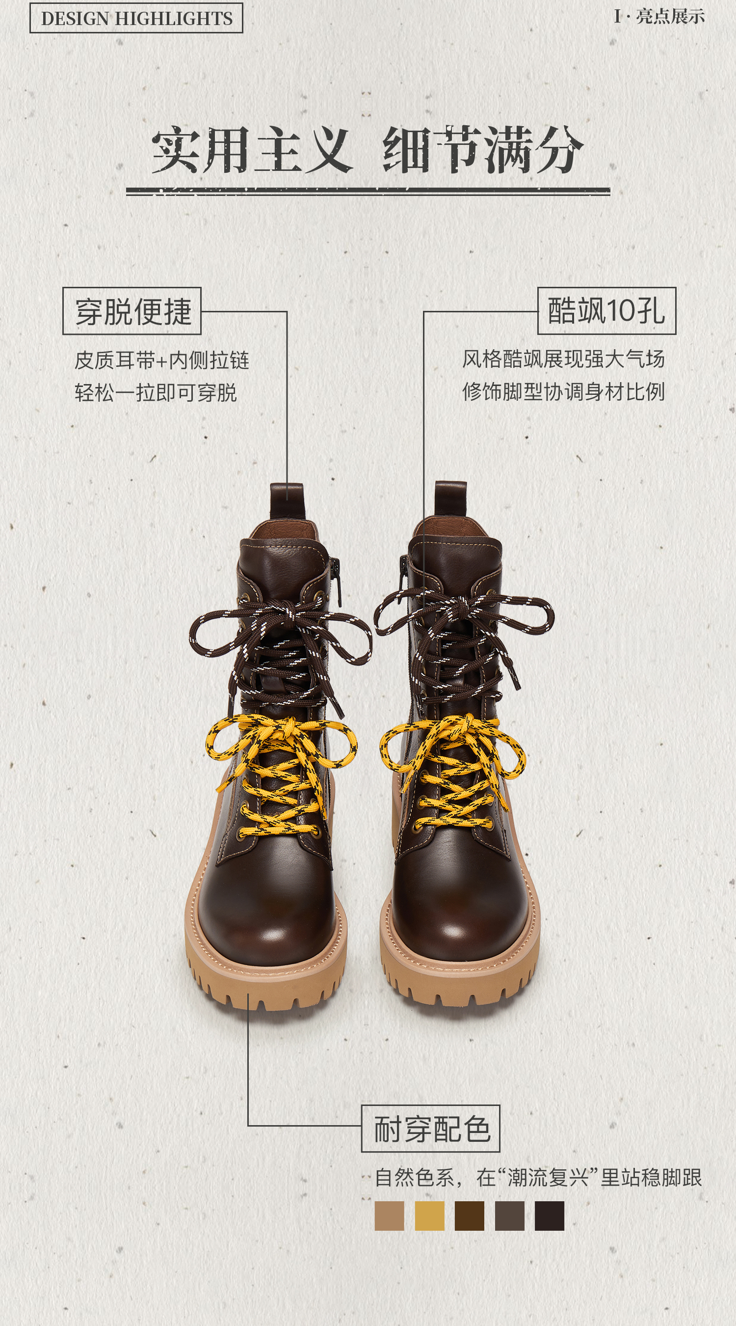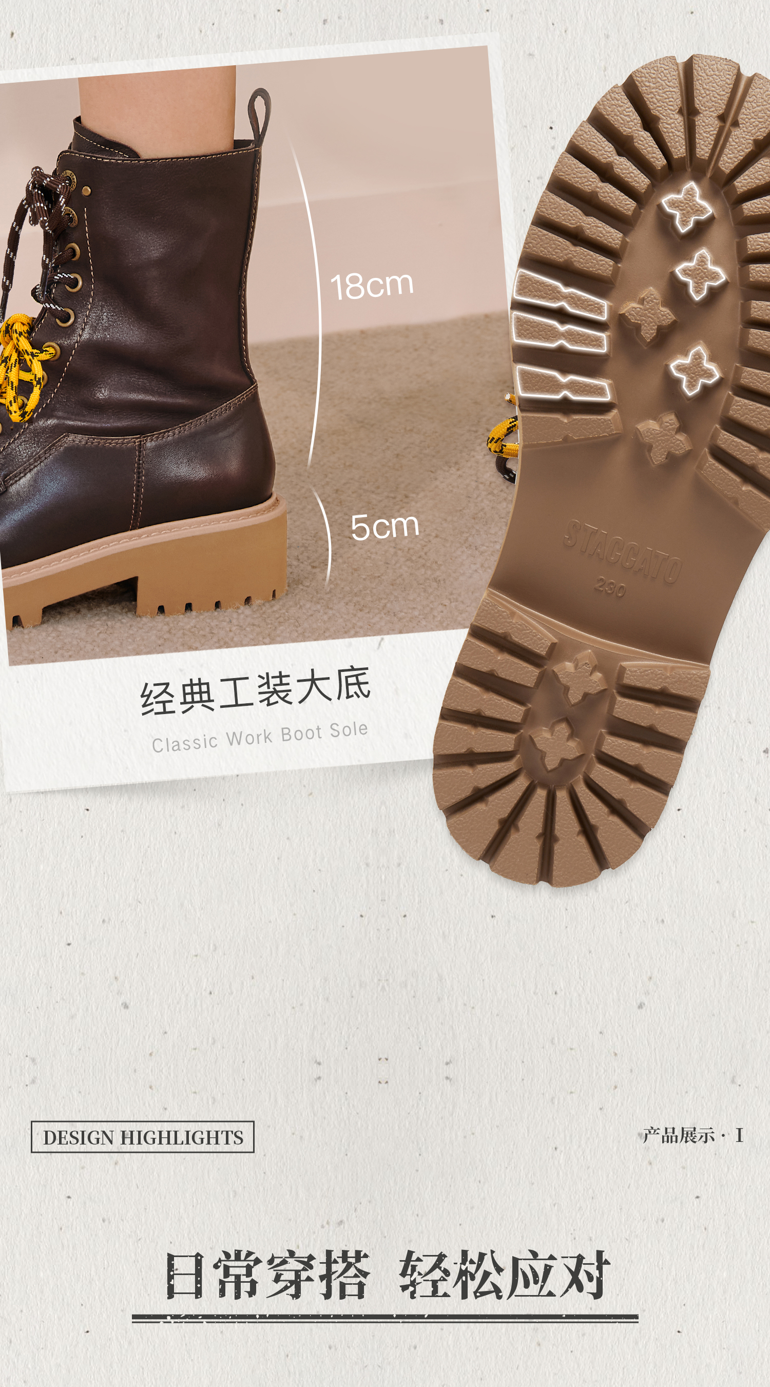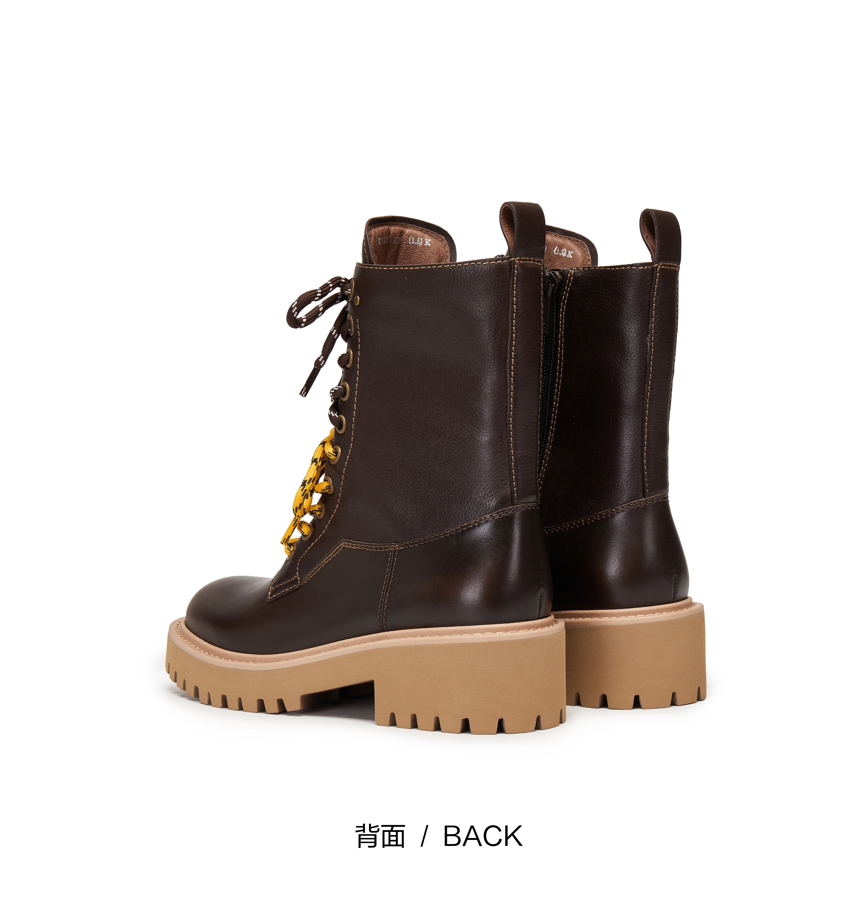| 鞋底材质:IP射出底 | 靴筒内里材质:织物猪皮革 | 内增高:无 | 鞋面材质:牛皮革 | 闭合方式:系带侧拉链 |