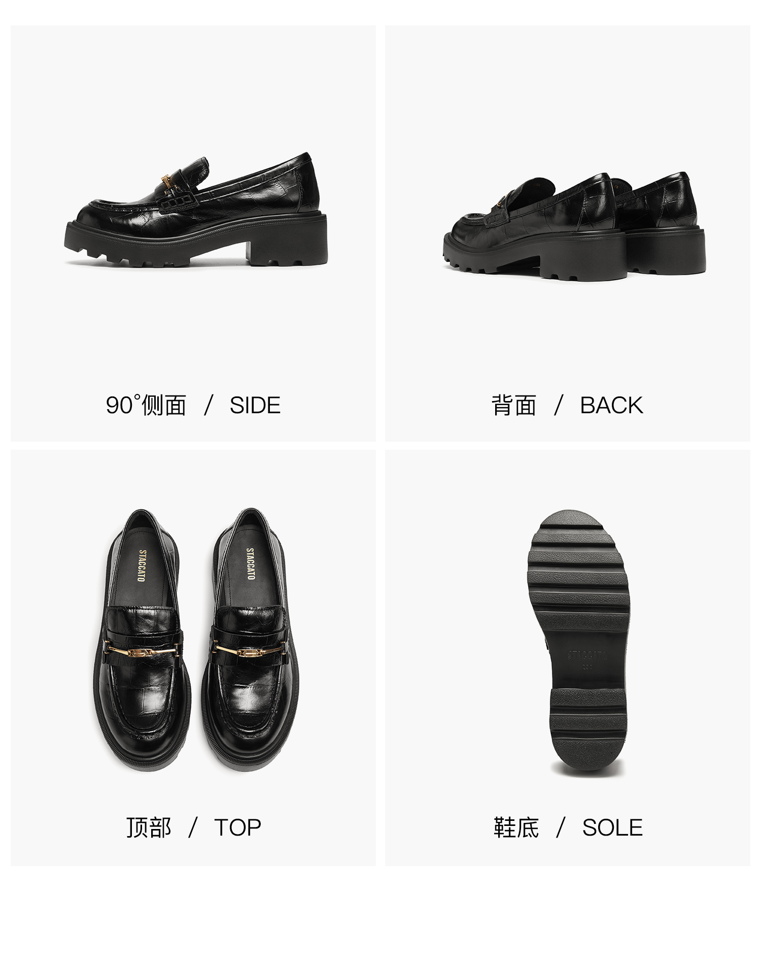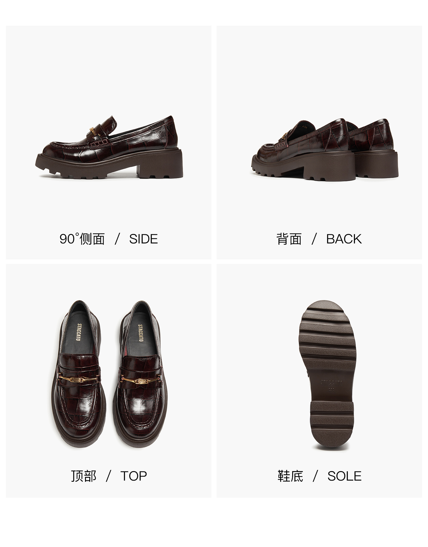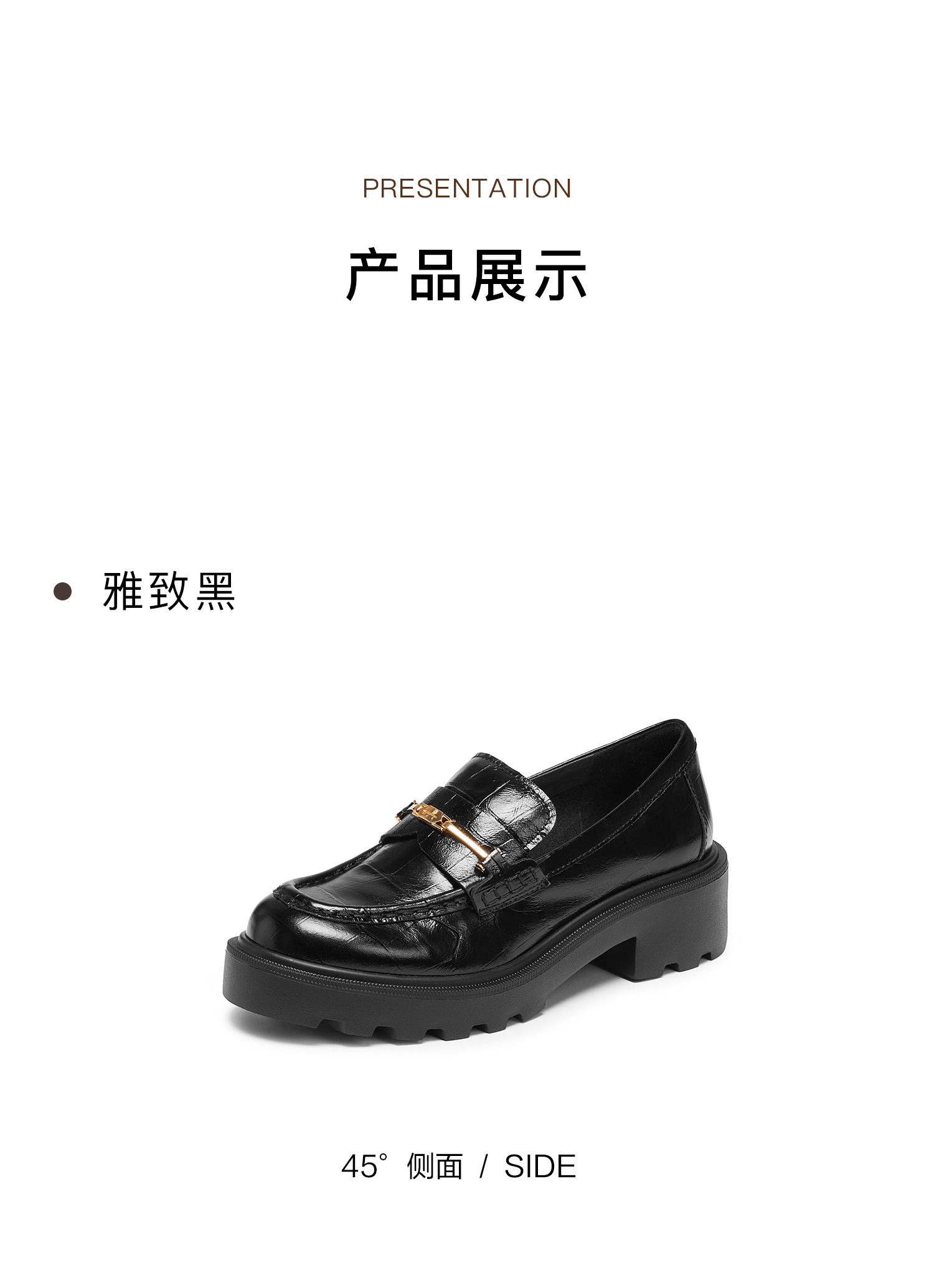 | 鞋跟形状:粗跟 | 鞋面材质:牛皮革 | 流行元素:鳄纹饰扣 | 参考鞋长(女):26.5CM | 参考鞋宽(女):11CM |