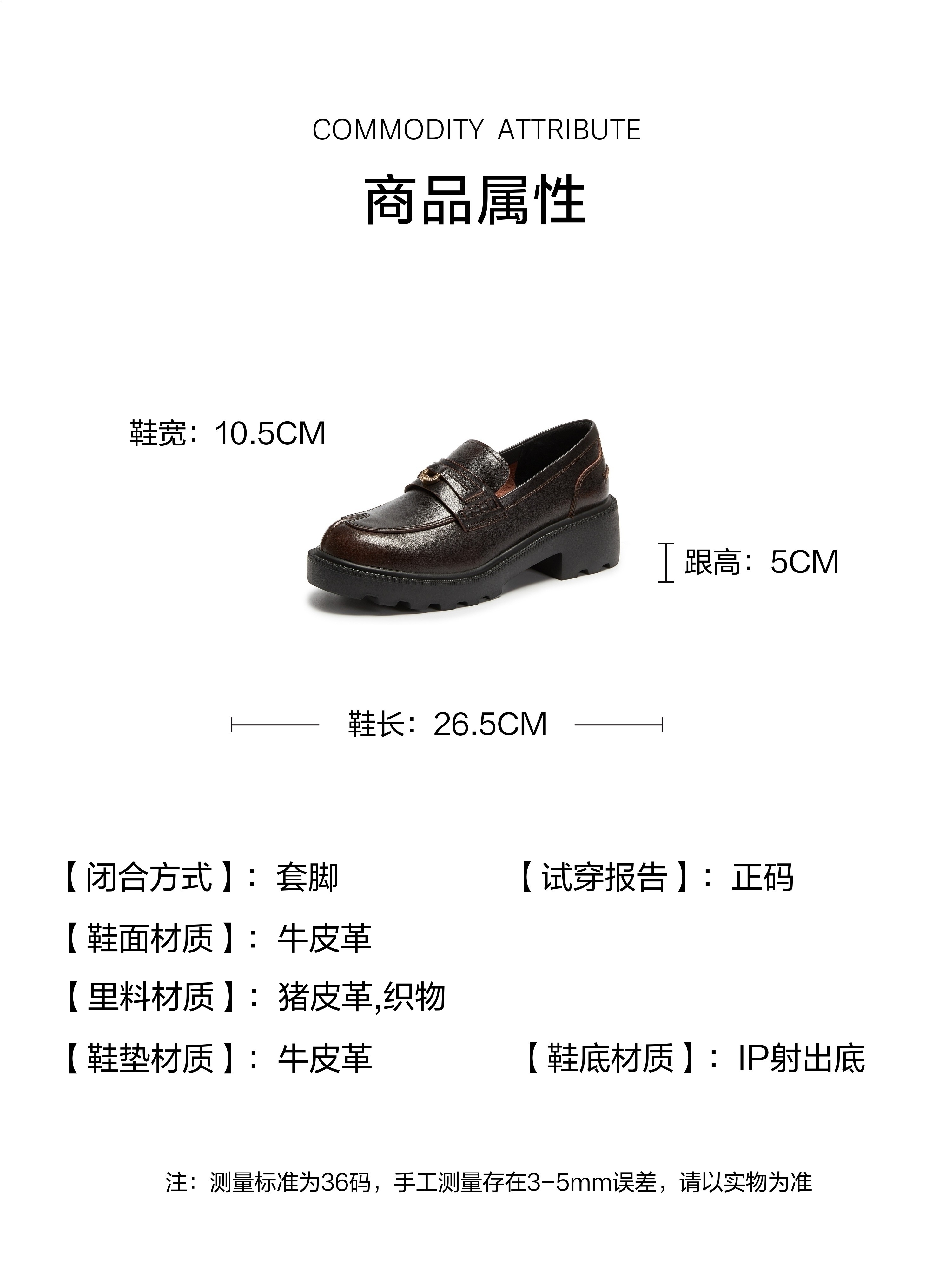 | 鞋垫材质:牛皮革 | 前掌高度:1.5CM | 皮质特征:牛皮革 | 鞋类流行款式:乐福鞋 |