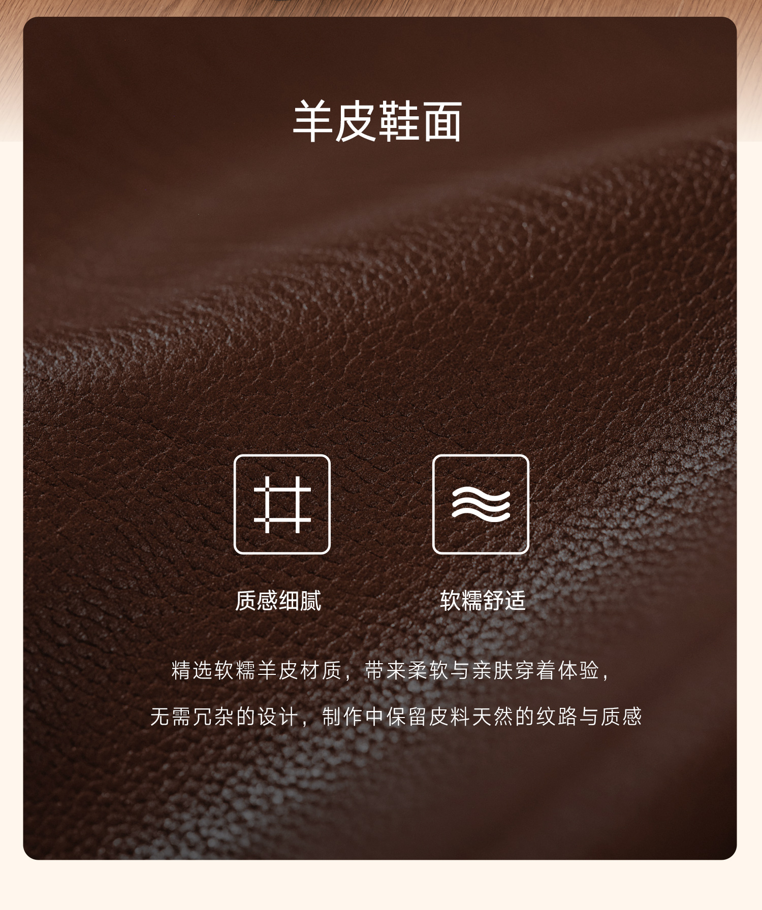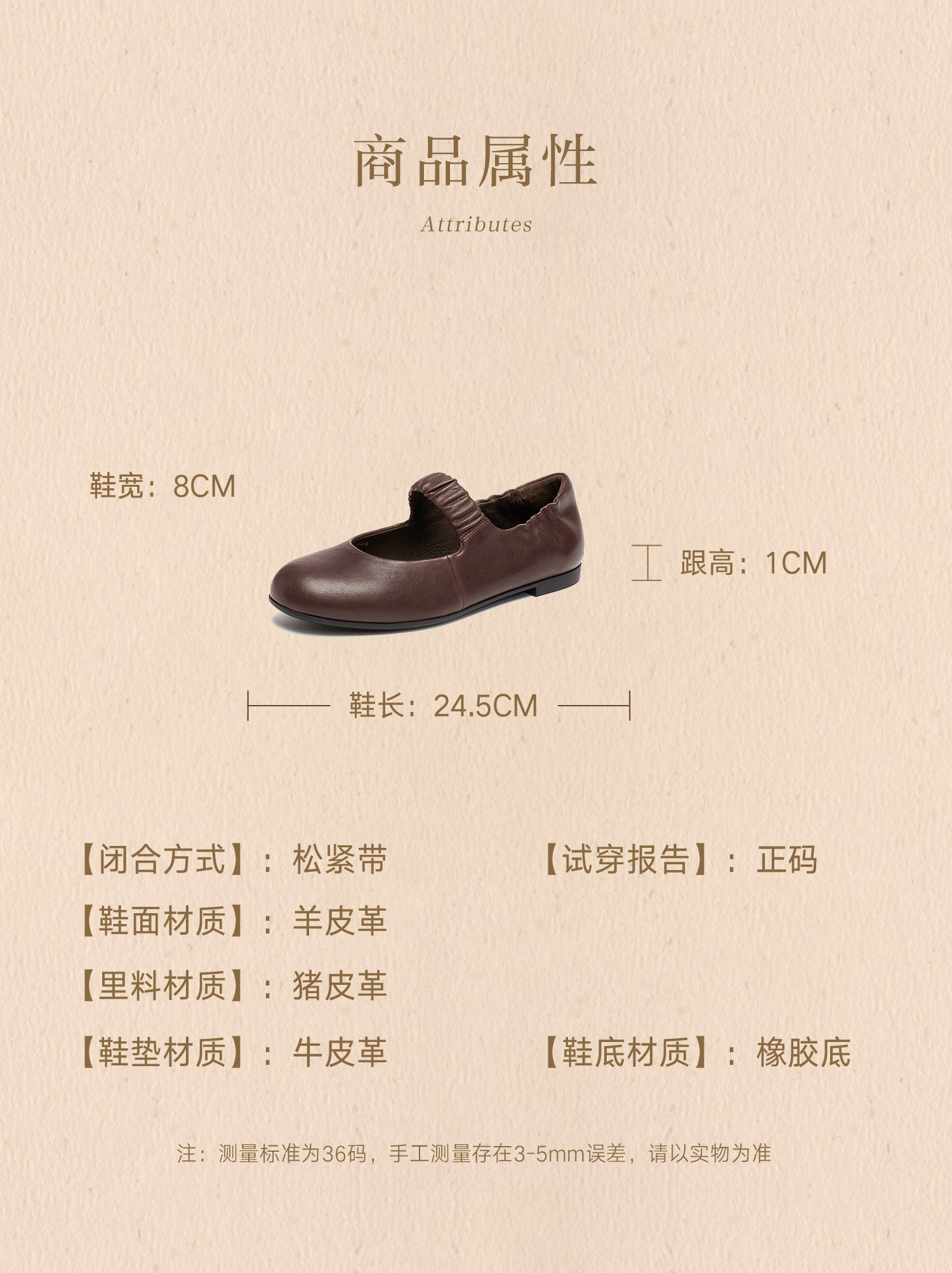 | 鞋底材质:橡胶底 | 内增高:无 | 鞋面材质:羊皮革 | 闭合方式:松紧带 | 配跟:无 |