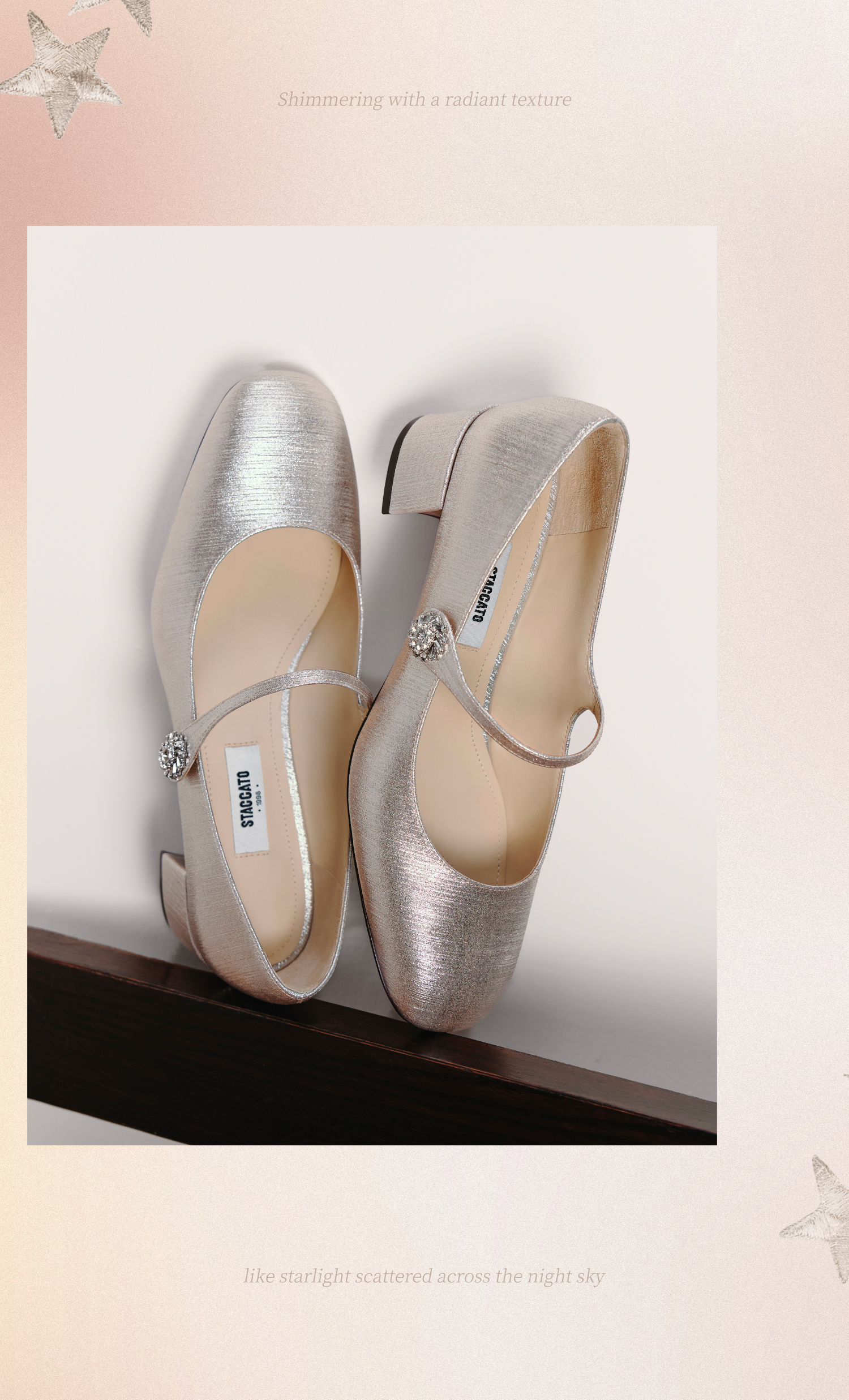 思加图(STACCATO),一个代表着年轻时尚、多元化的时装鞋履品牌,目标将时尚潮流带到女性的现实生活中。“STACCATO”是乐章上的音符,轻轻一点,谱出优美的旋律,为音乐带来多样性。穿上STACCATO单鞋的时代女性,踏出自信又轻松的脚步,犹如跳跃的音符,反映年轻与时尚的生活态度。目前品牌开设门店已超1100家,遍布中国、韩国、澳洲、新加坡、马来西亚、罗马尼亚、沙特阿拉伯等地。