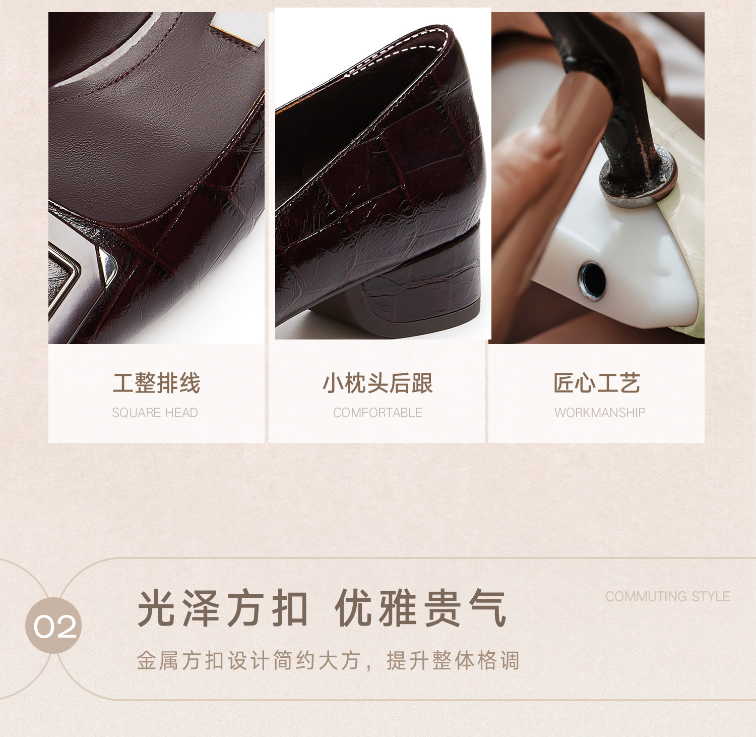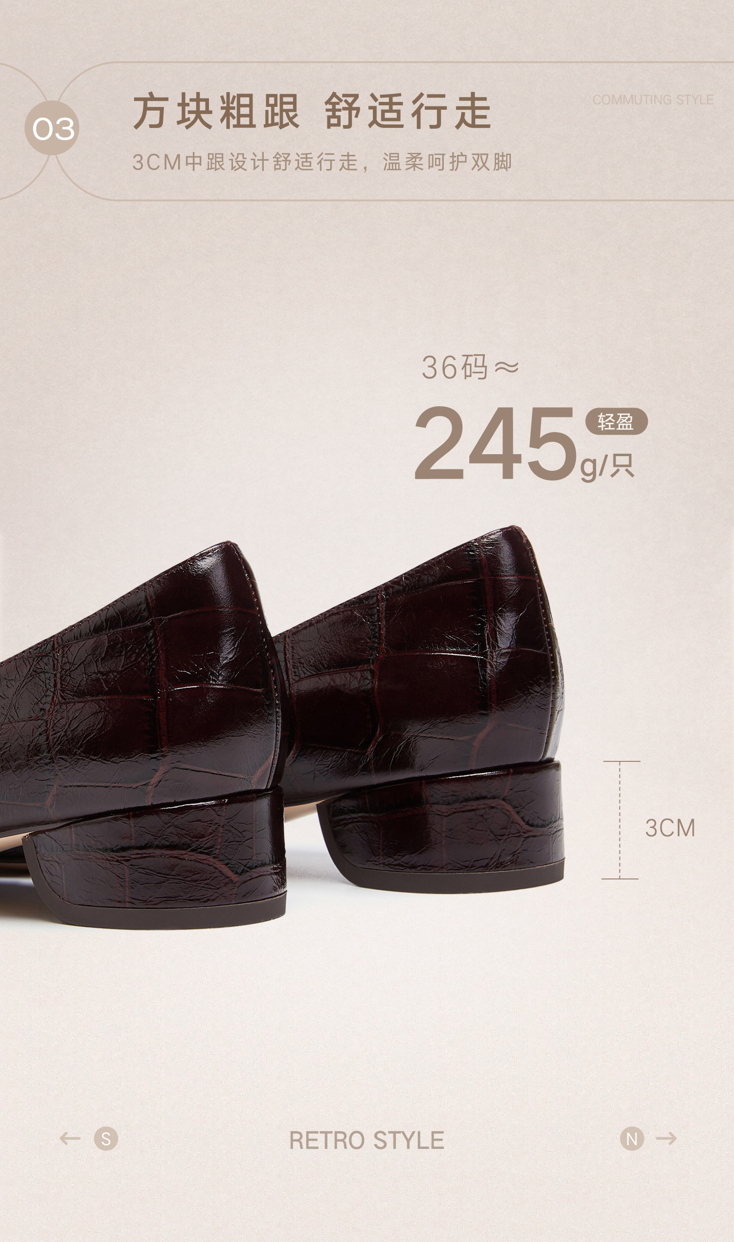 | 风格:时尚潮流 | 跟高数值:3CM | 色系:米白 | 配跟:无 | 性别:女子 |