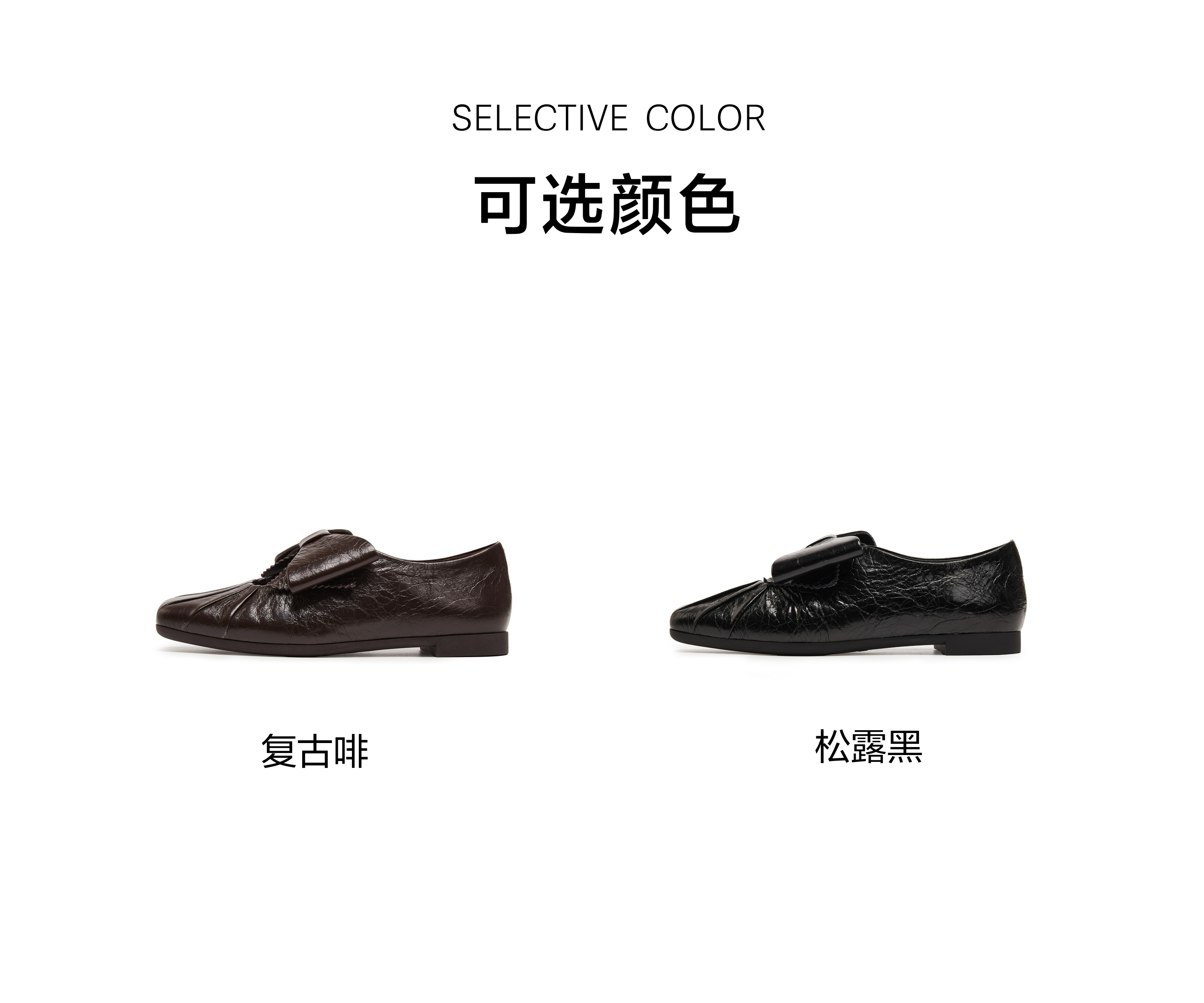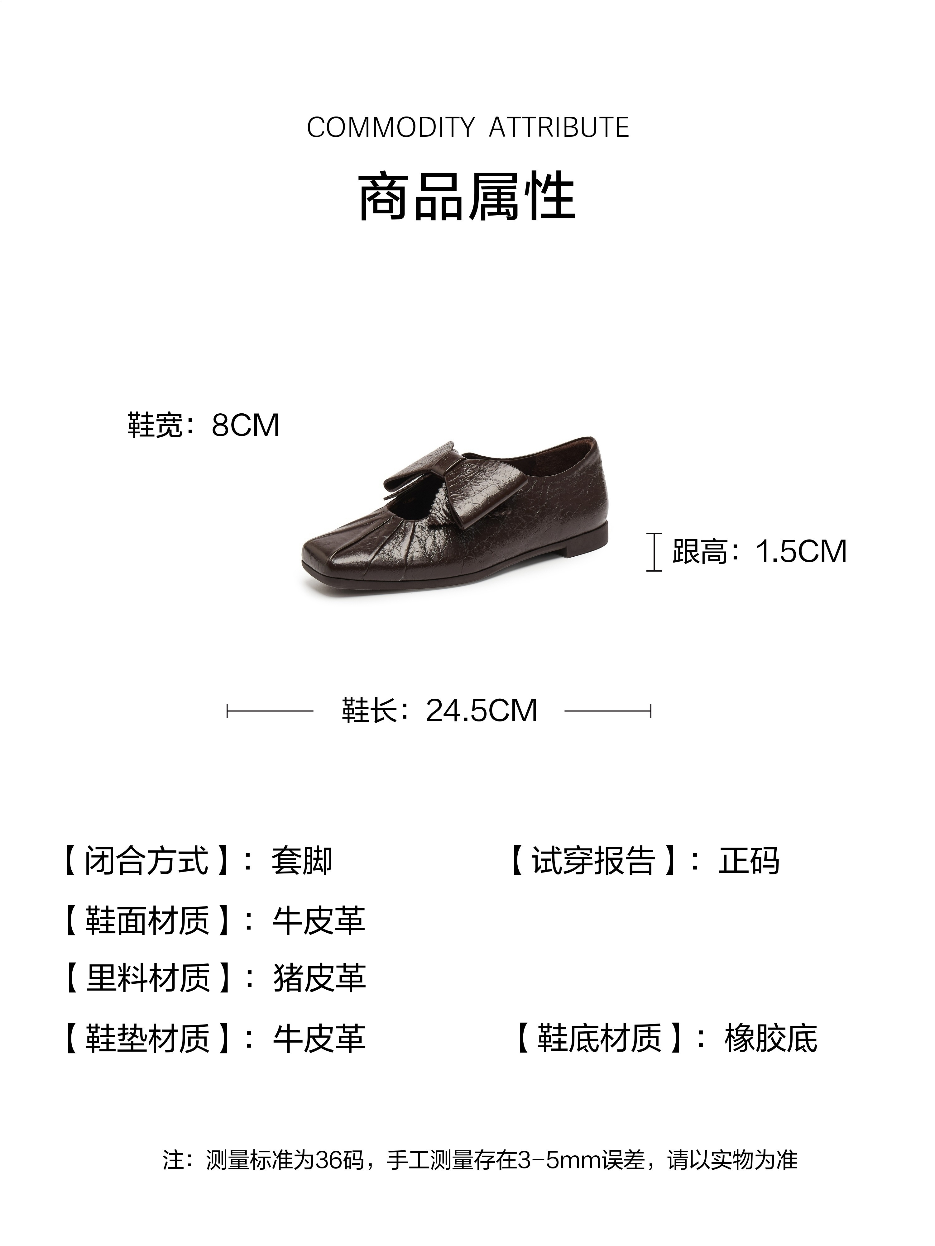 | 鞋跟形状:平底 | 鞋面材质:牛皮革 | 流行元素:褶皱蝴蝶结 | 参考鞋长(女):24.5CM | 参考鞋宽(女):8CM |