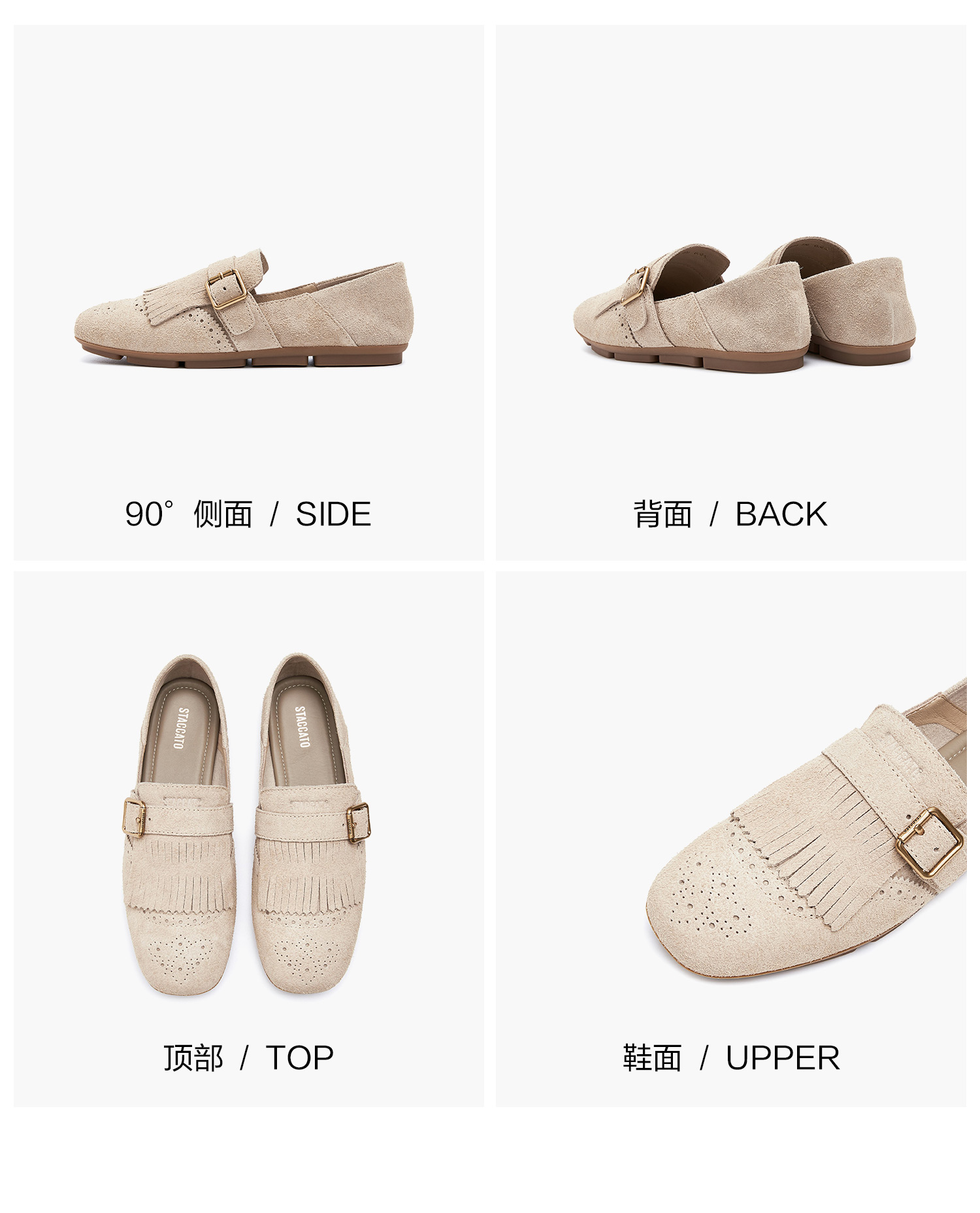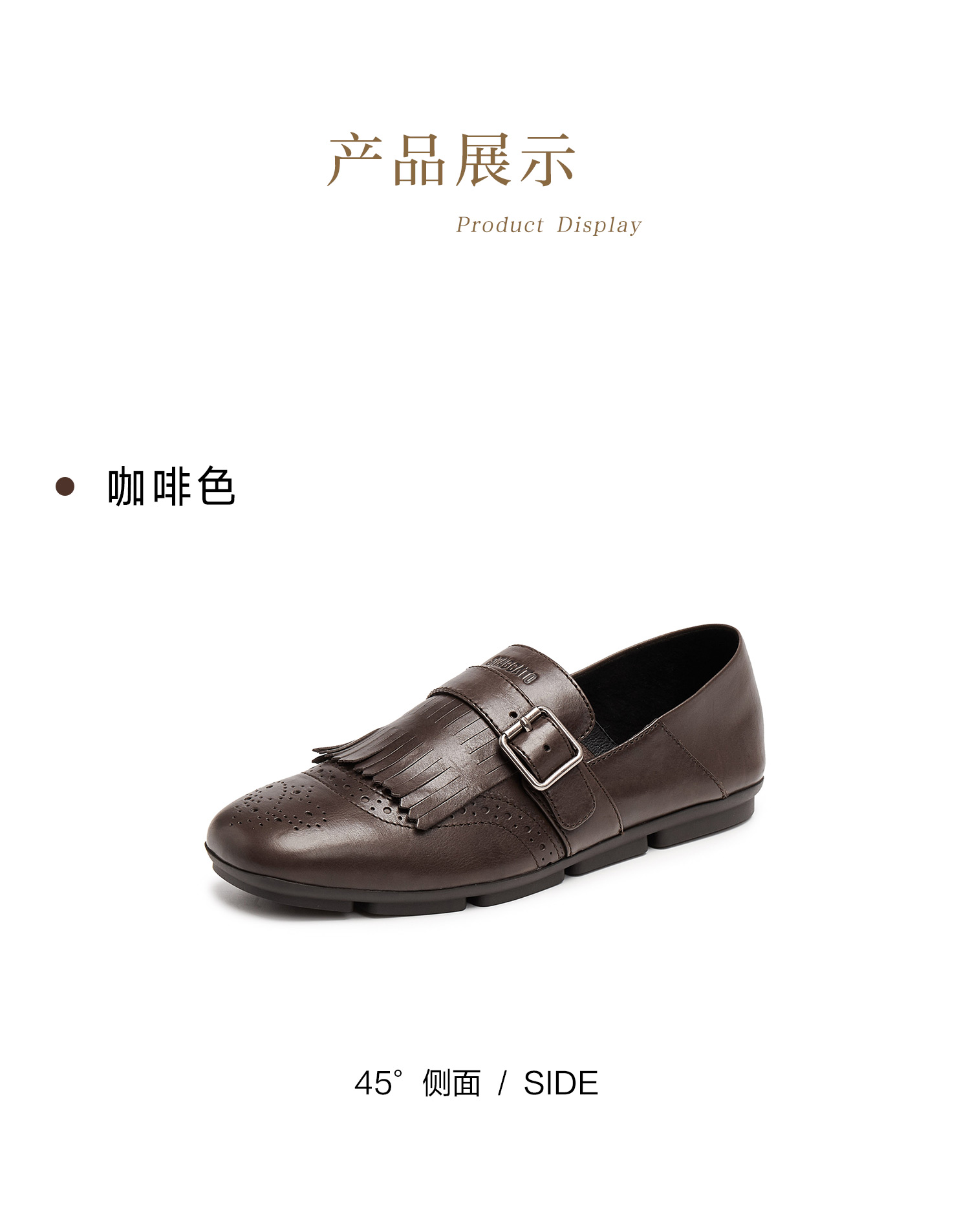 | 鞋跟形状:平底 | 鞋面材质:牛皮革 | 流行元素:流苏 | 参考鞋长(女):24.5CM | 参考鞋宽(女):8CM |