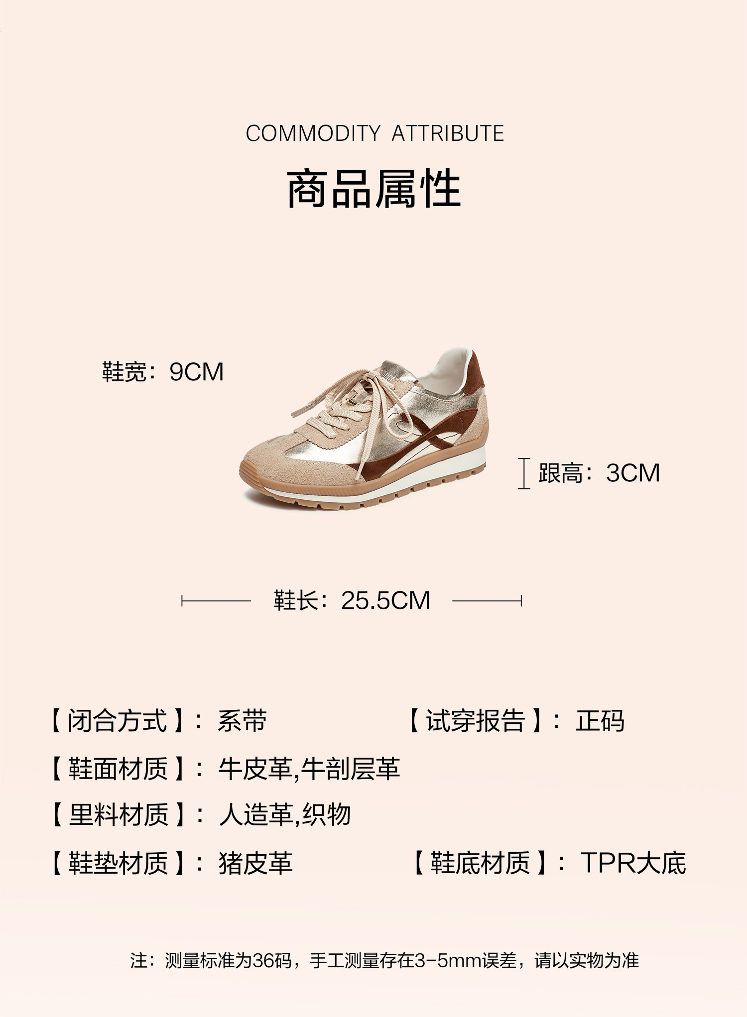 | 鞋帮:低帮 | 鞋底材质:TPR大底 | 内增高:无 | 鞋面材质:牛剖层革牛皮革 | 闭合方式:系带 |