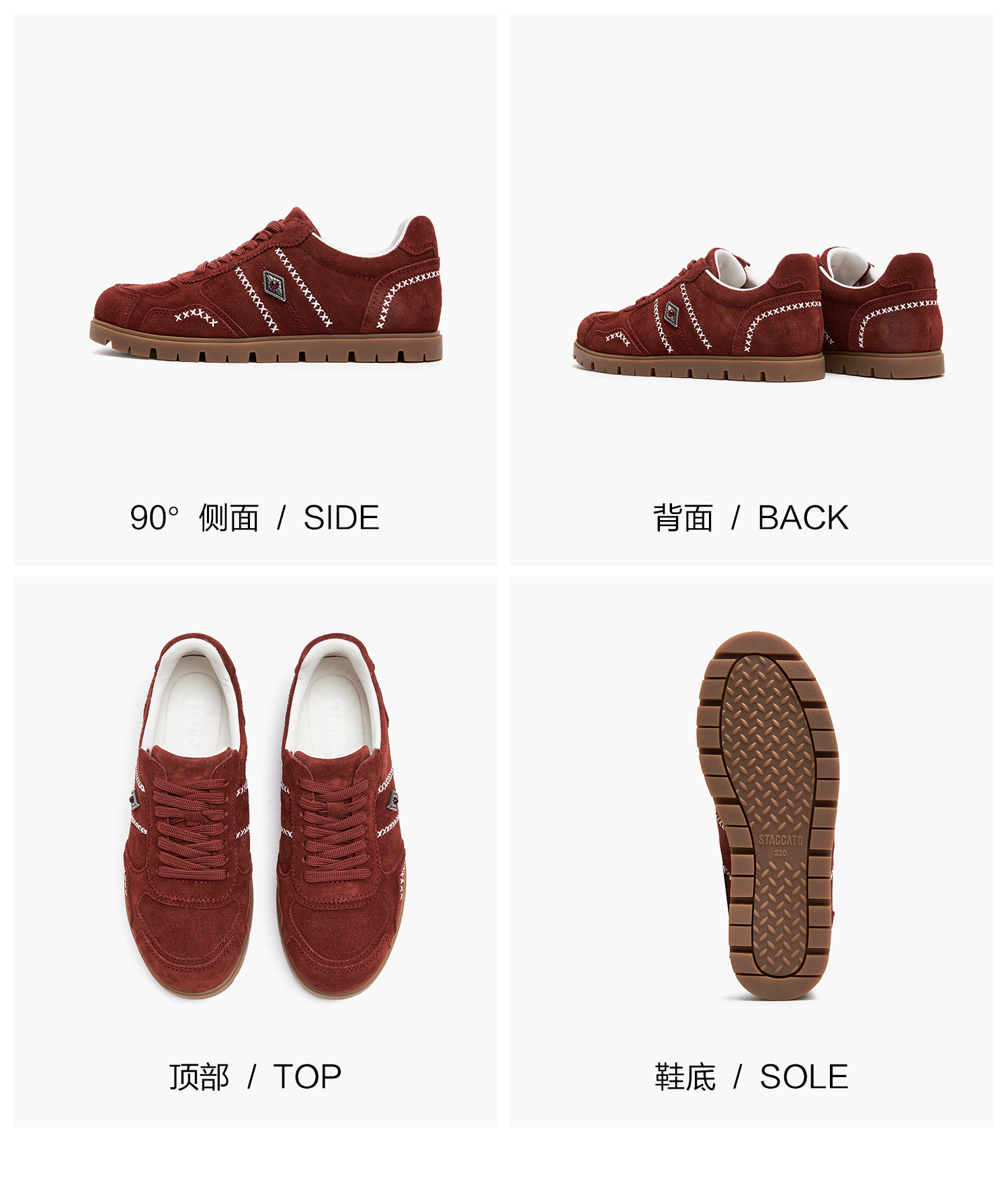 思加图(STACCATO),一个代表着年轻时尚、多元化的时装鞋履品牌,目标将时尚潮流带到女性的现实生活中。“STACCATO”是乐章上的音符,轻轻一点,谱出优美的旋律,为音乐带来多样性。穿上STACCATO单鞋的时代女性,踏出自信又轻松的脚步,犹如跳跃的音符,反映年轻与时尚的生活态度。目前品牌开设门店已超1100家,遍布中国、韩国、澳洲、新加坡、马来西亚、罗马尼亚、沙特阿拉伯等地。