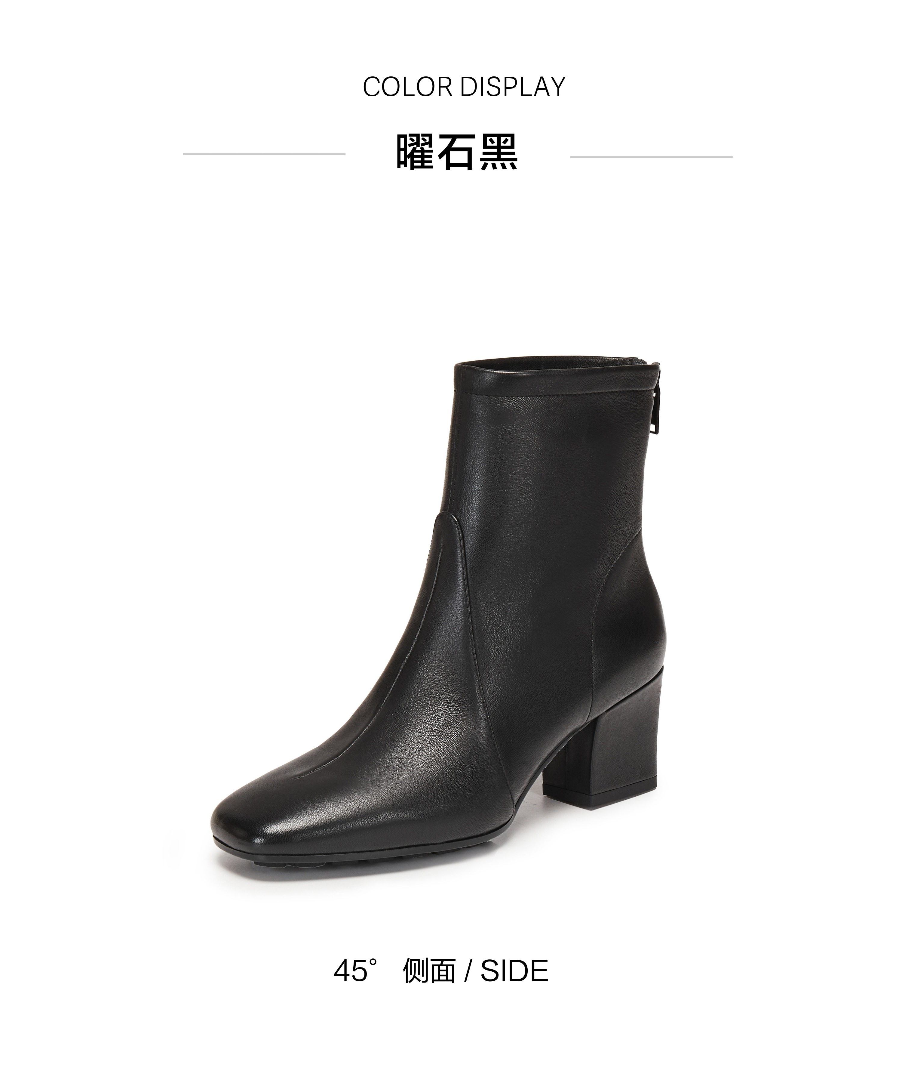 | 鞋底材质:TPU | 靴筒内里材质:猪皮革织物 | 内增高:无 | 鞋面材质:羊皮革 | 闭合方式:后拉链 |