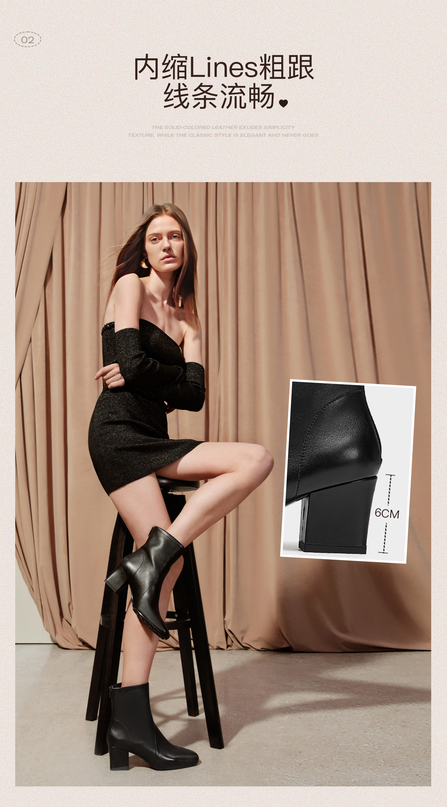 | 筒高数值:14.5CM | 性别:女子 | 靴筒筒面材质:羊皮革 | 里料材质:织物猪皮革 | 制鞋工艺:胶贴皮鞋 |