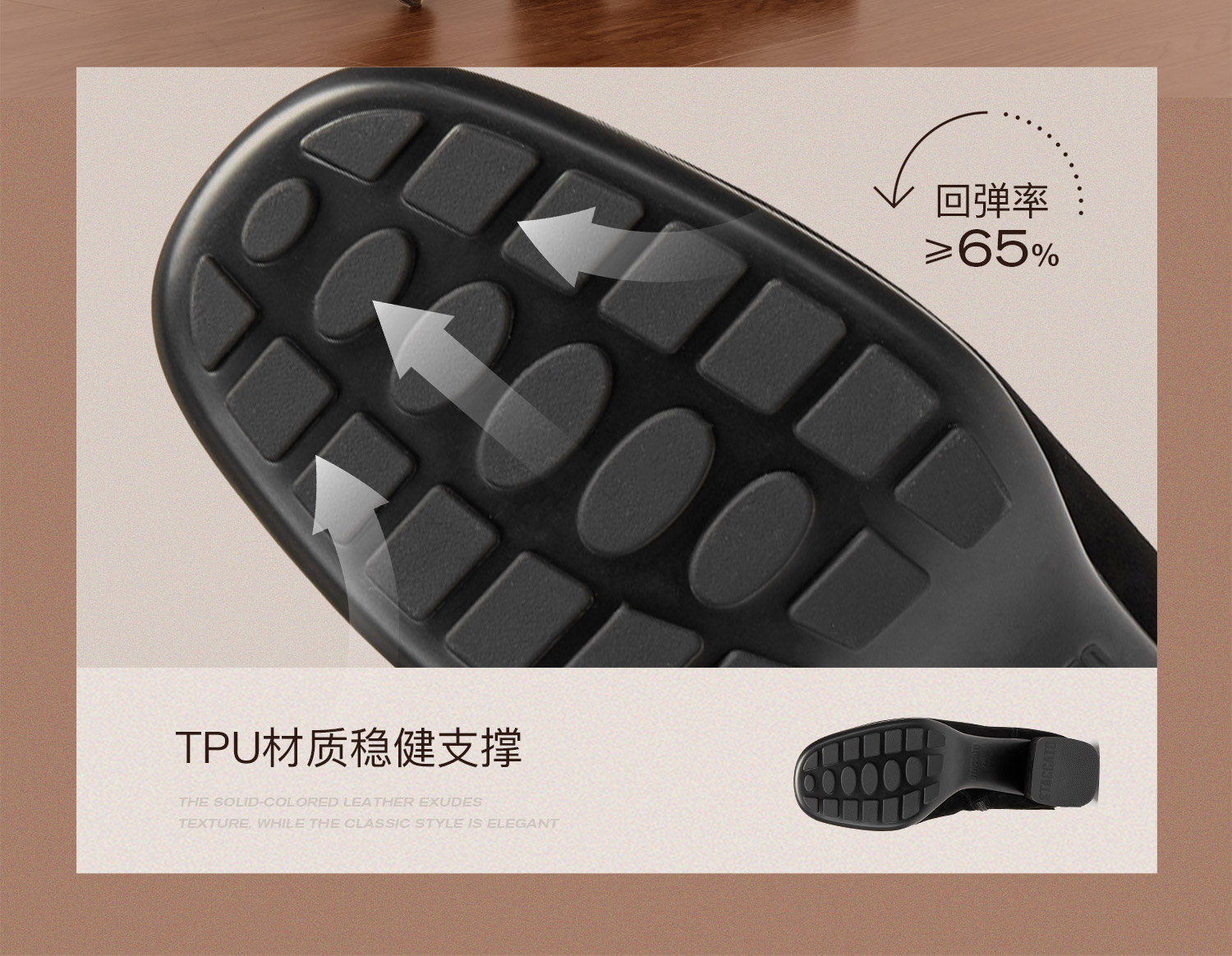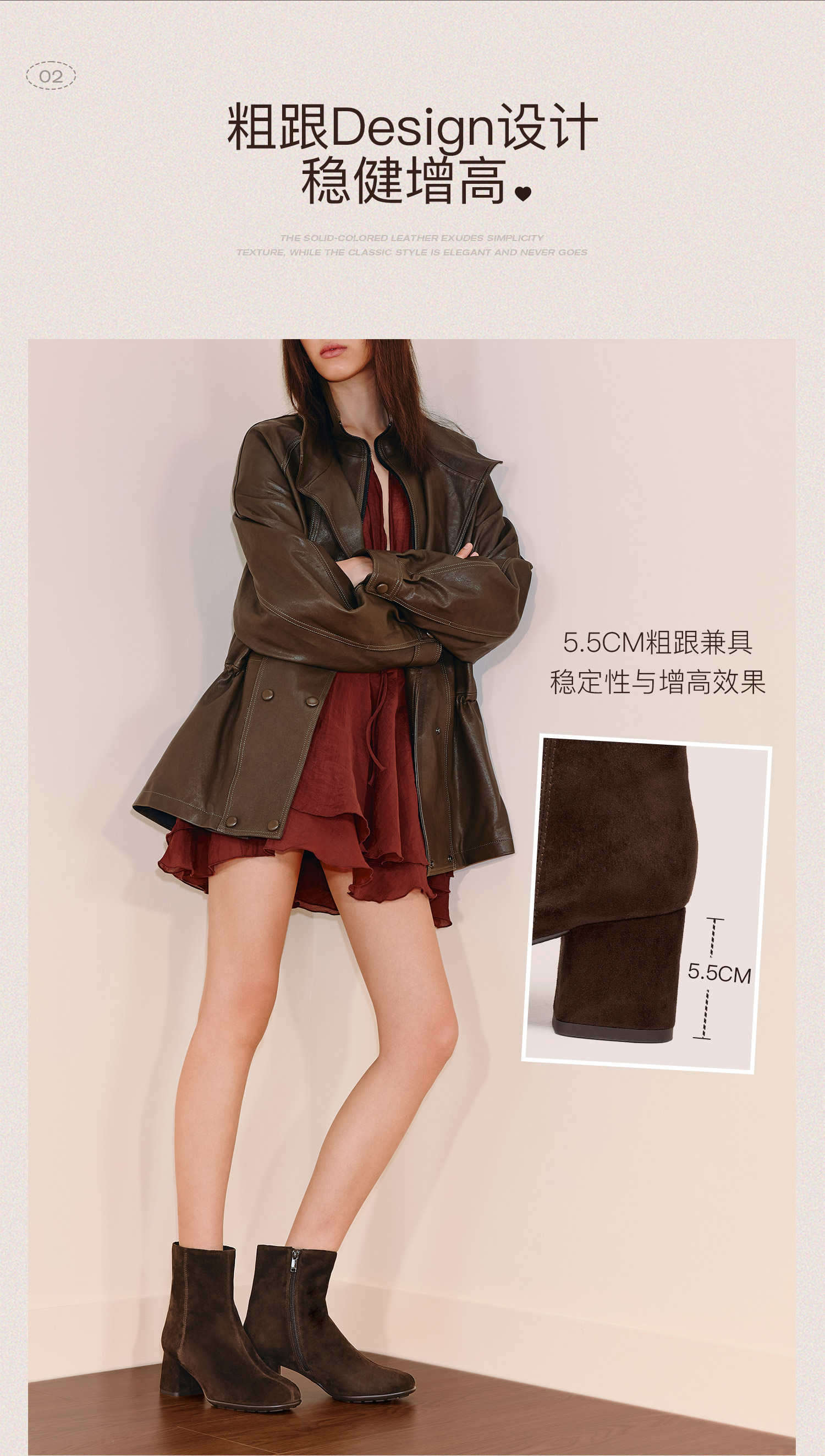 | 参考鞋宽(女):9CM | 风格:时尚潮流 | 鞋面内里材质:猪皮革织物 | 色系:咖啡色 | 跟高数值:5.5CM |