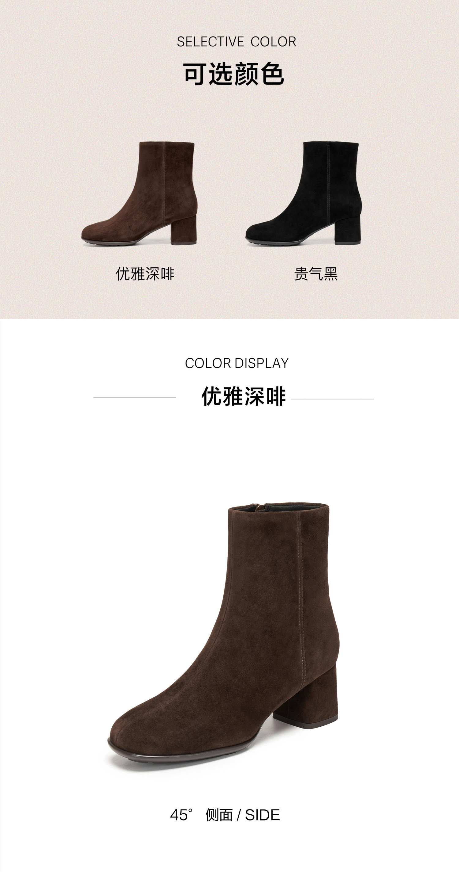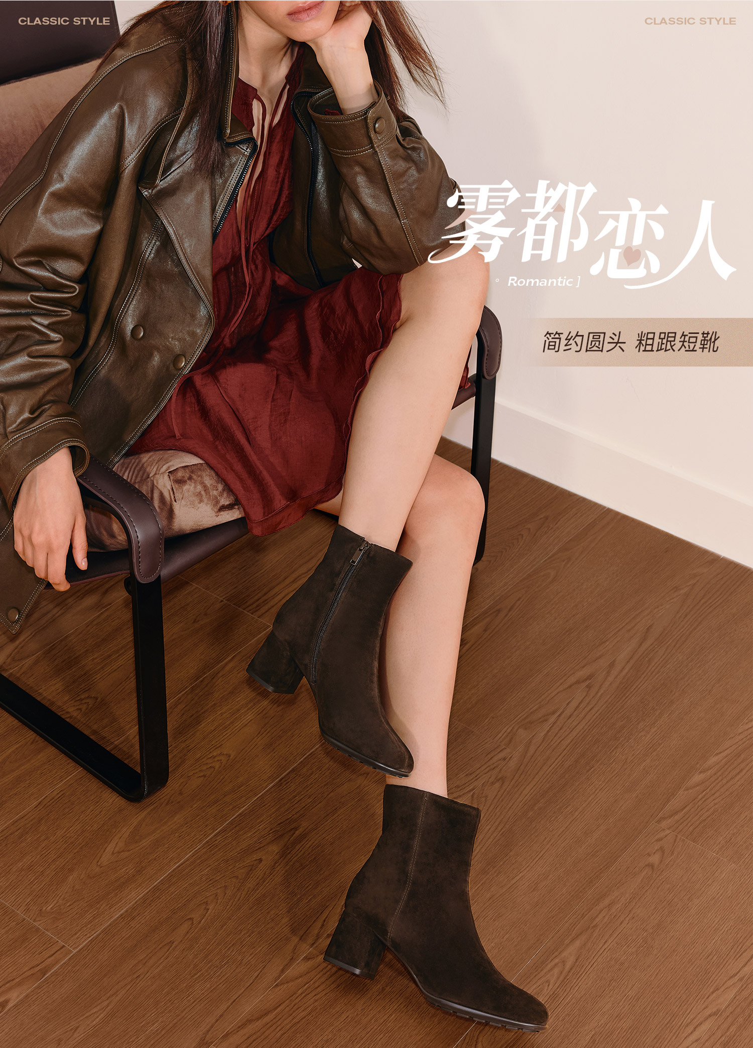 | 鞋头款式:圆头 | 鞋面图案:纯色 | 鞋跟形状:粗跟 | 参考鞋长(女):24CM | 流行元素:绒面 |