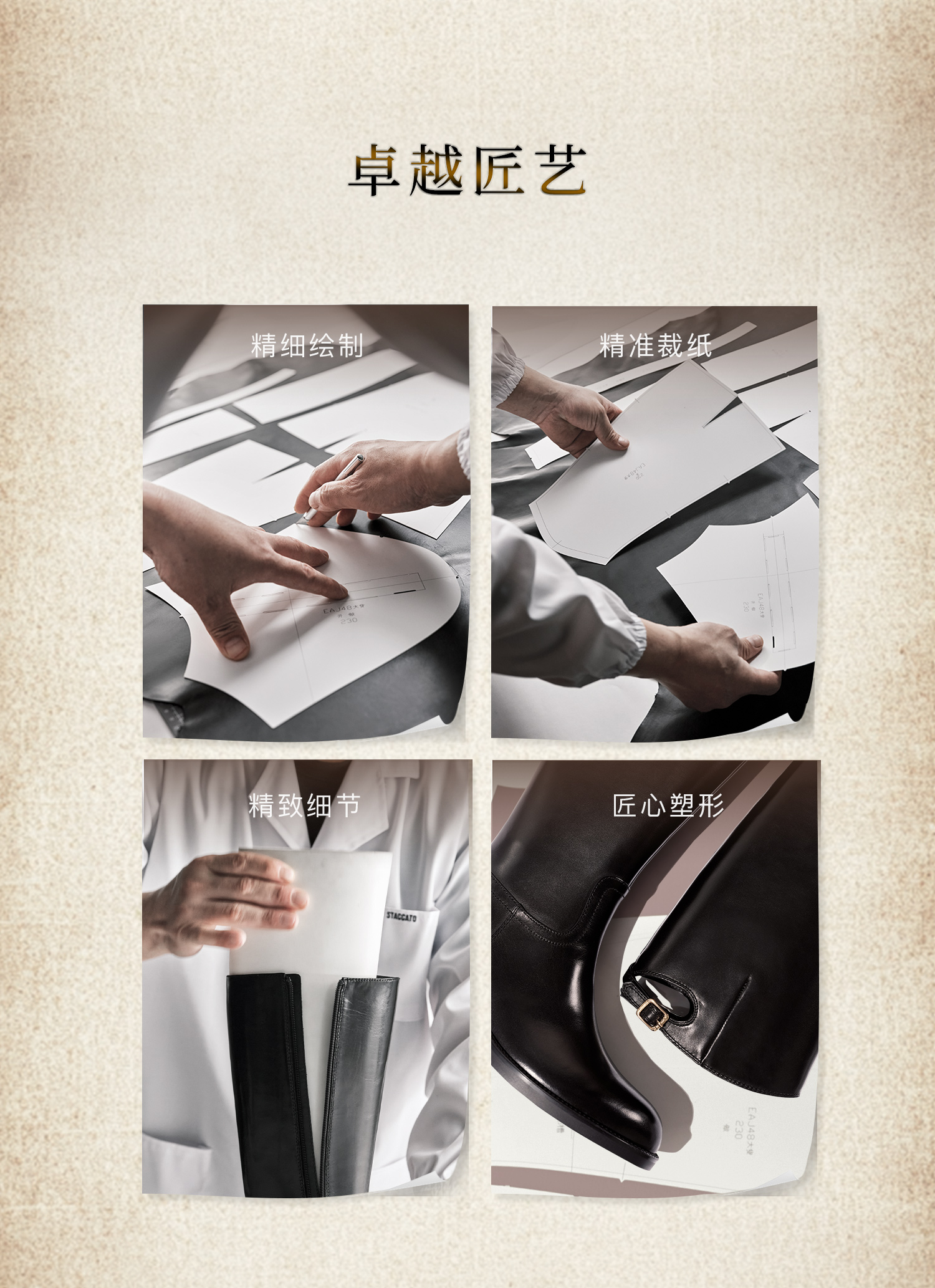 | 筒高数值:38CM | 靴筒筒面材质:牛皮革 | 靴筒小腿围:26CM | 里料材质:猪皮革 | 制鞋工艺:胶贴皮鞋 |