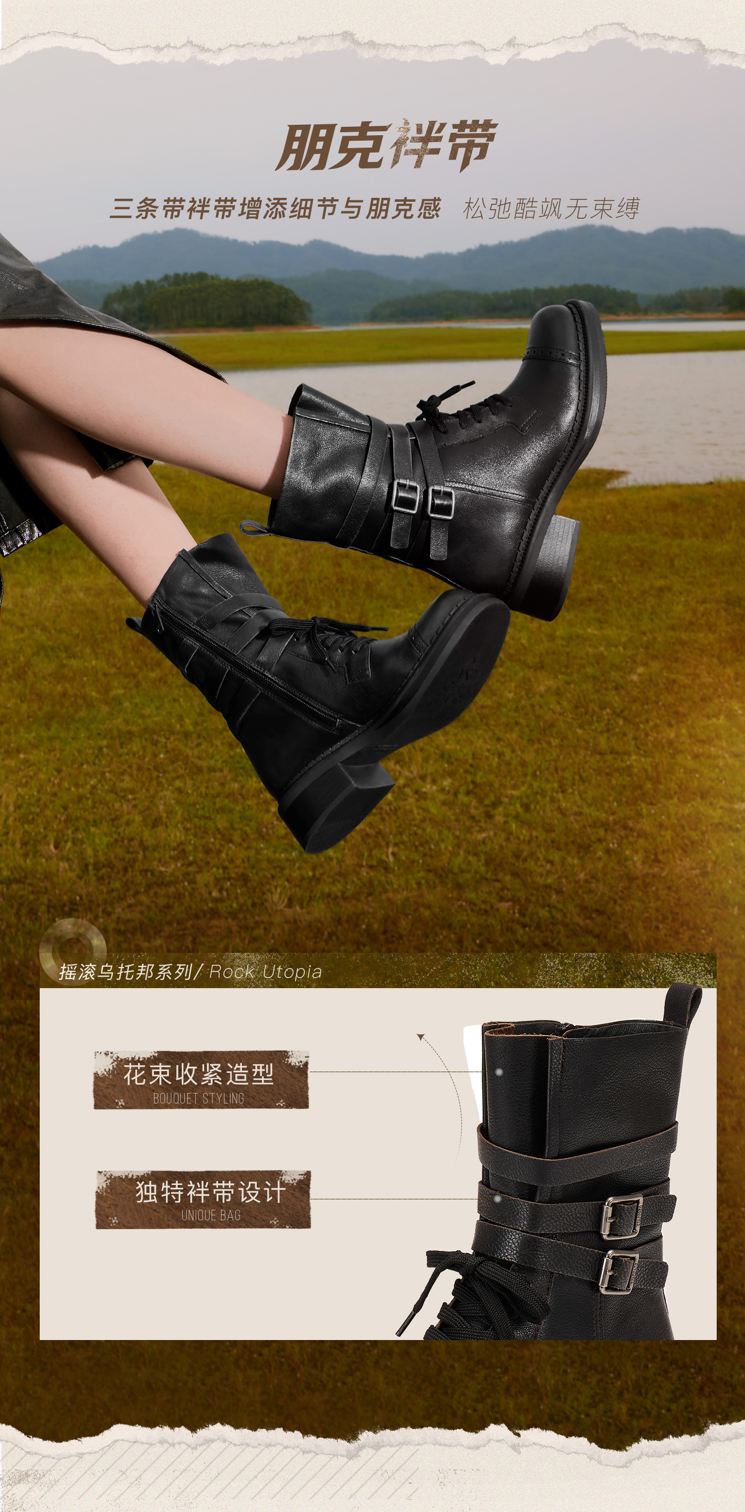 | 鞋底材质:橡胶底 | 靴筒内里材质:猪皮革织物 | 内增高:无 | 鞋面材质:牛皮革 | 闭合方式:侧拉链 |