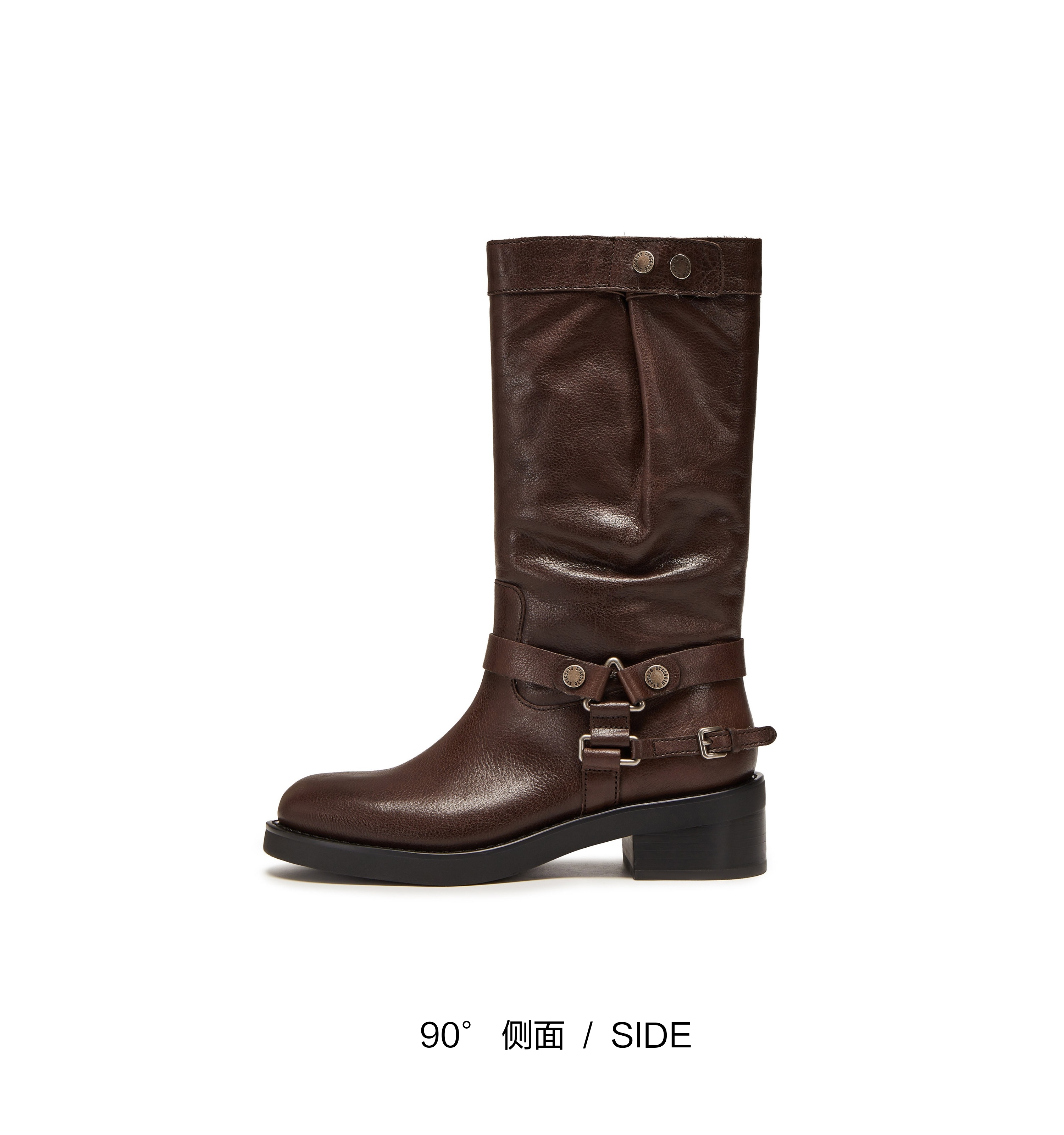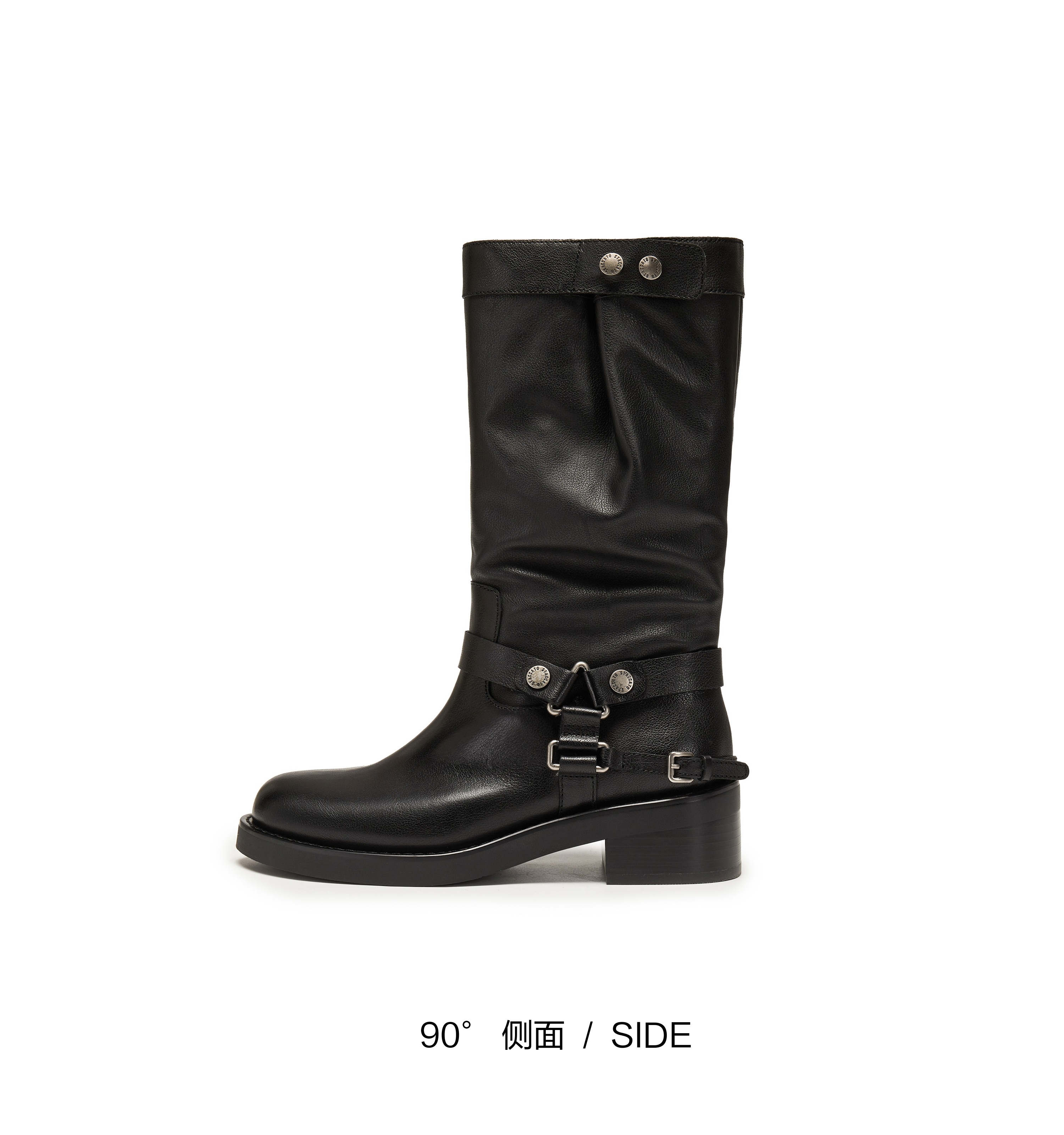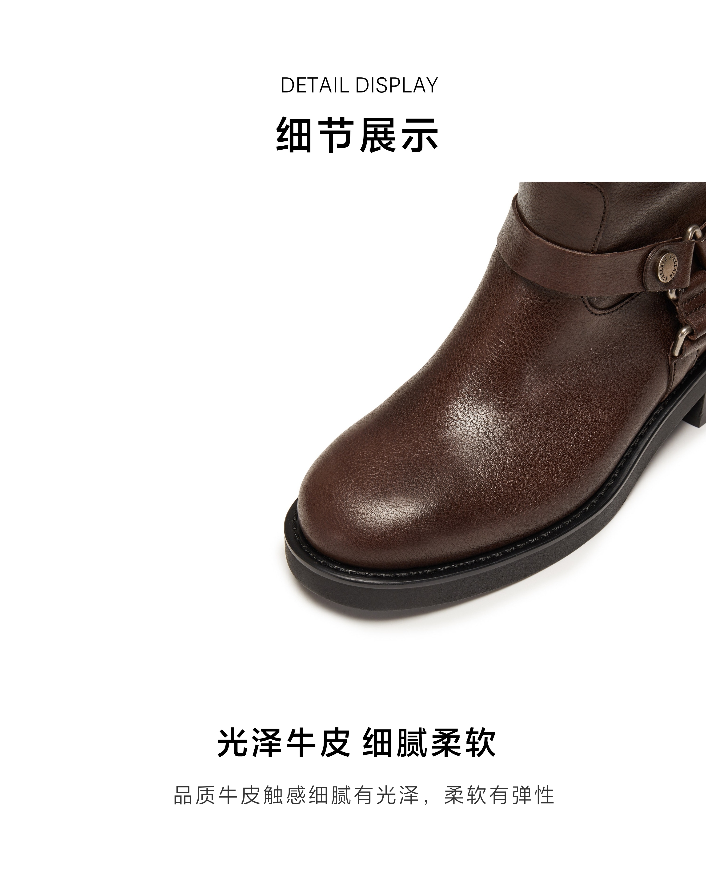 | 鞋底材质:IP射出底 | 靴筒内里材质:猪皮革织物 | 内增高:无 | 鞋面材质:牛皮革 | 闭合方式:套筒 |