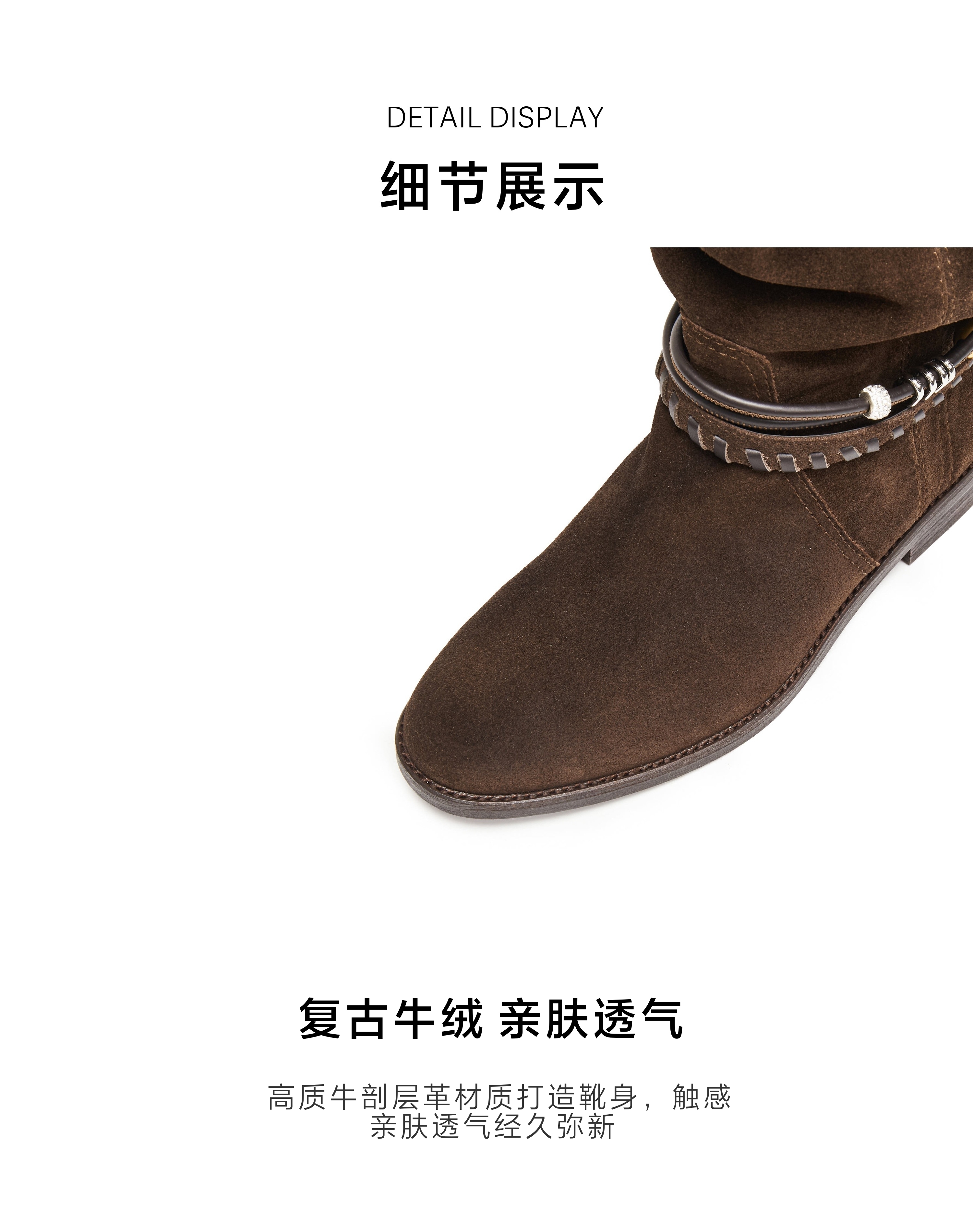 | 鞋底材质:橡胶底 | 靴筒内里材质:猪皮革织物 | 内增高:无 | 鞋面材质:牛剖层革 | 闭合方式:套筒 |