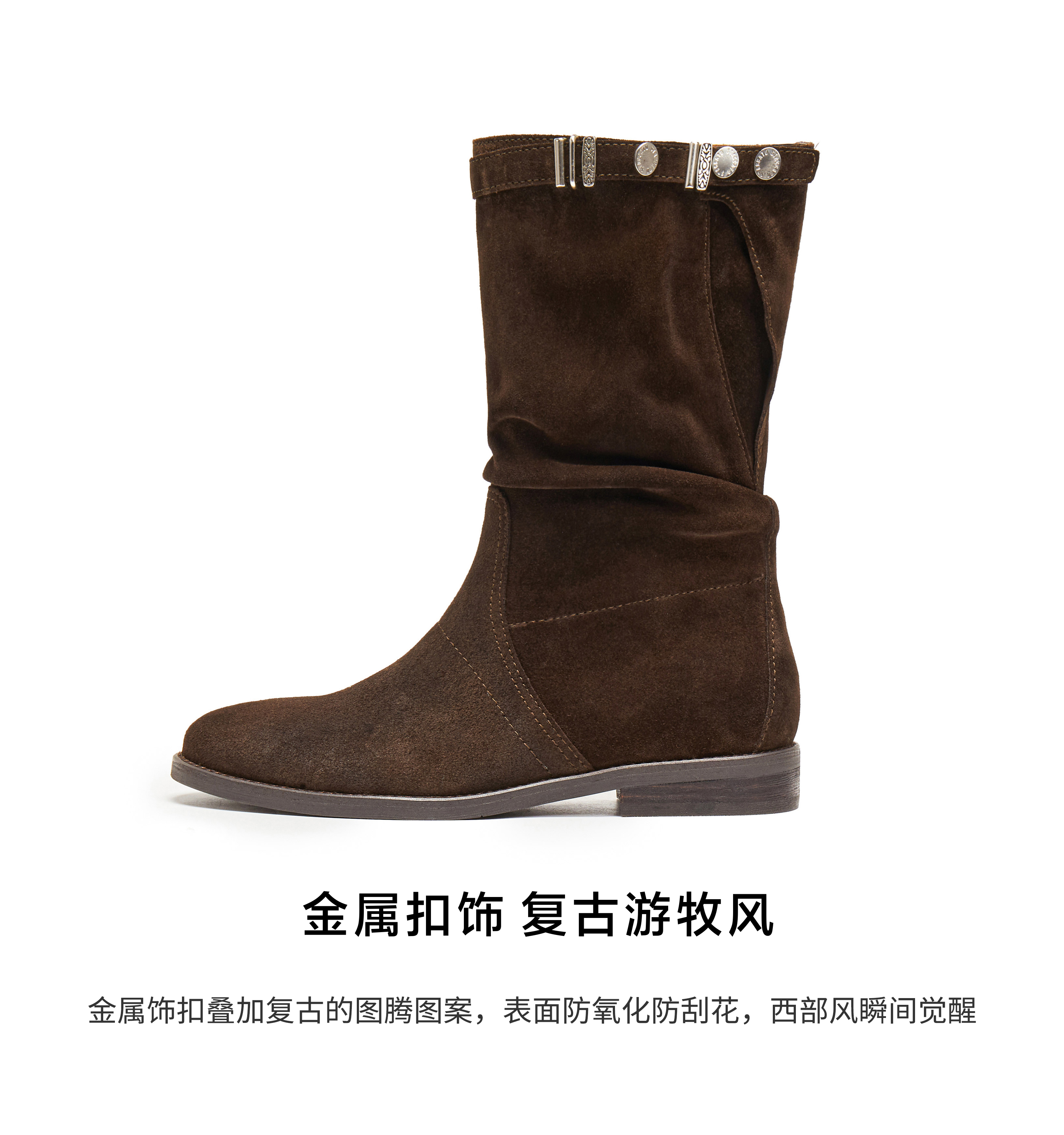 | 配跟:无 | 靴筒口围:37.5CM | 上市时间:2025年冬季 | 鞋类流行款式:时装靴 | 鞋头款式:圆头 |