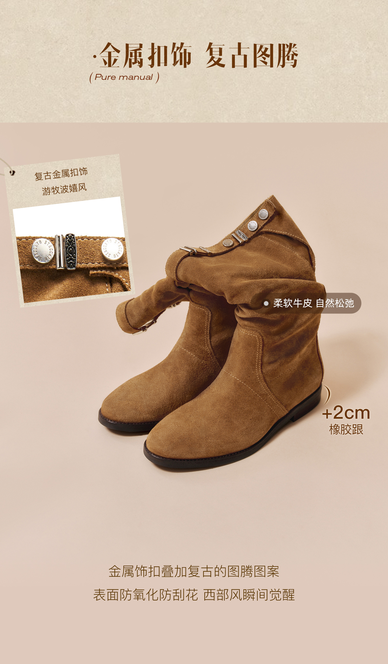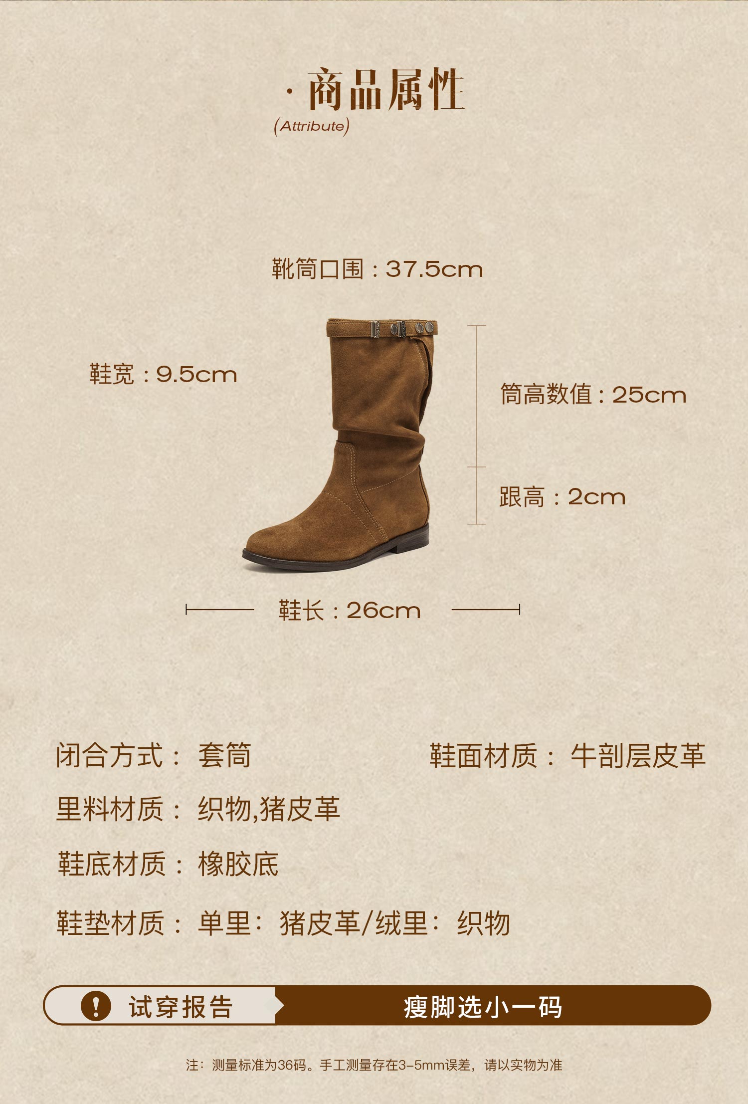 | 配跟:无 | 靴筒口围:37.5CM | 上市时间:2025年冬季 | 鞋类流行款式:时装靴 | 鞋头款式:圆头 |