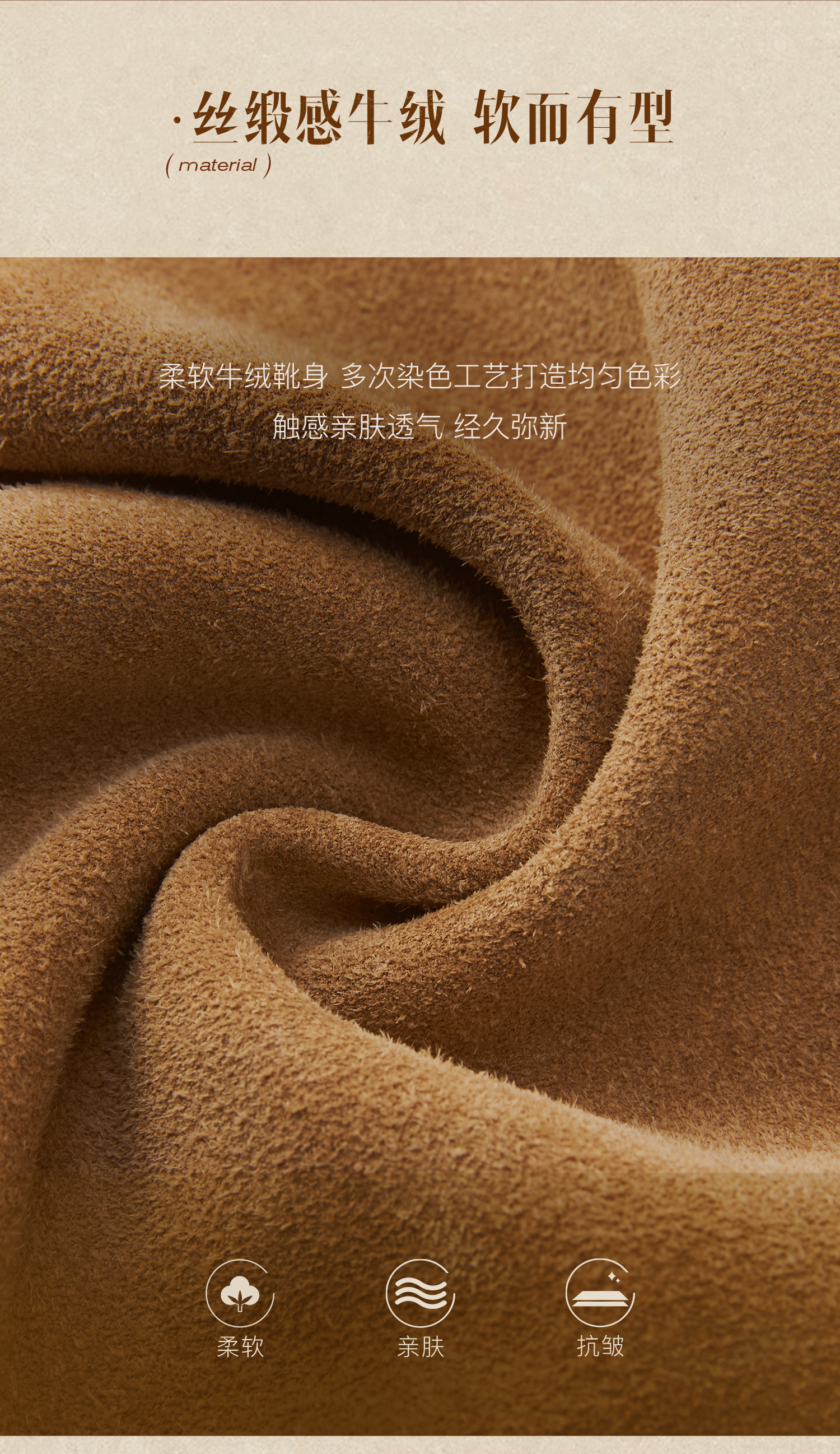 | 鞋垫材质:织物 | 款式季节:冬季 | 皮质特征:绒面皮 | 前掌高度:1CM |